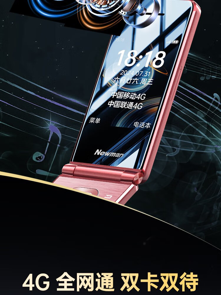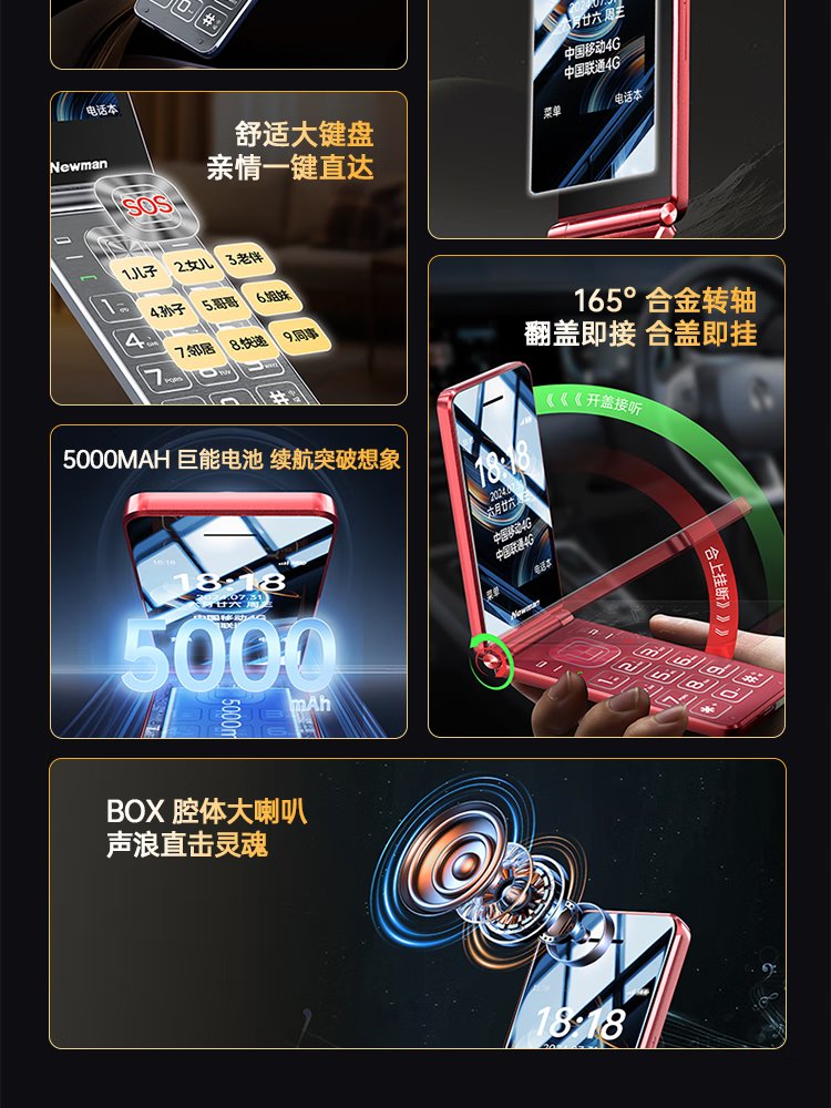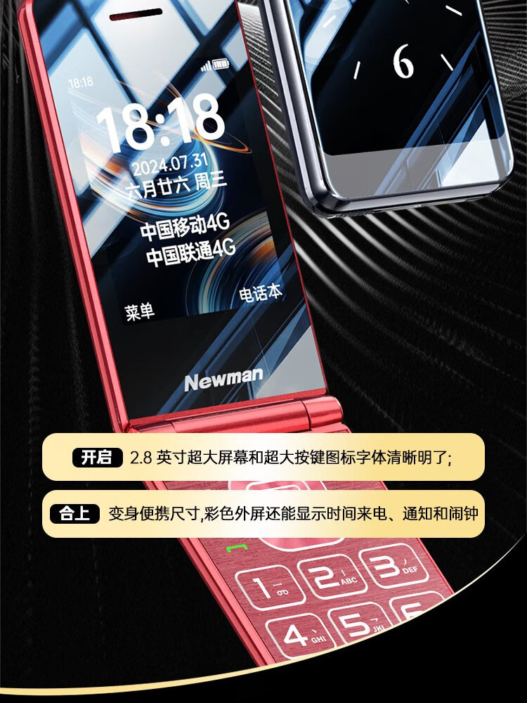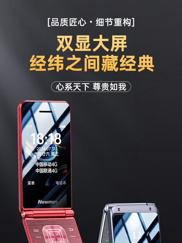 Newman (Newman) V50 flip phone for the elderly, 4G, full Netcom, 5000 mAh, ultra-long standby, 2.8-inch large screen, big characters, loud, big buttons, full Netcom, dual SIM card, dual standby, burgundy red