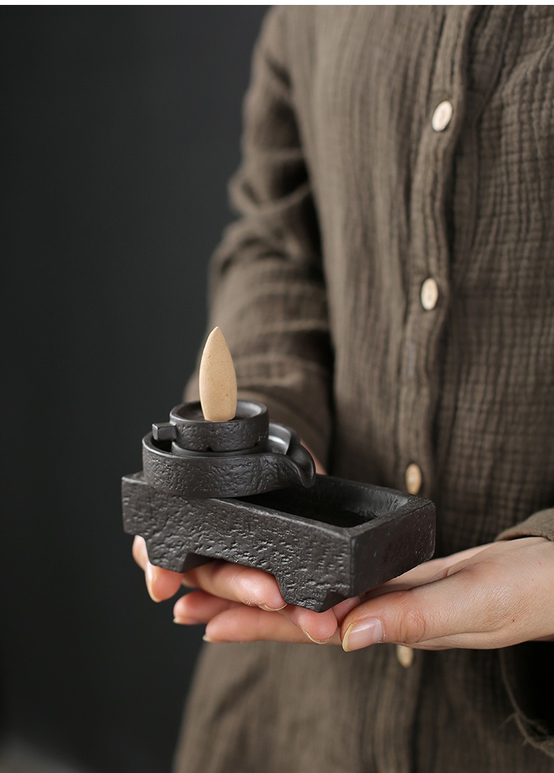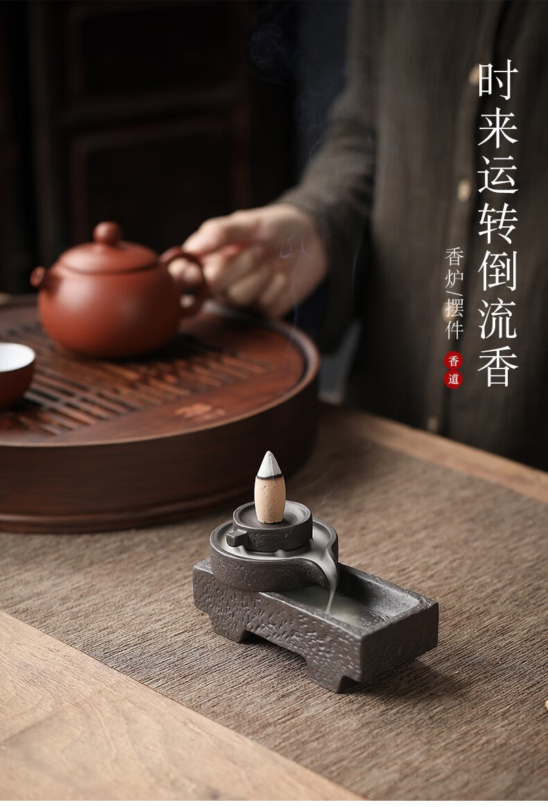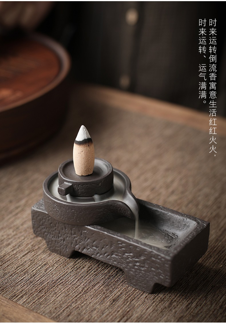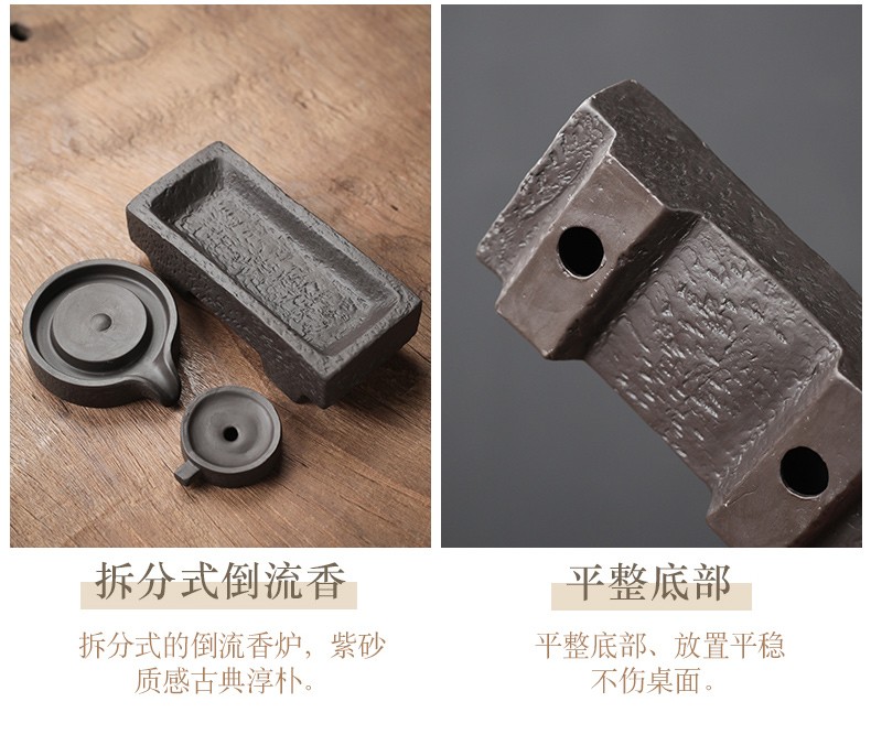 Yuxuan creative purple clay tea pet backflow incense burner ornaments time to run handmade high-quality fortune tea table tea play detachable time to run backflow incense burner - flat
