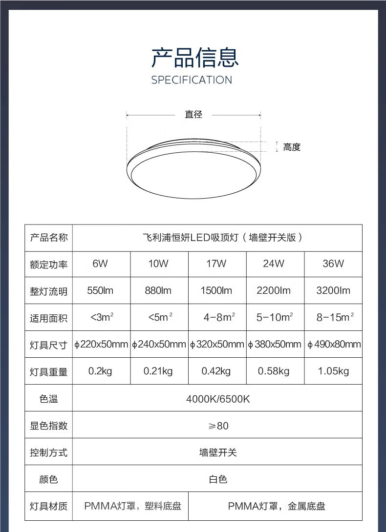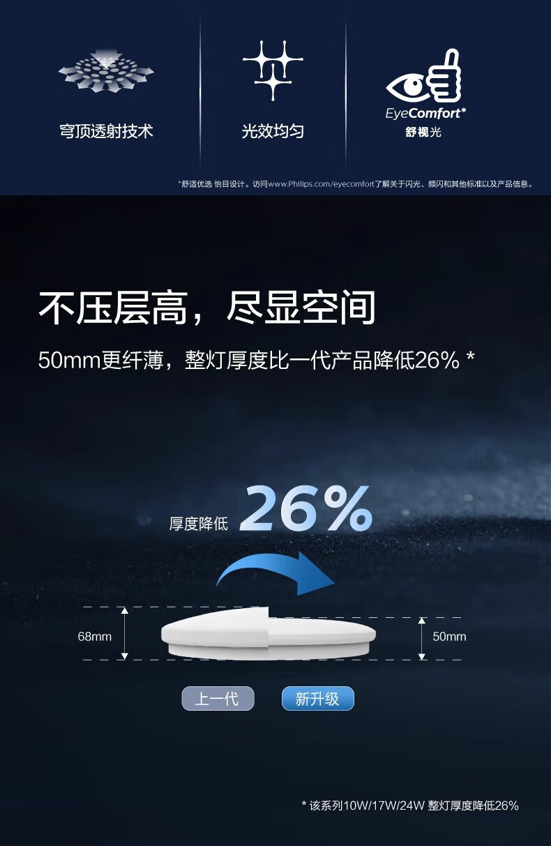 Philips LED ceiling light ultra-thin three-proof balcony light bedroom aisle simple corridor light Hengyan insect-proof and mosquito-proof 17W white light