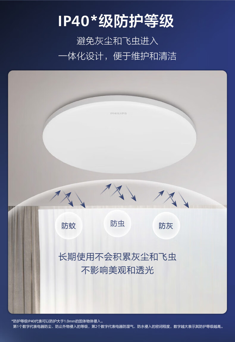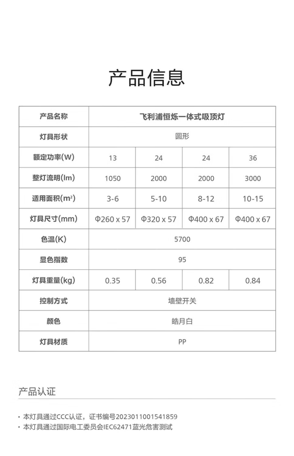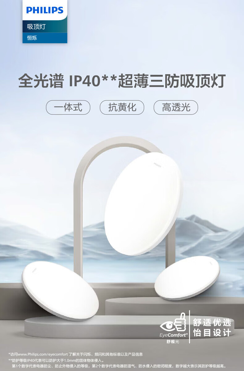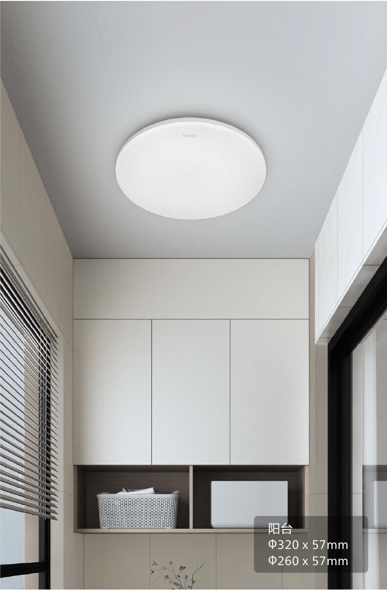 Philips full spectrum LED ceiling lamp ultra-thin three-proof balcony lamp bedroom aisle simple corridor lamp Hengshuo full spectrum 13W white light diameter 26CM