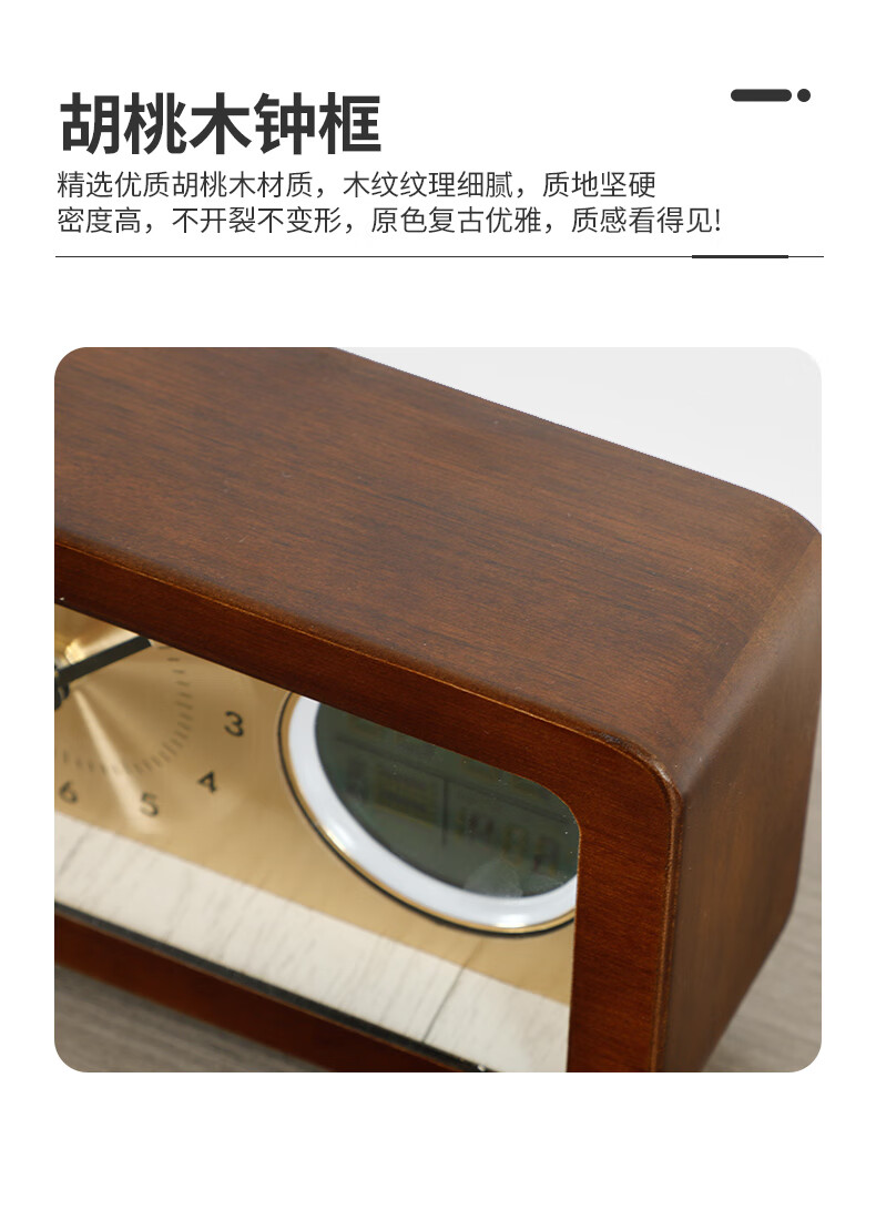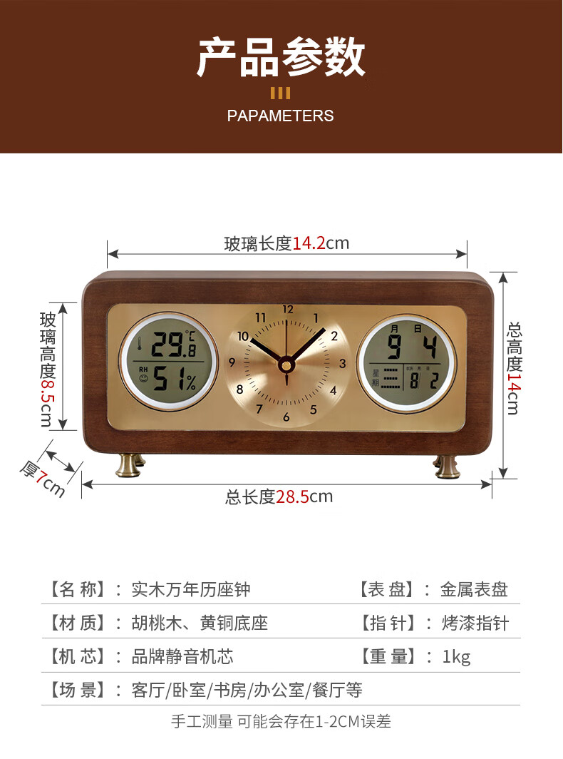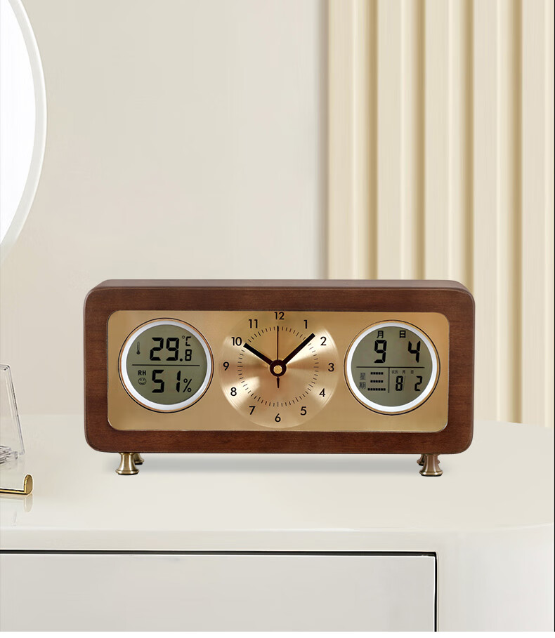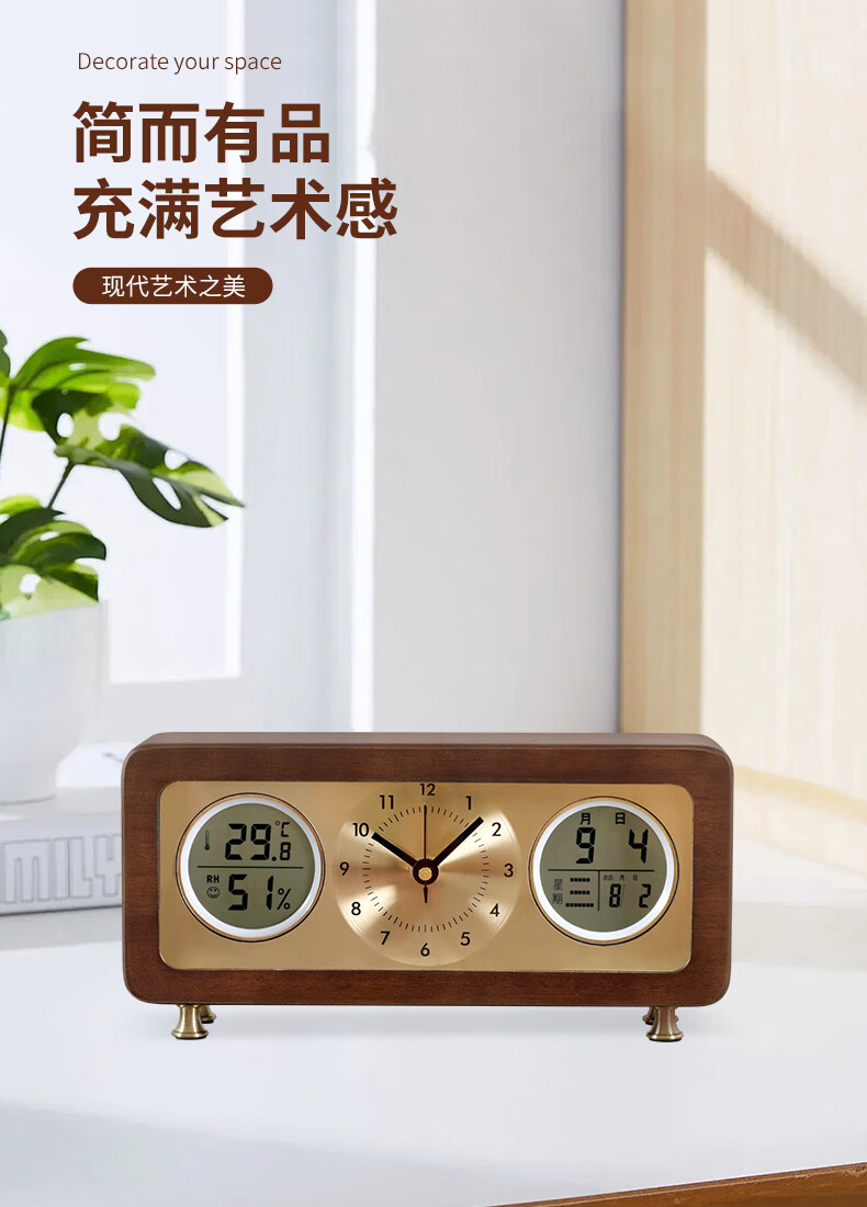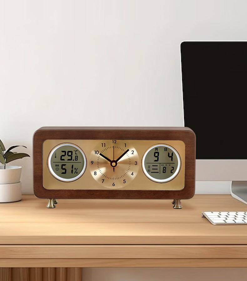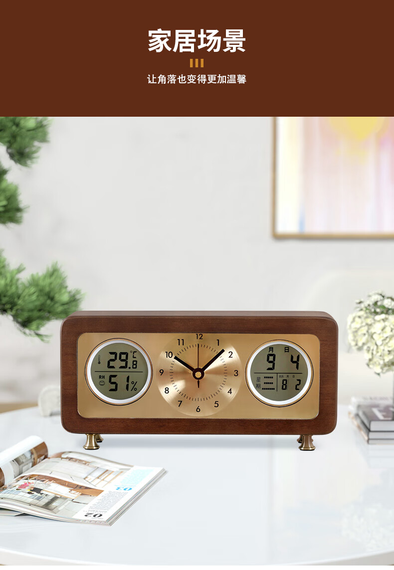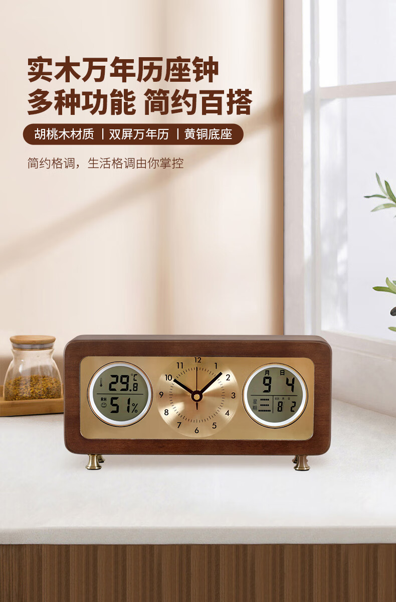 Compas solid wood desktop clock living room temperature and humidity silent perpetual calendar clock 508 (28.5*14cm)