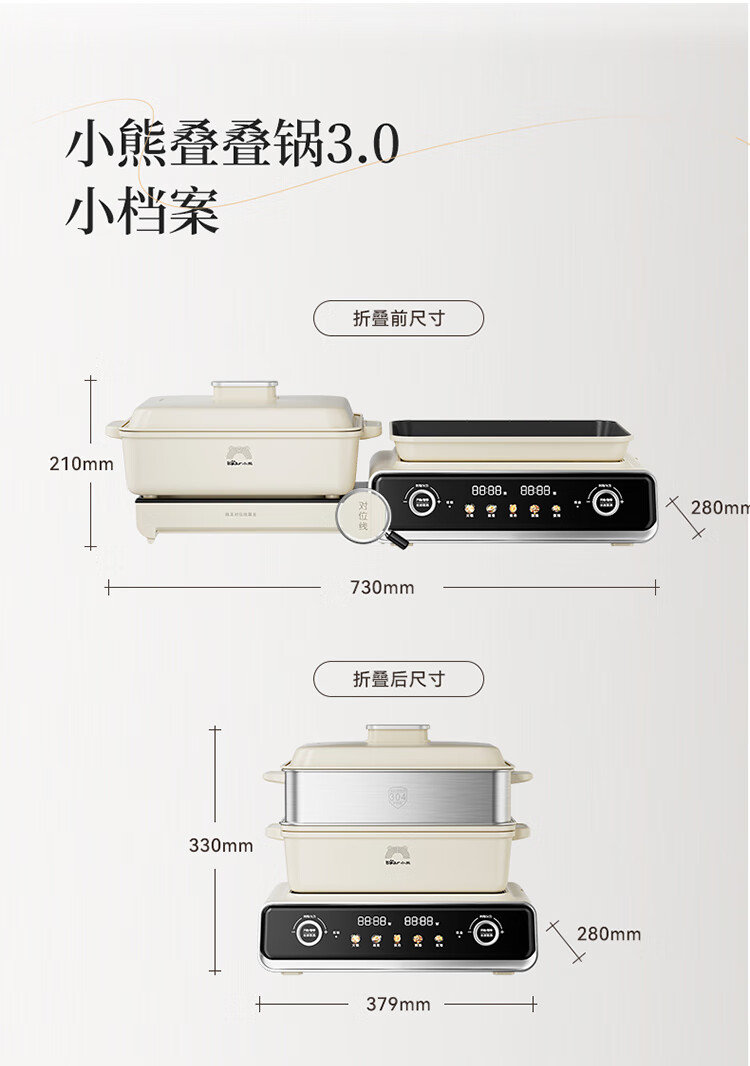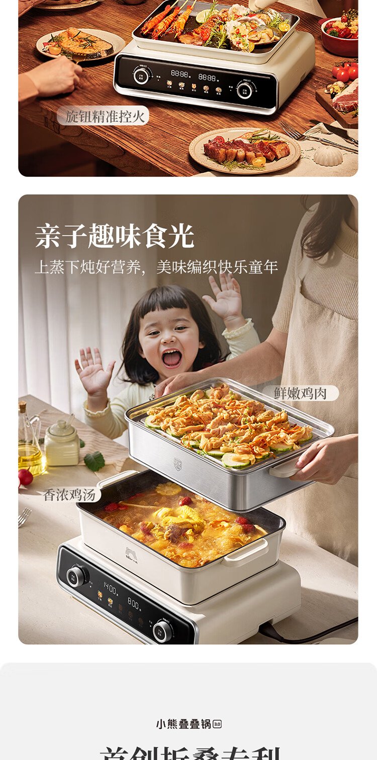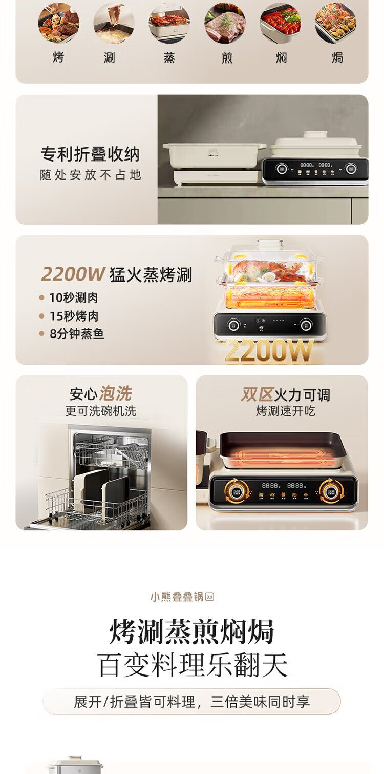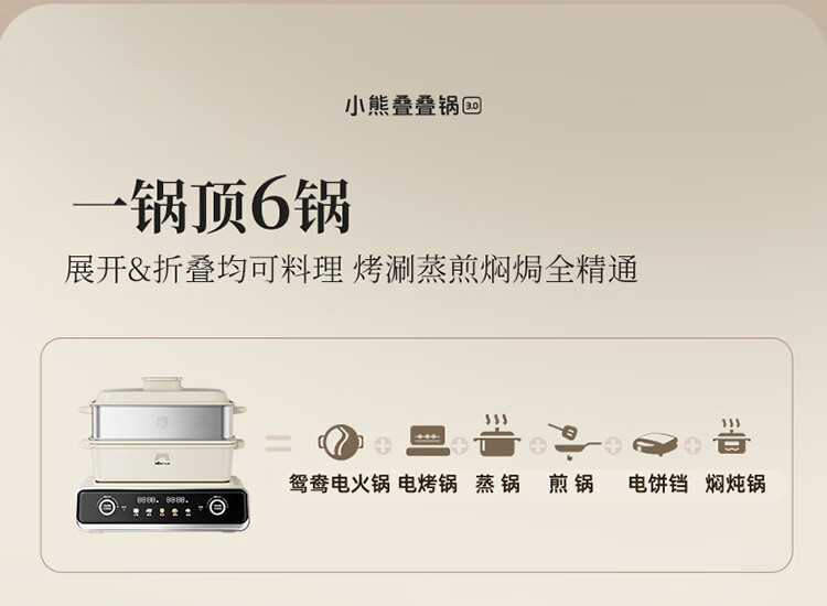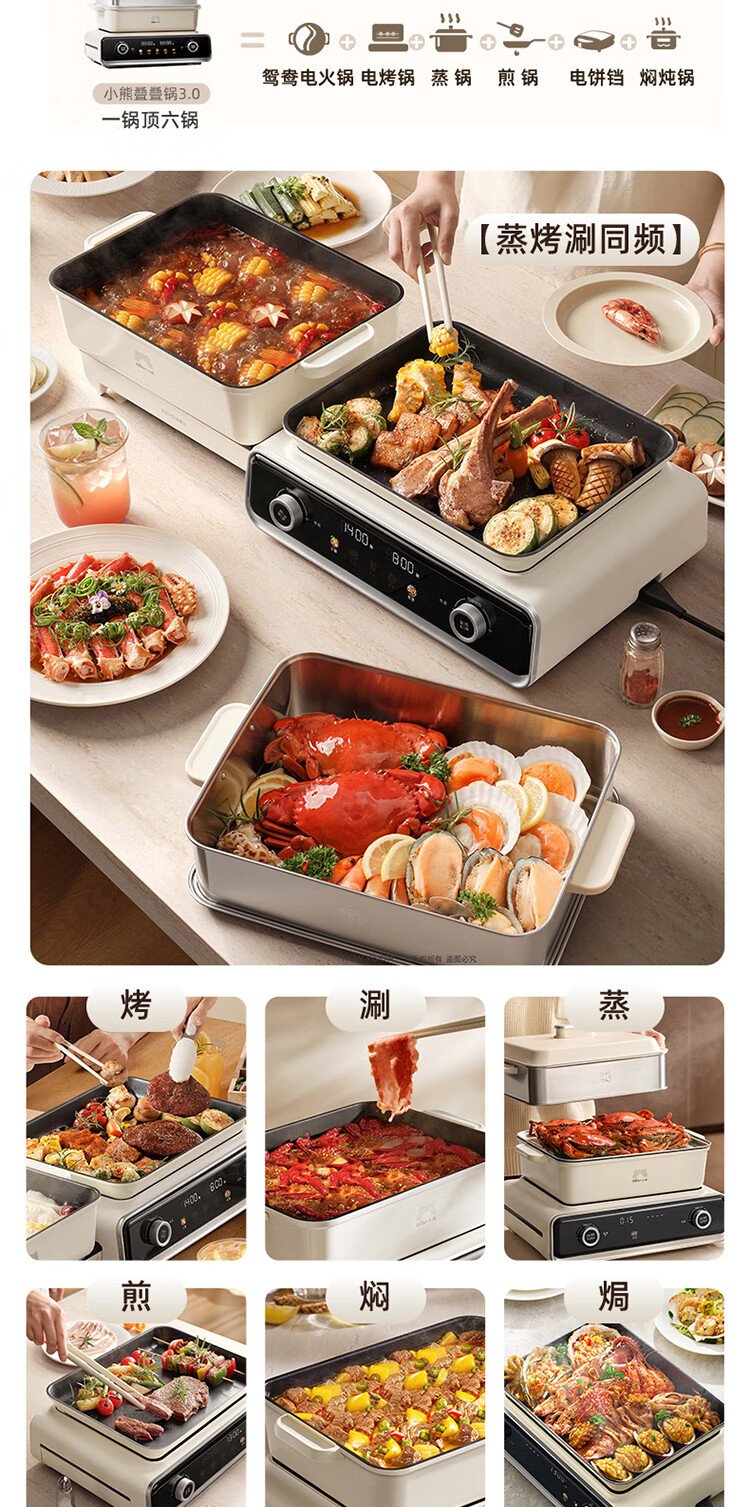 Bear electric hot pot special pot folding multi-functional pot electric steamer multi-purpose roasting and shabu-shabu all-in-one home cooking Bear stacking pot 3.0 single pot N22S3