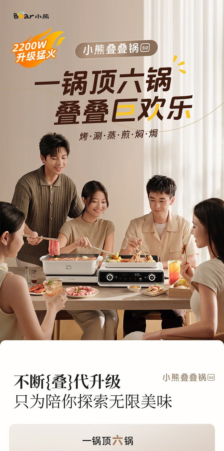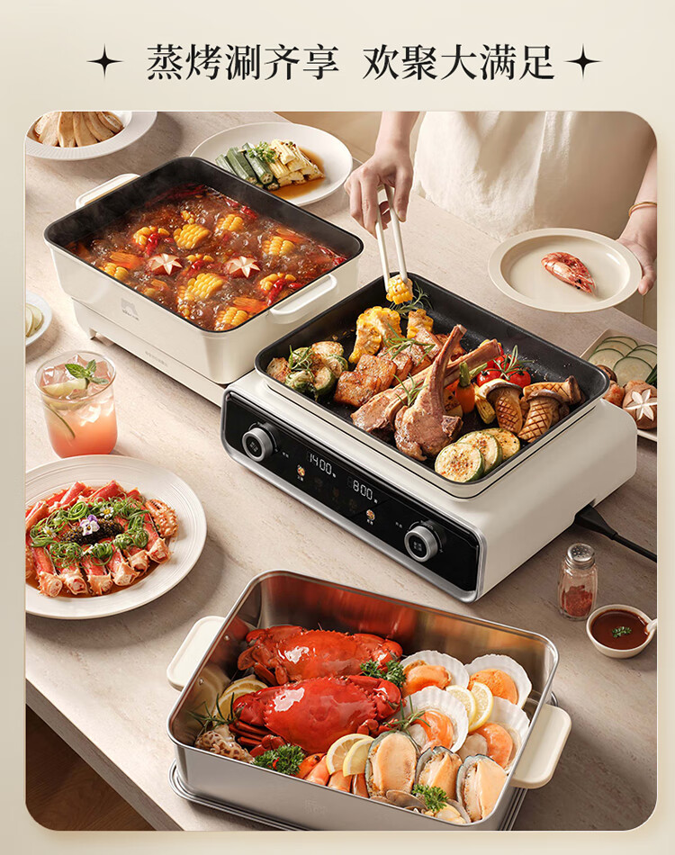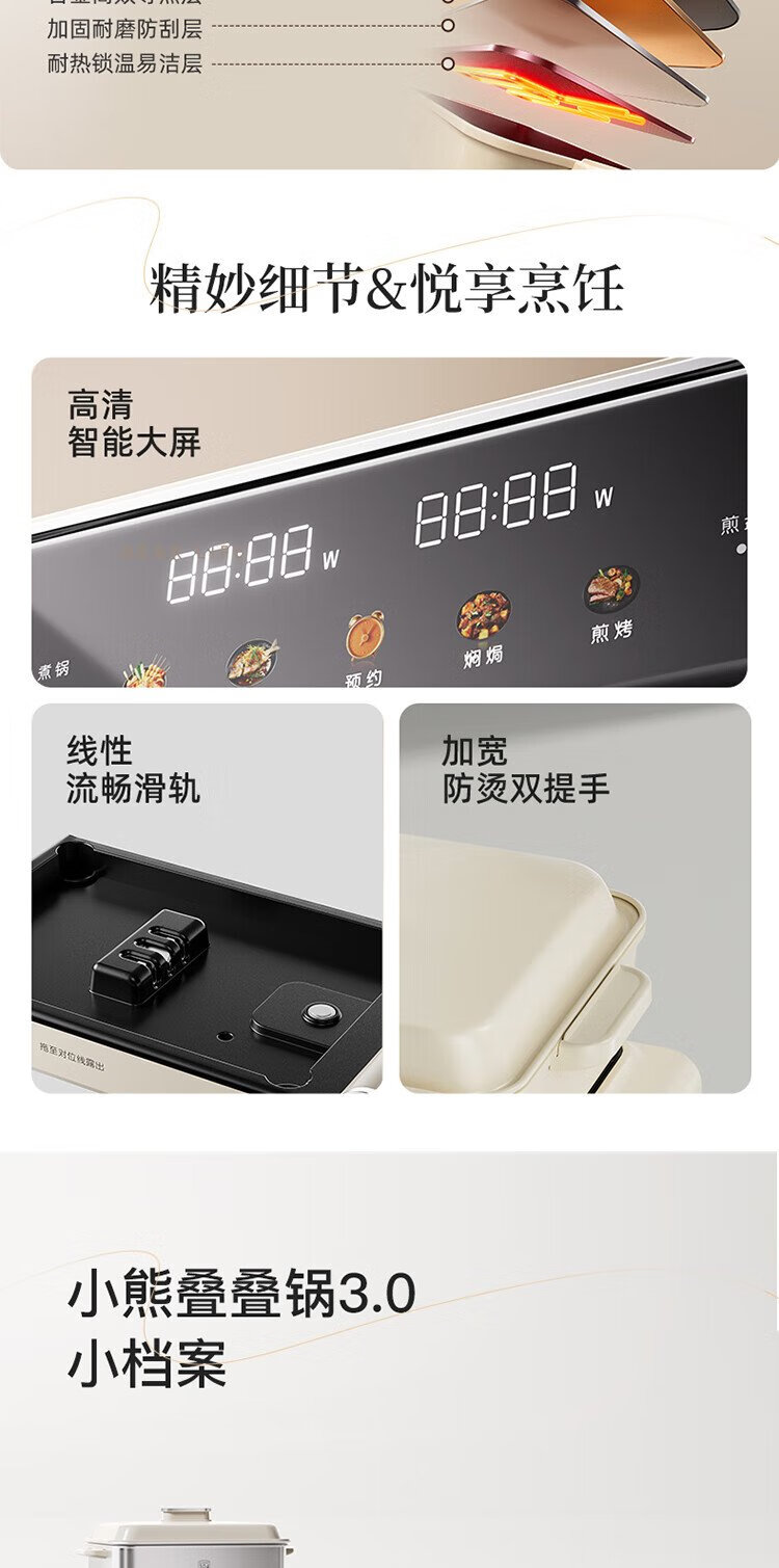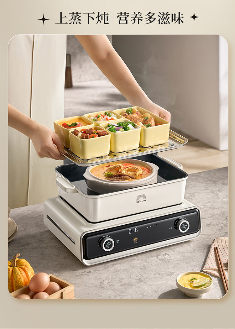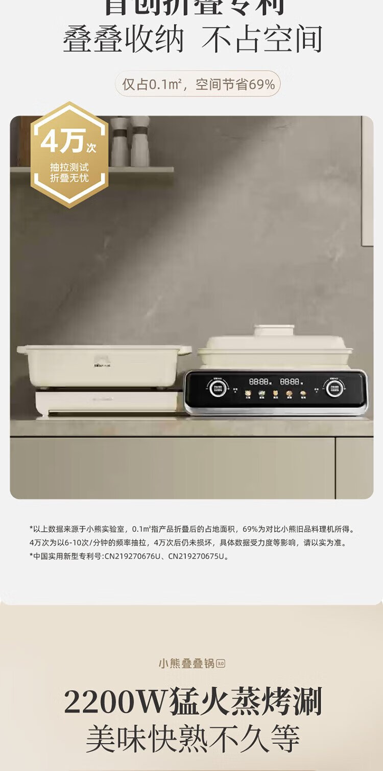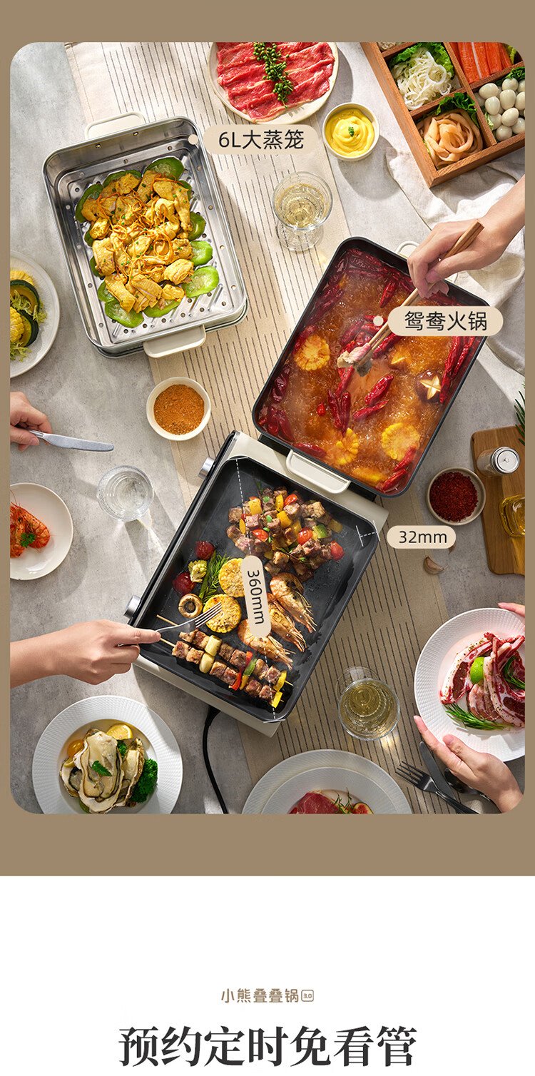 Bear electric hot pot special pot folding multi-functional pot electric steamer multi-purpose roasting and shabu-shabu all-in-one home cooking Bear stacking pot 3.0 single pot N22S3