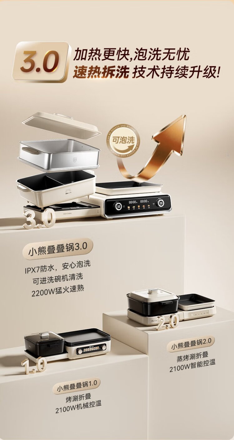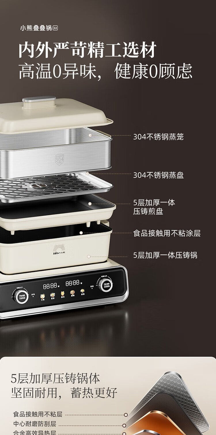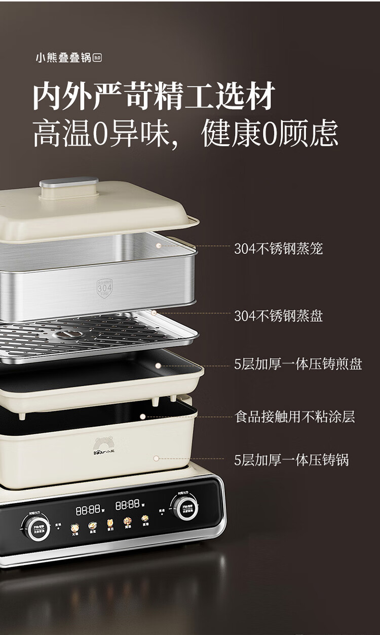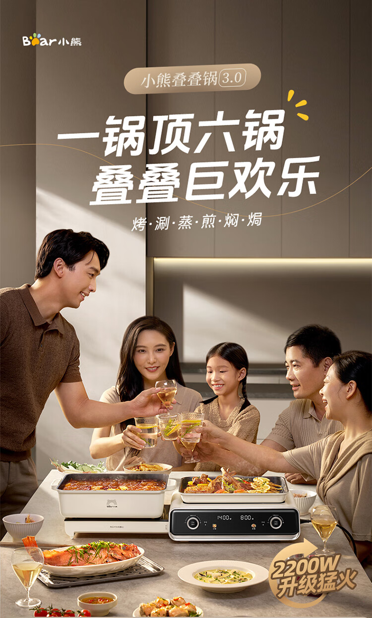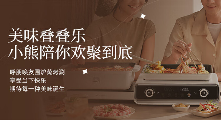Bear electric hot pot special pot folding multi-functional pot electric steamer multi-purpose roasting and shabu-shabu all-in-one home cooking Bear stacking pot 3.0 single pot N22S3