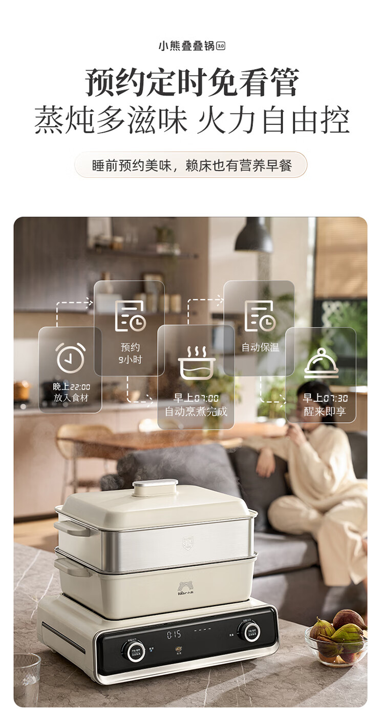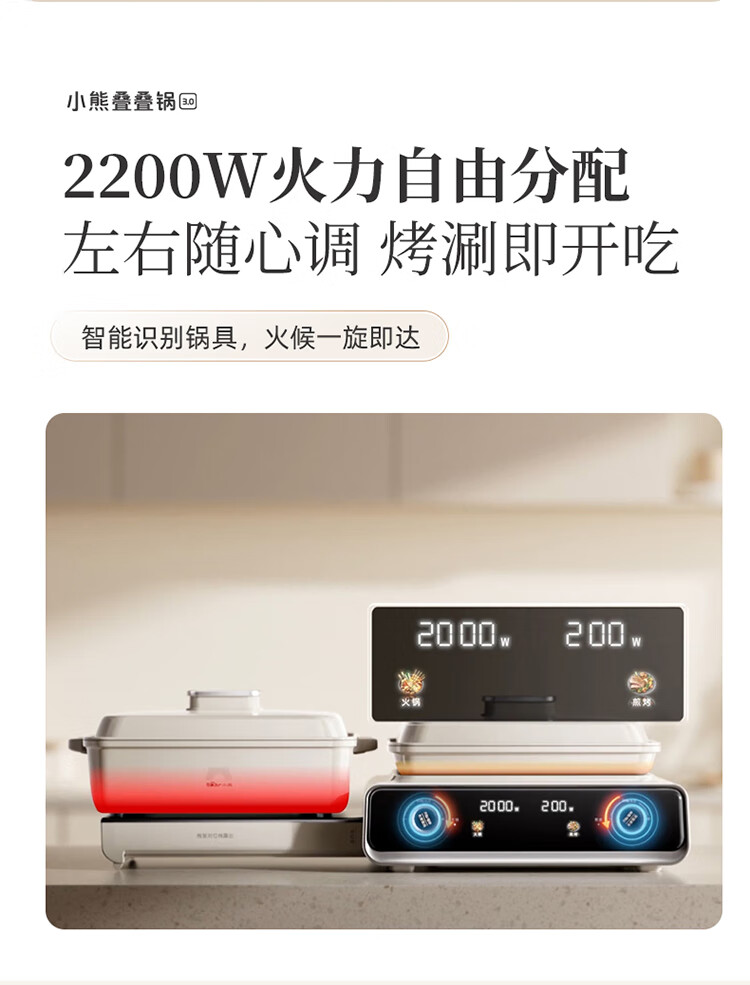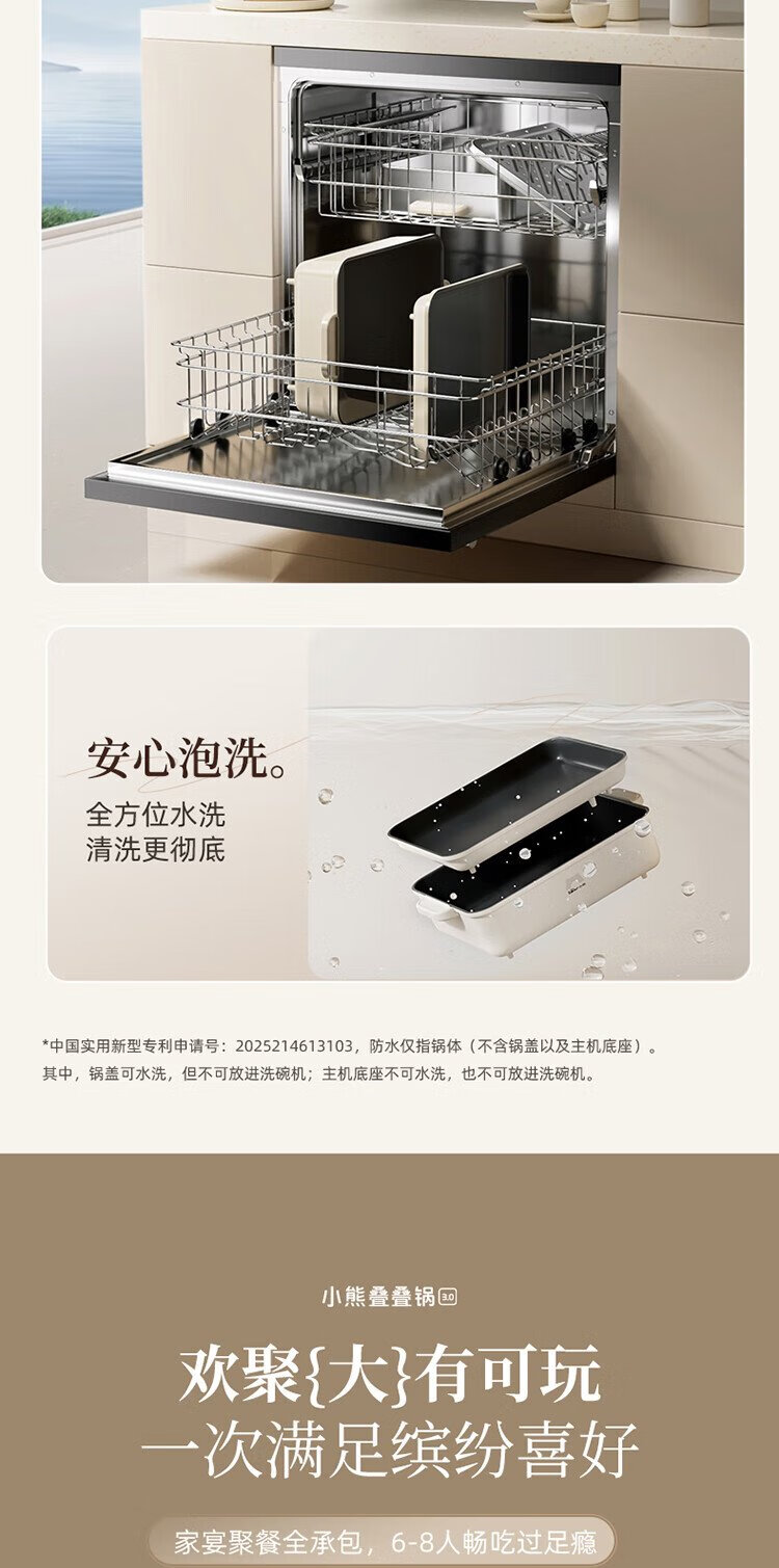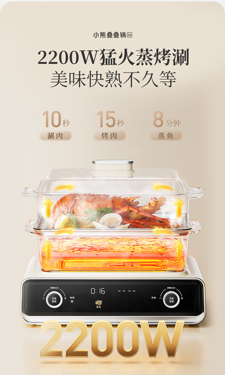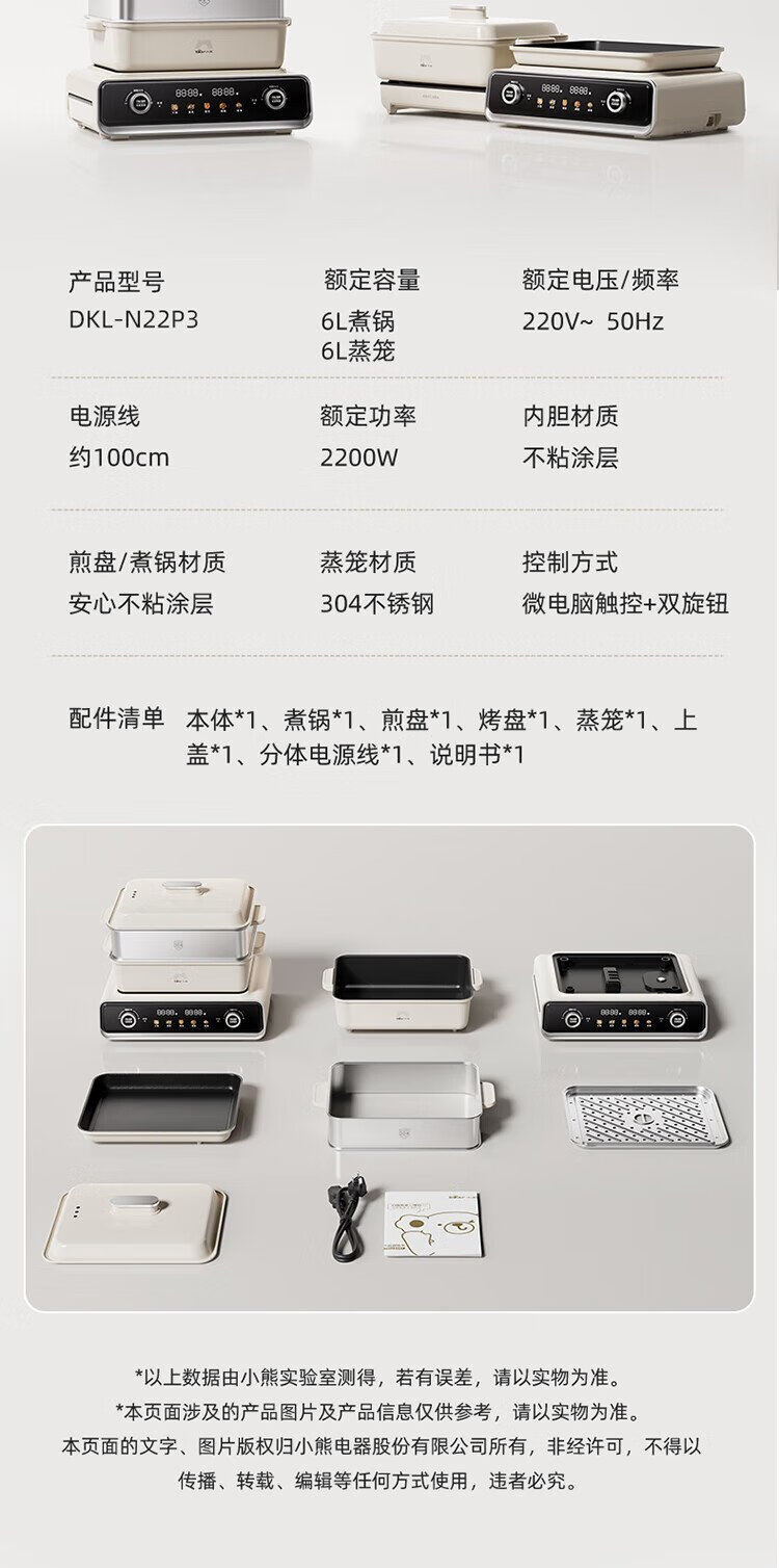 Bear electric hot pot special pot folding multi-functional pot electric steamer multi-purpose roasting and shabu-shabu all-in-one home cooking Bear stacking pot 3.0 single pot N22S3