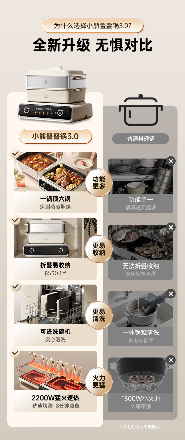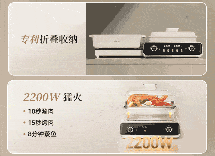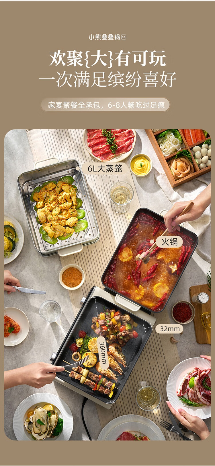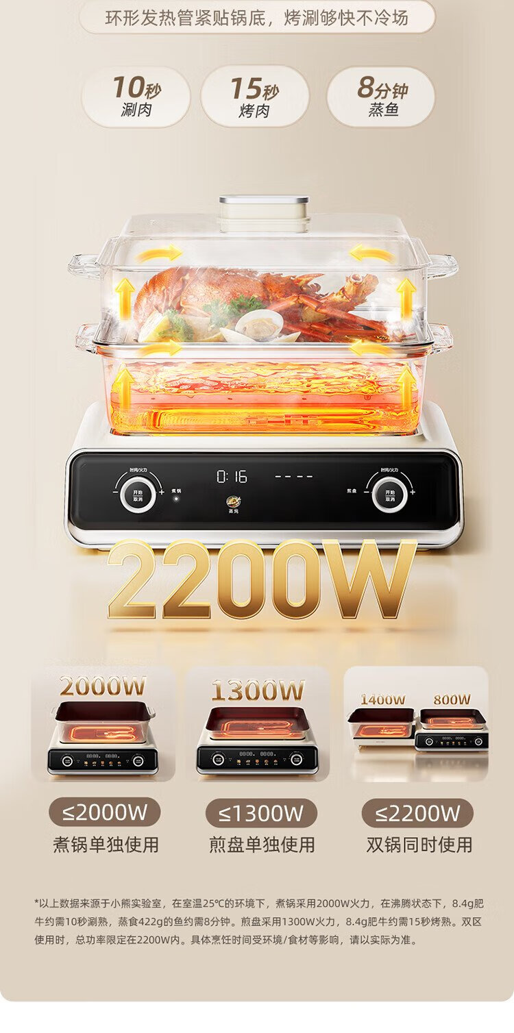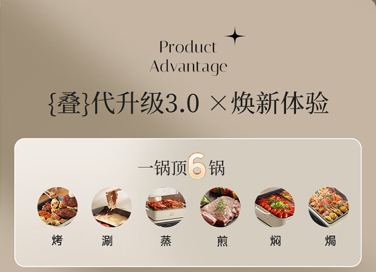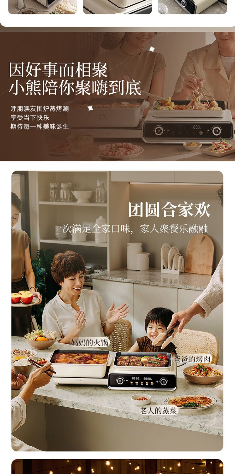 Bear electric hot pot special pot folding multi-functional pot electric steamer multi-purpose roasting and shabu-shabu all-in-one home cooking Bear stacking pot 3.0 single pot N22S3