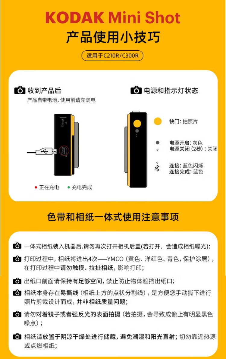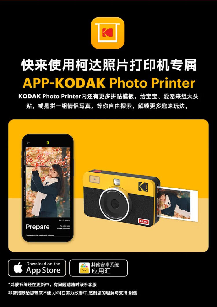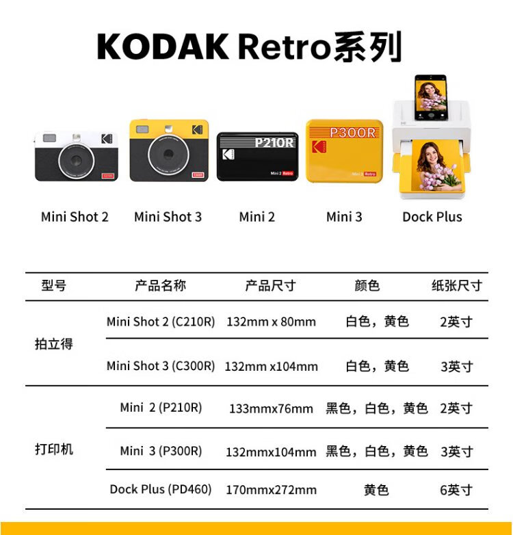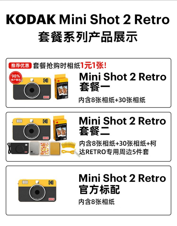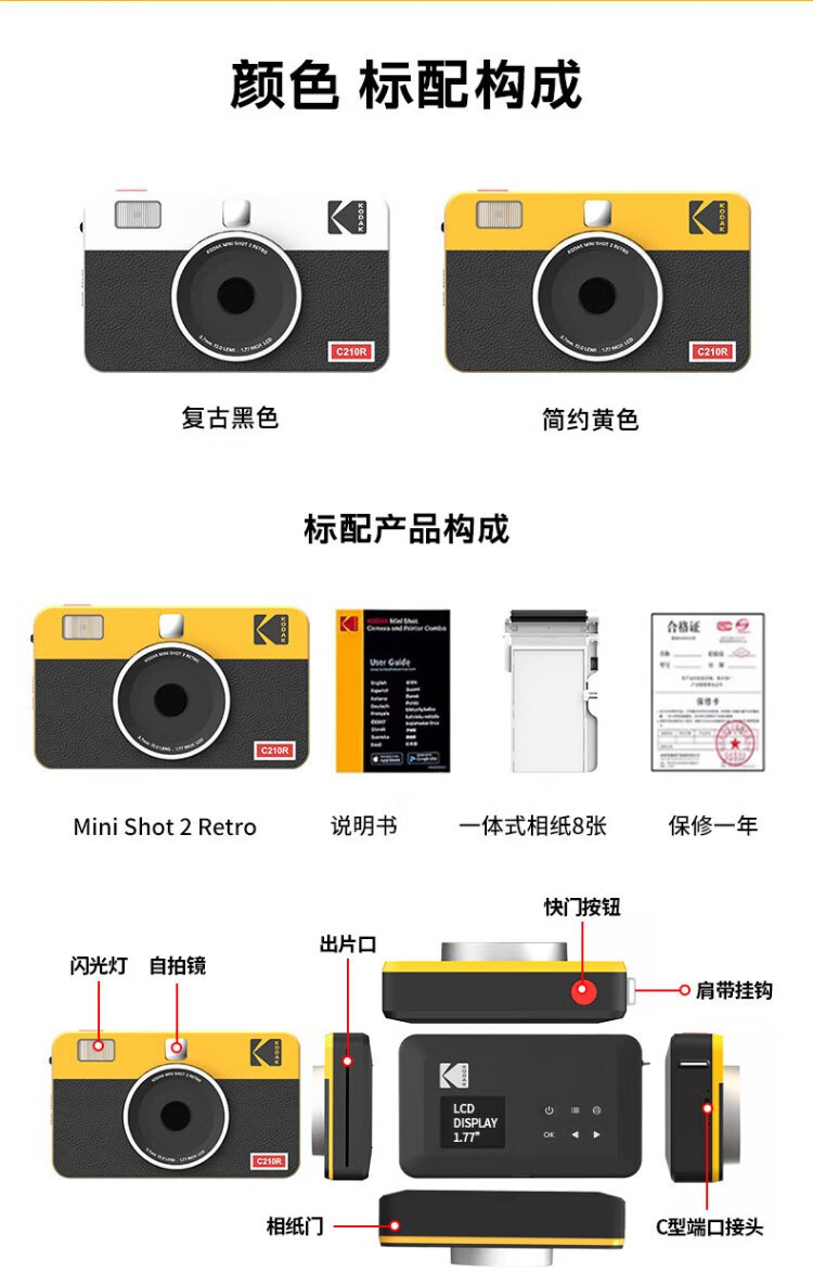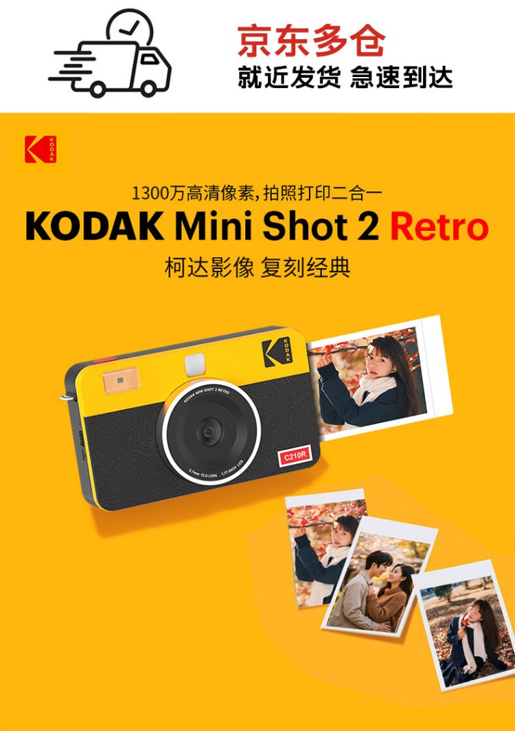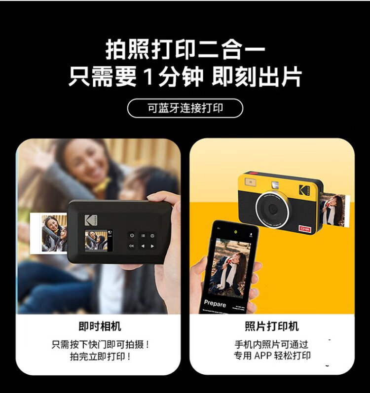 KODAK MiniShot2 Retro instant camera, photo and print all in one, one-time imaging camera, retro, mobile phone photo printing, holiday wedding and birthday gift