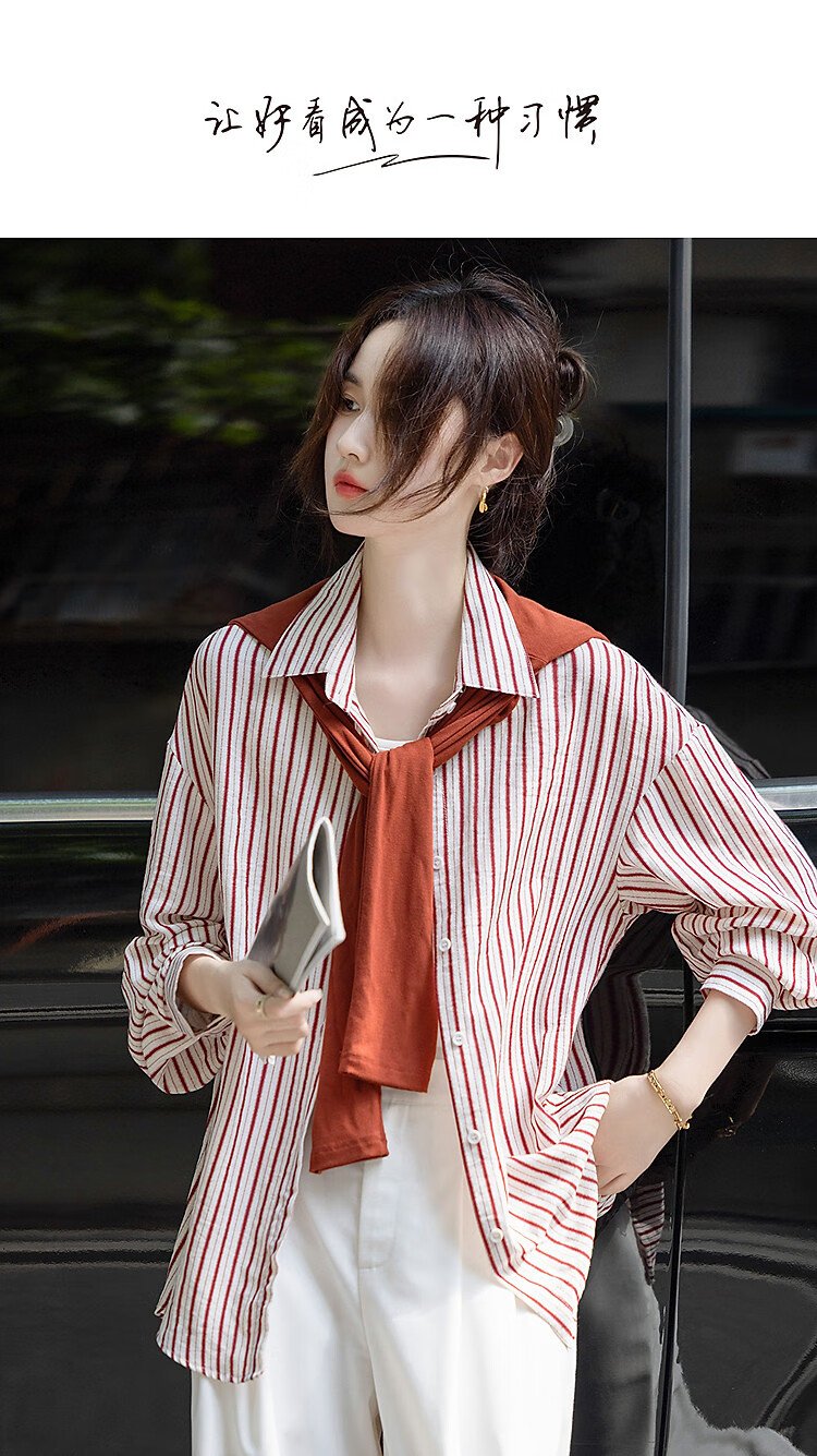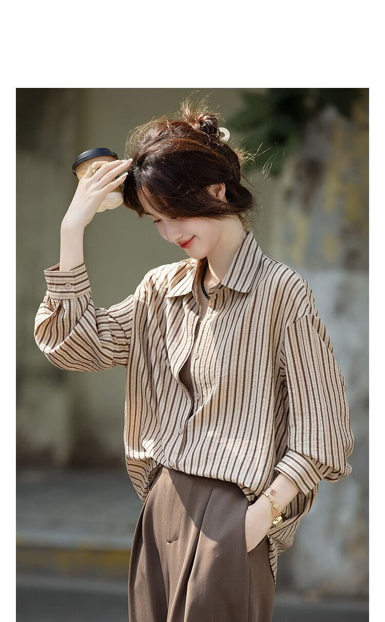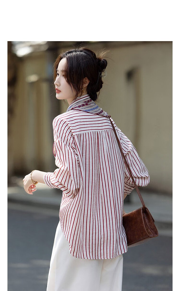 Demana contains natural linen, autumn relaxed prologue lapel striped shirt, hidden flesh petite shirt, women's top