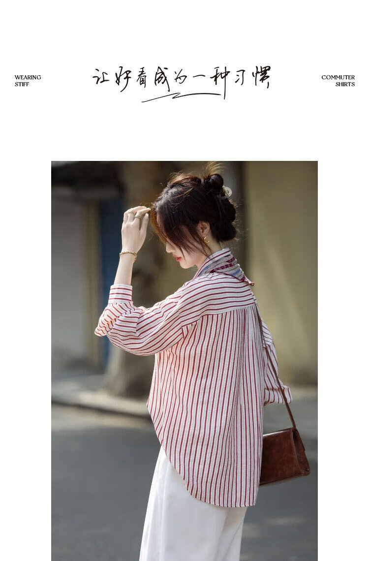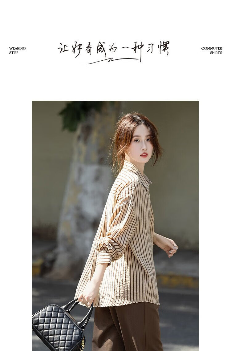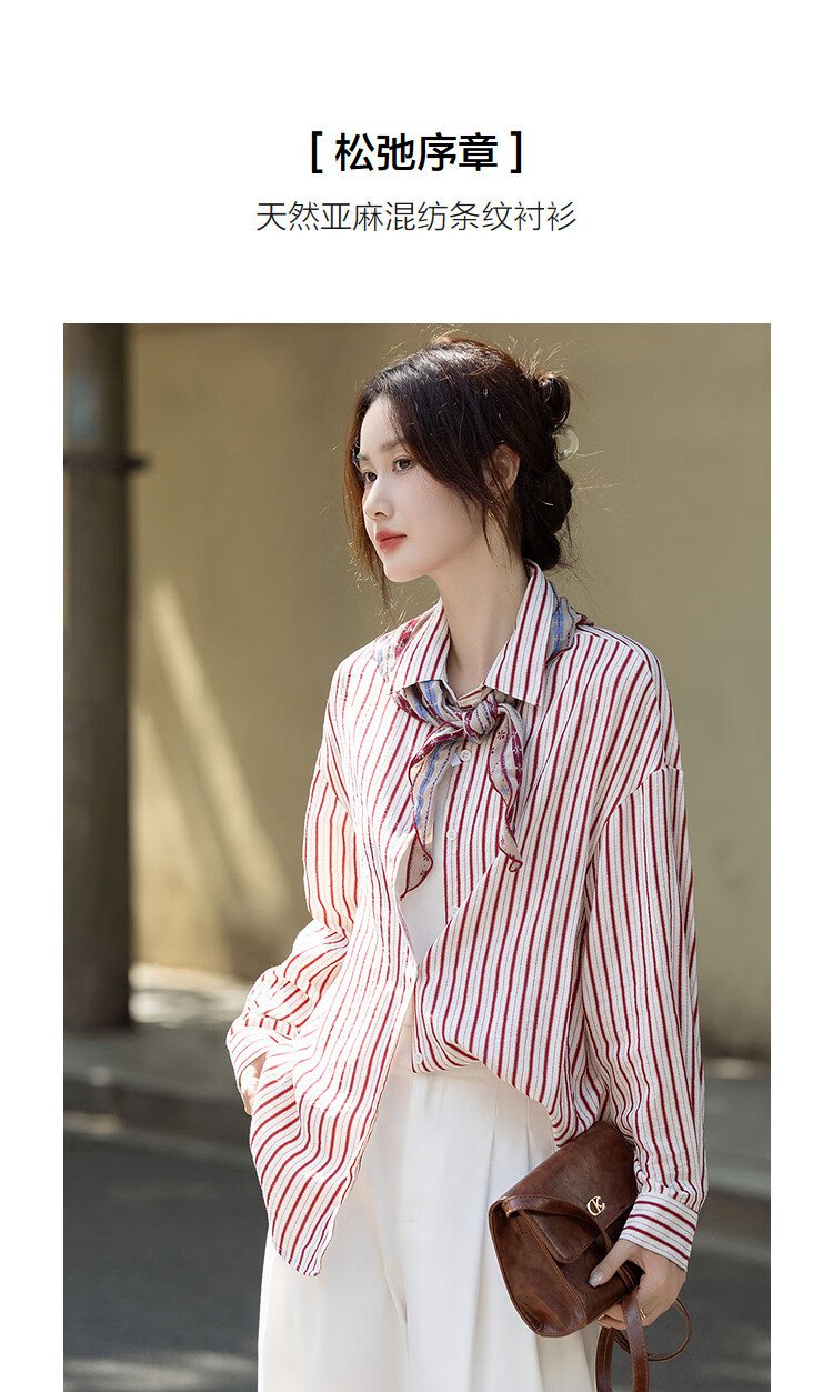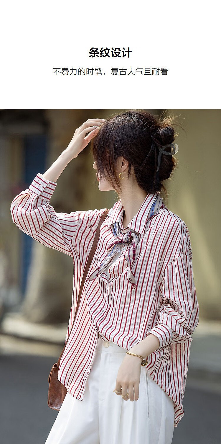 Demana contains natural linen, autumn relaxed prologue lapel striped shirt, hidden flesh petite shirt, women's top