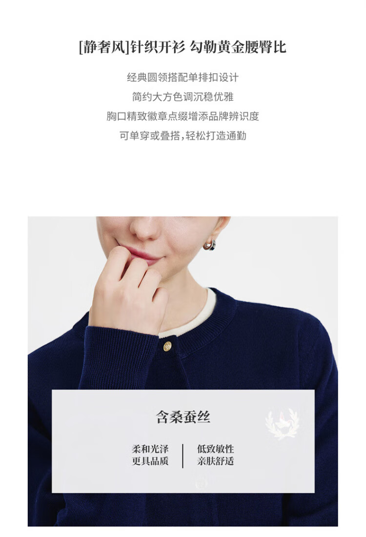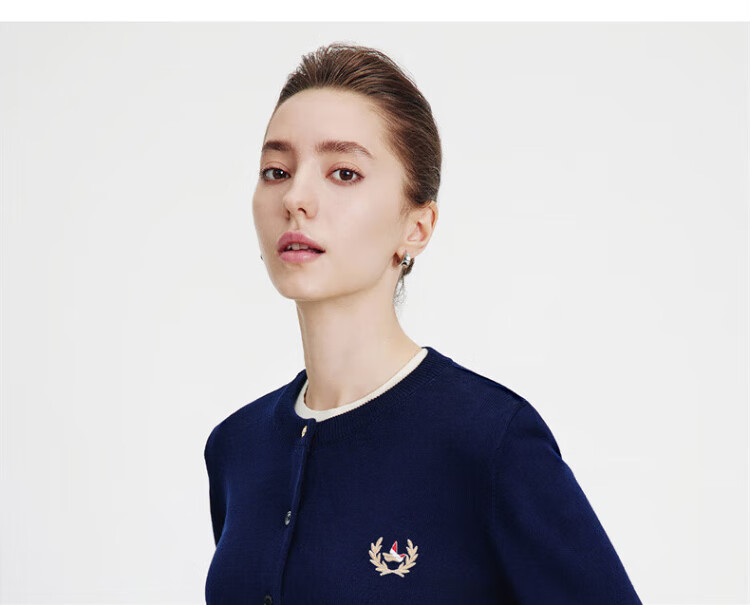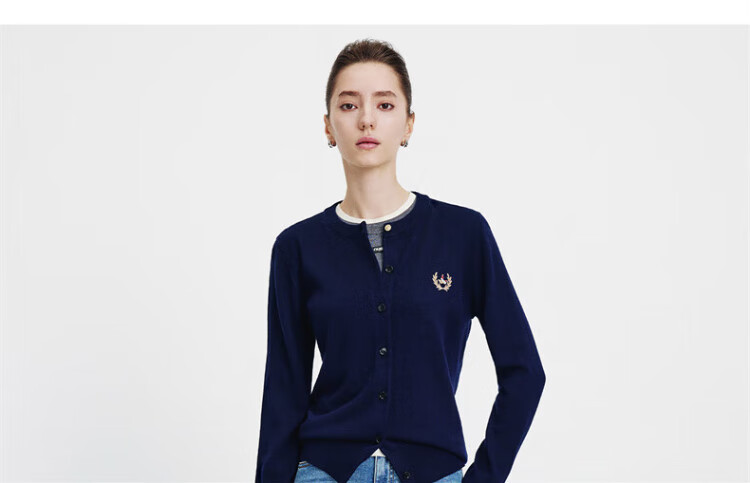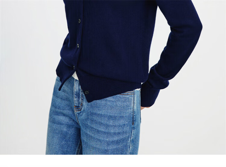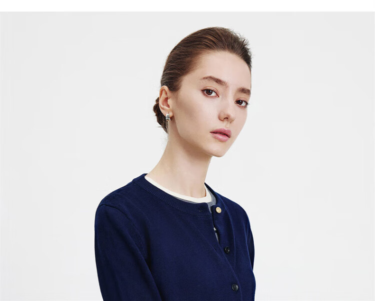 Navikel Italian dinghy women's skin-friendly round neck knitted cardigan classic sweater jacket 2334092061 blue L