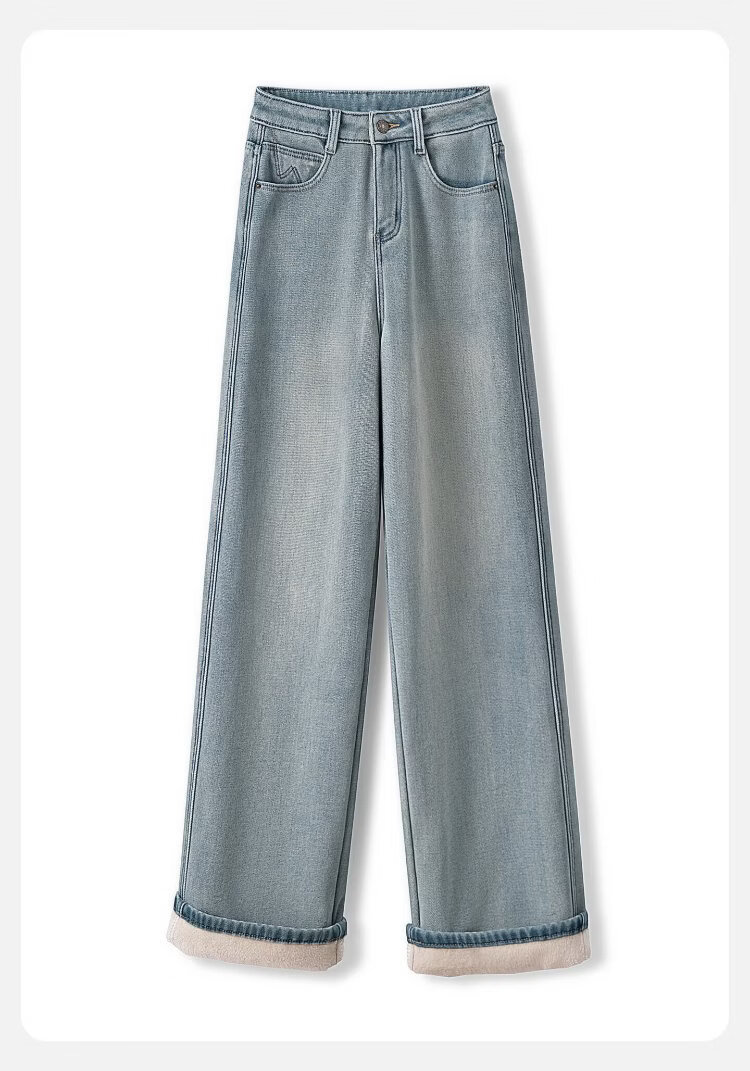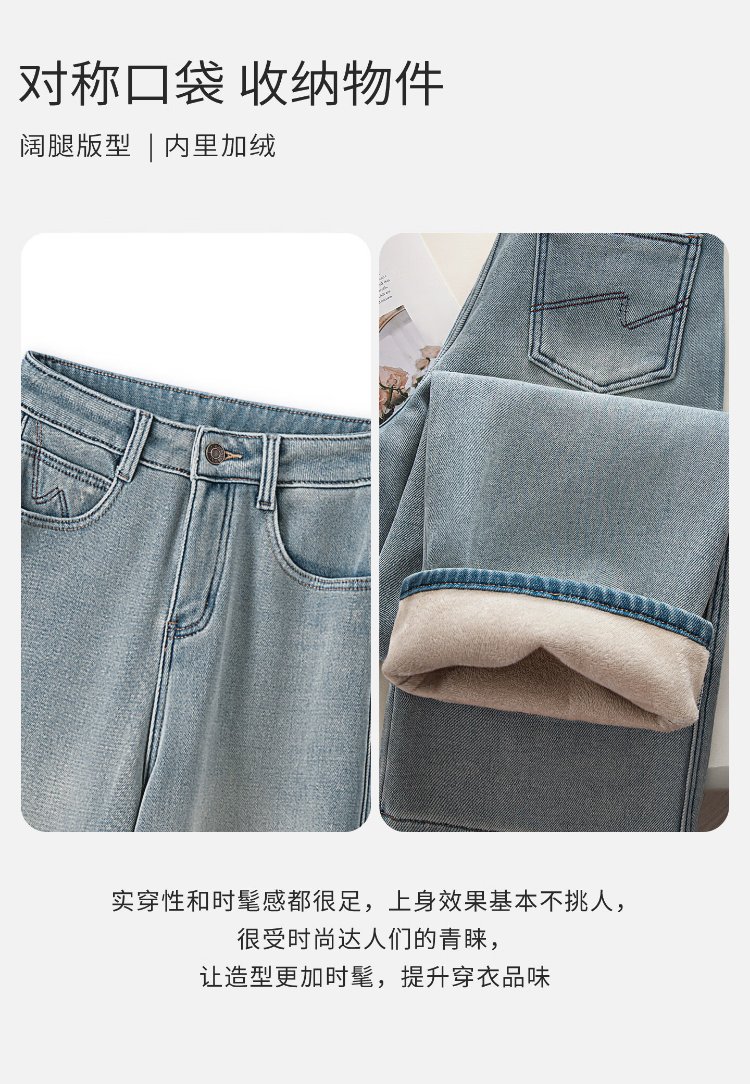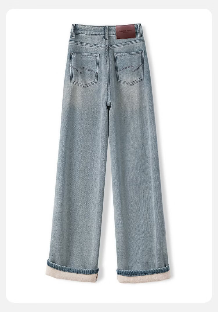 Sibaishe High Waist Jeans 2025 Winter New Women's Retro Washed Slim Fit Velvet Wide Leg Pants