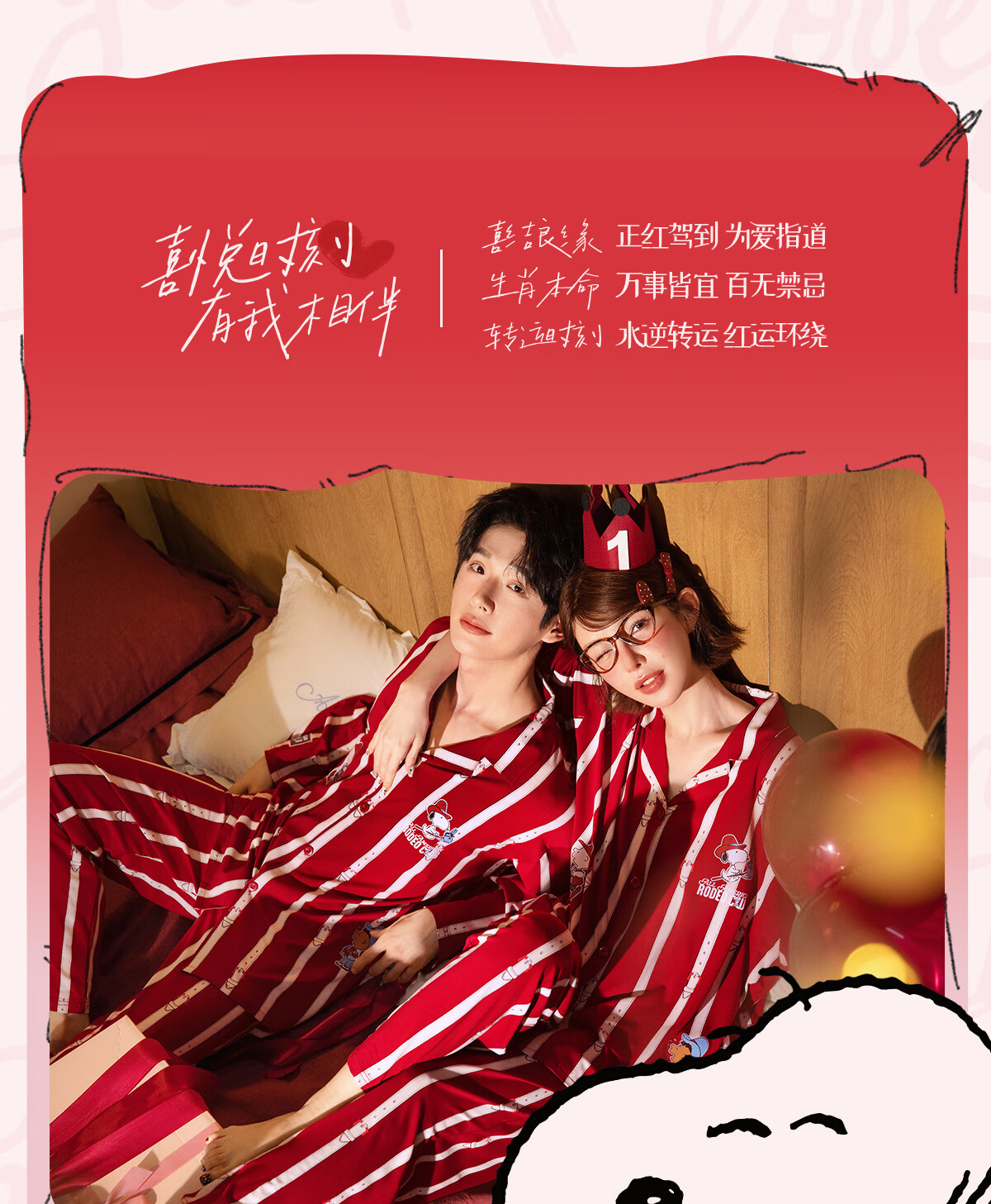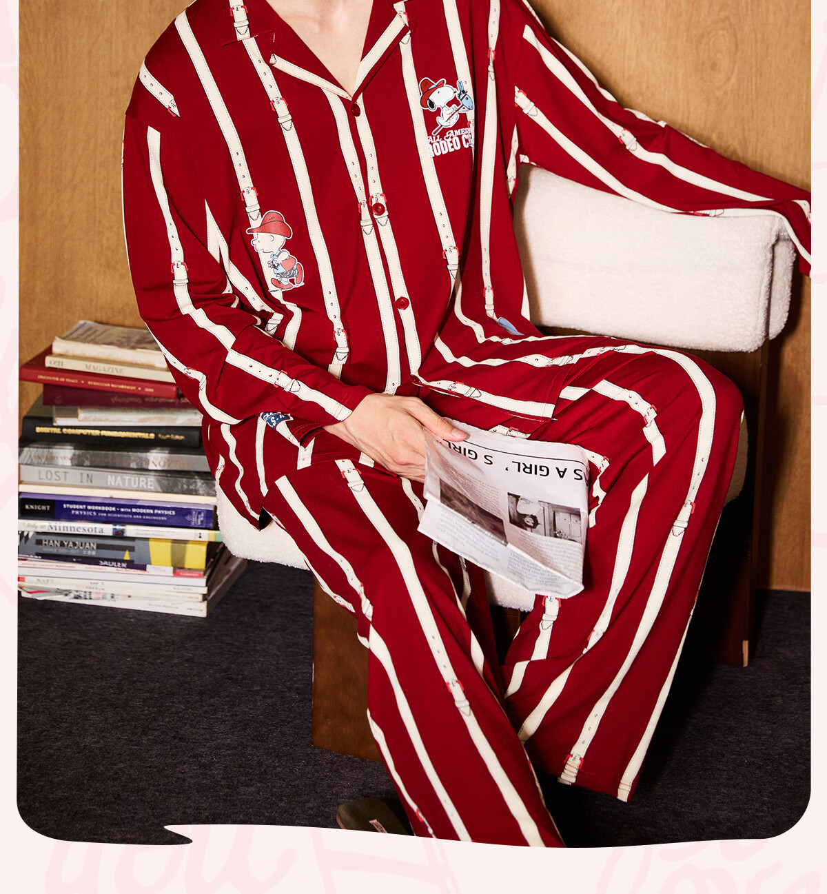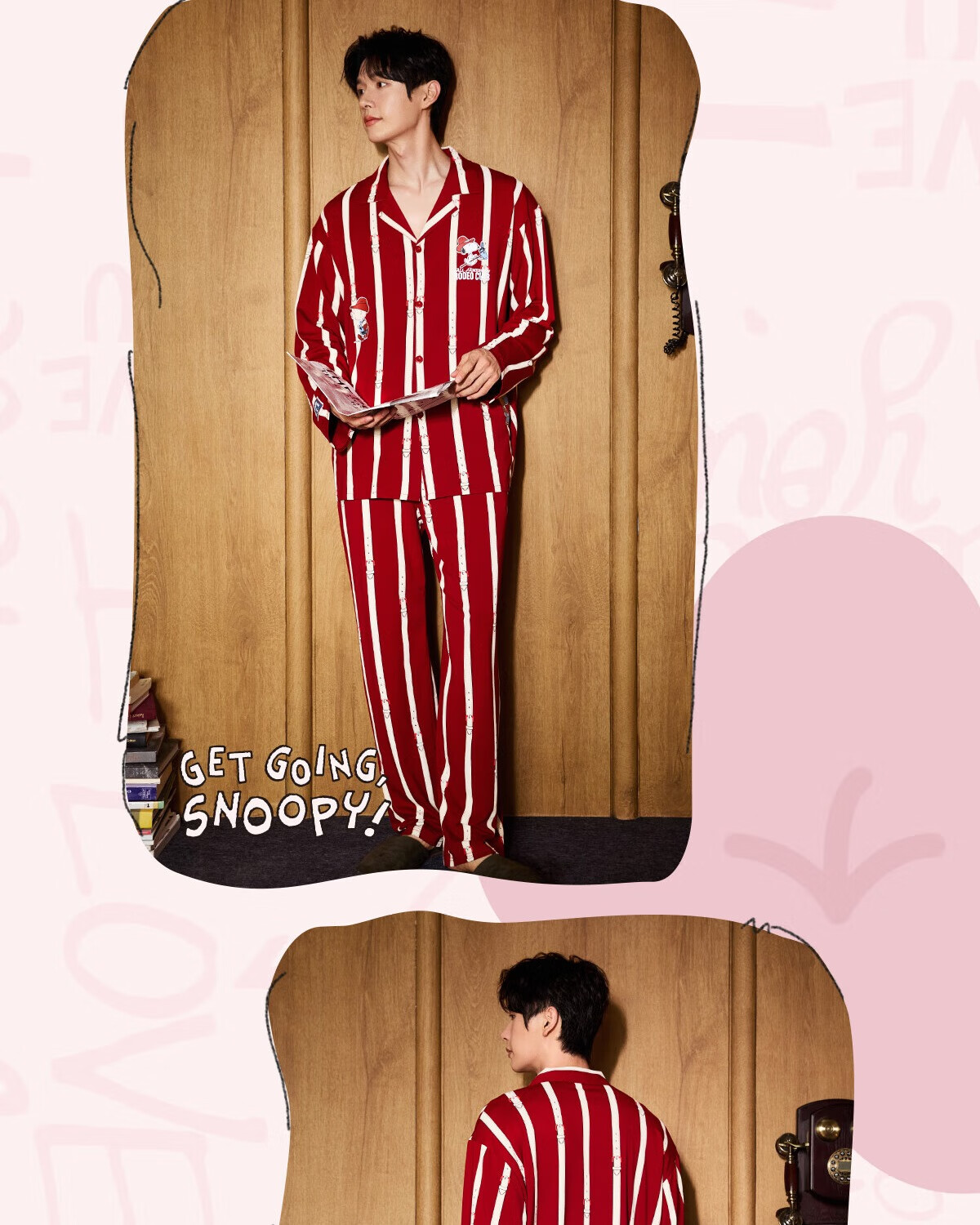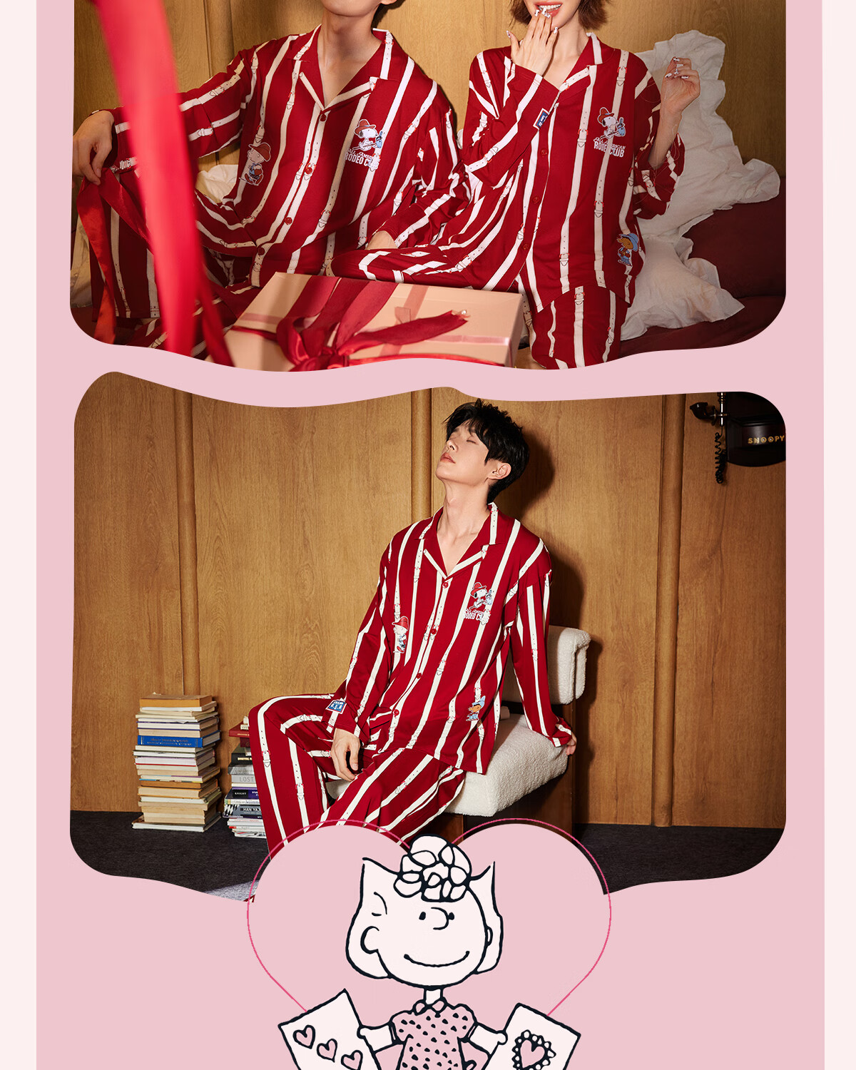 Gong Die Light and Soft Snoopy Red Couple Pajamas for Women Newly Married Long Sleeve Zodiac Year Home Clothes for Men