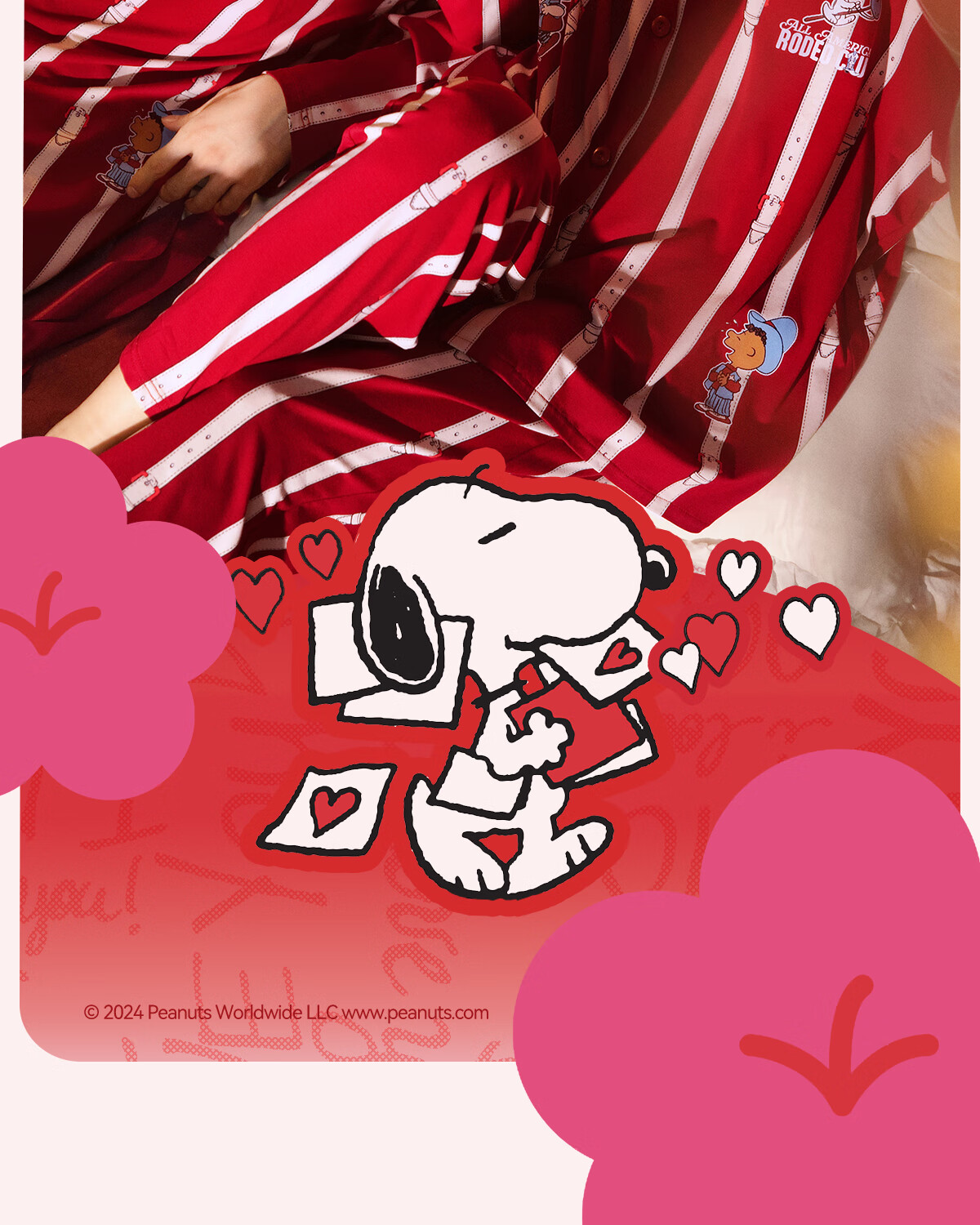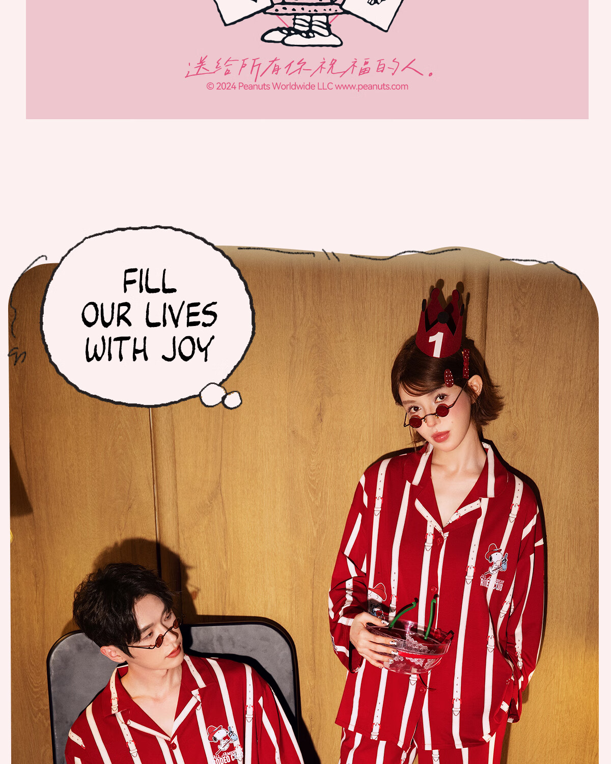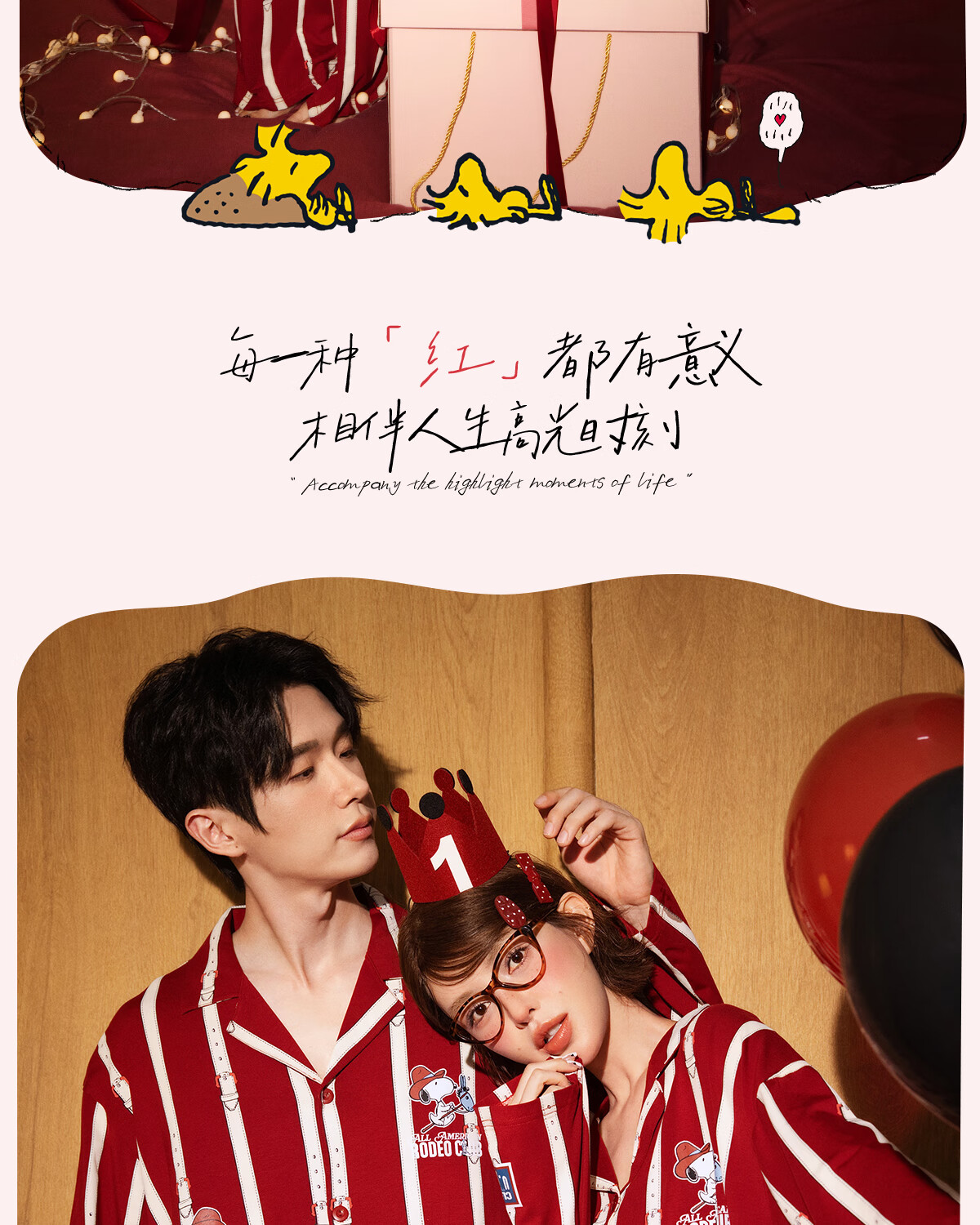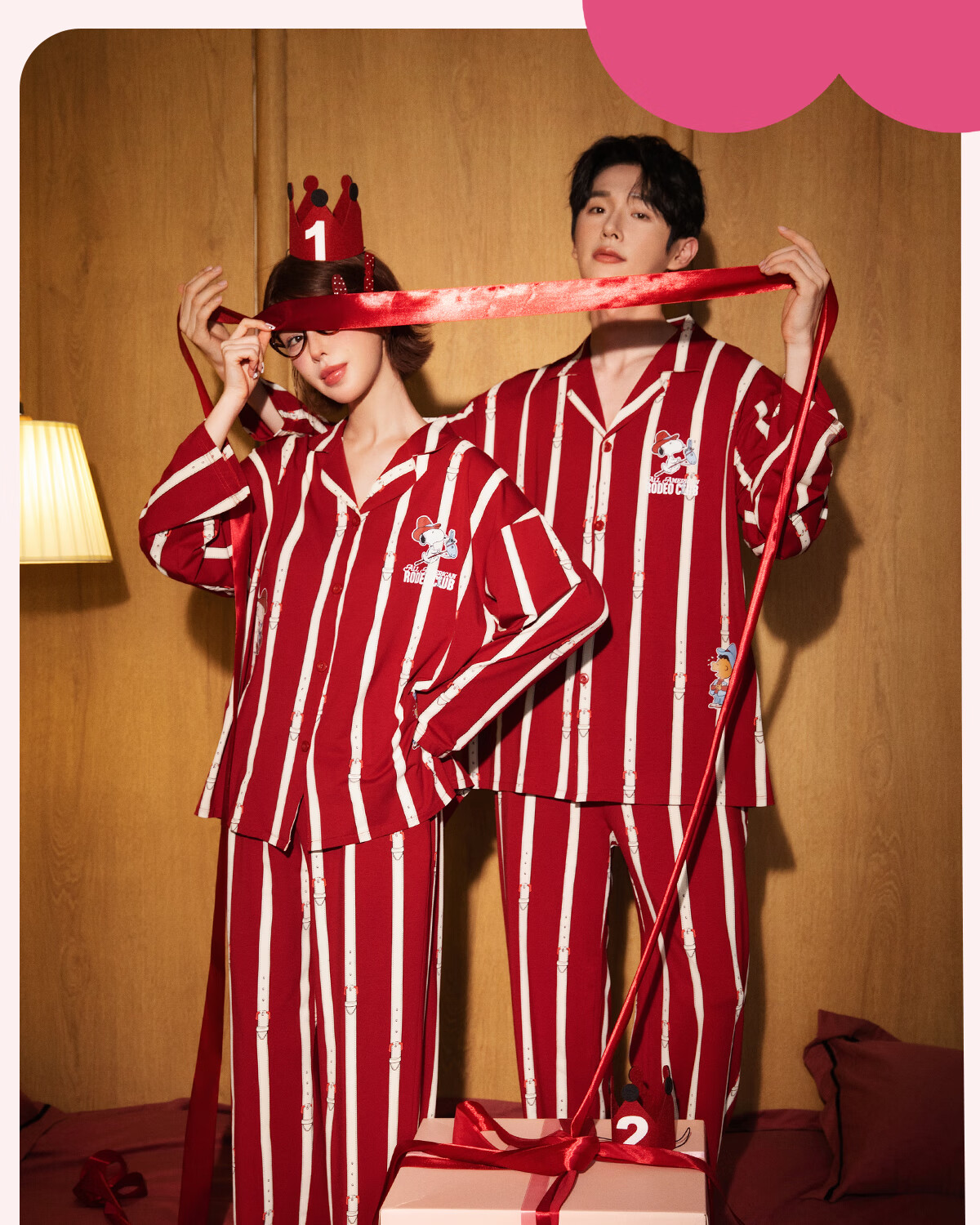 Gong Die Light and Soft Snoopy Red Couple Pajamas for Women Newly Married Long Sleeve Zodiac Year Home Clothes for Men