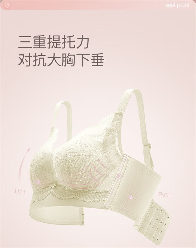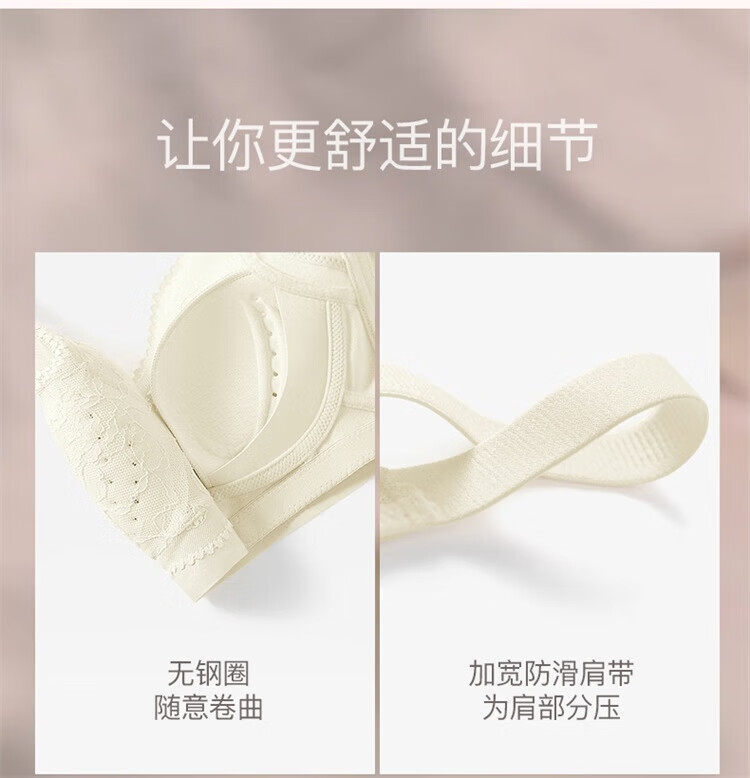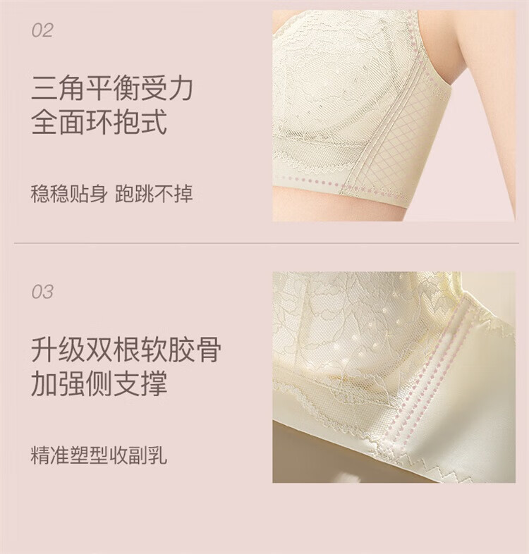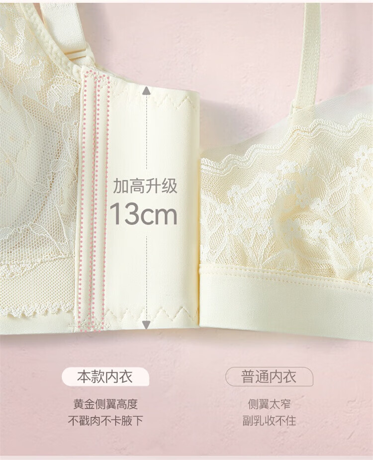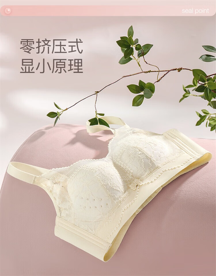 Urban Beauty Lace Underwear Women's Big Breast Reduction Anti-sagging Anti-sagging Breast Reduction Wireless Bra Champagne 80C