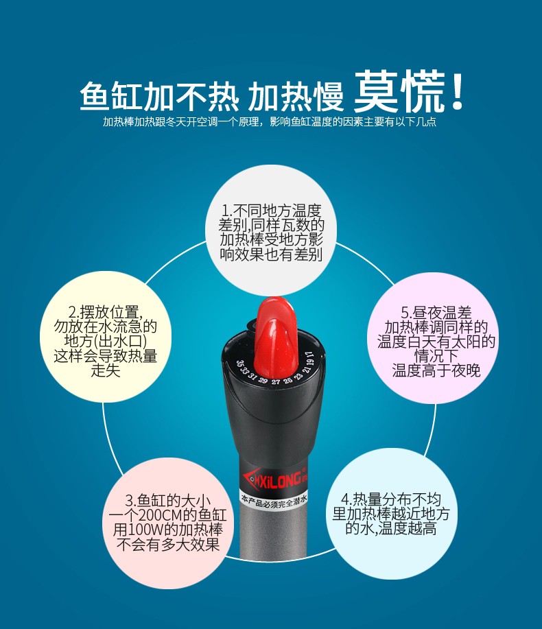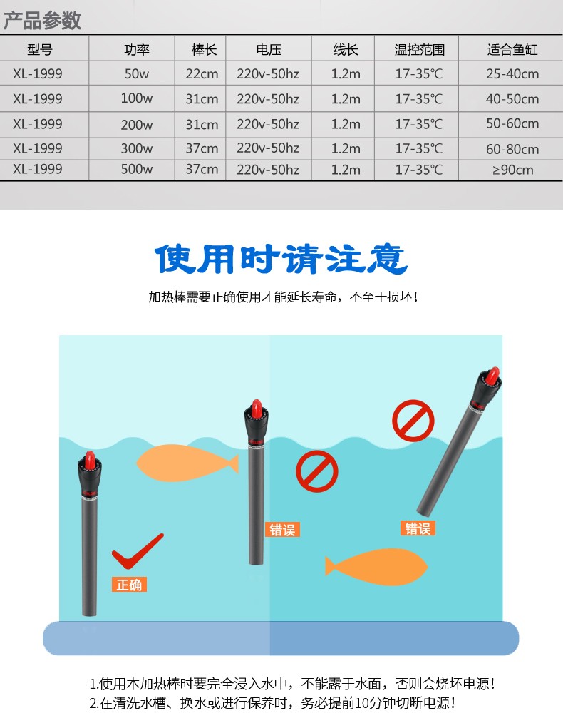 Xilong fish tank heating rod automatic constant temperature heater ornamental fish tropical fish constant temperature small electric water aquarium heating rod XL-1999 200W length 31cm
