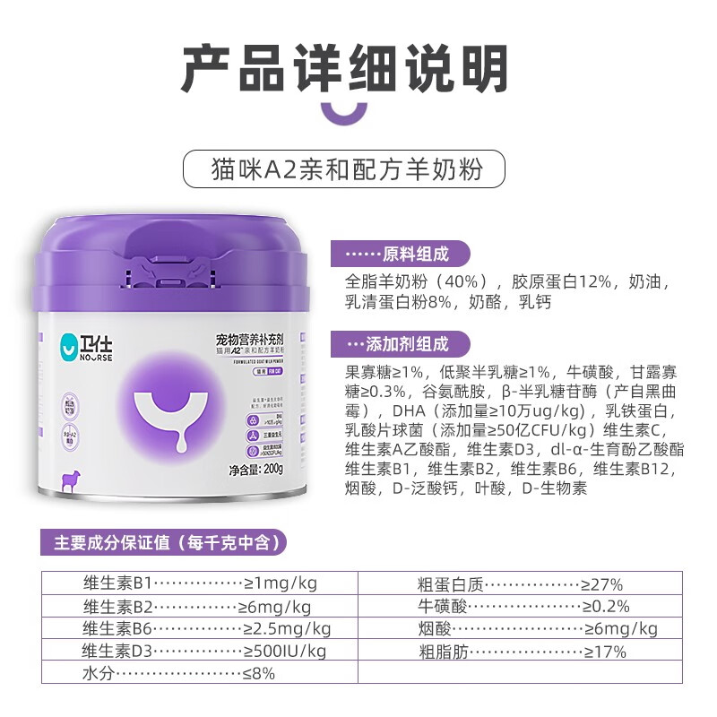 Weish Goat Milk Powder Cat Special Cat Milk Powder Kittens Pregnant Cats Kittens Adult Cats Postpartum Nutrition A2 Affinity Goat Milk Powder 200g (valid until March 12, 2026)