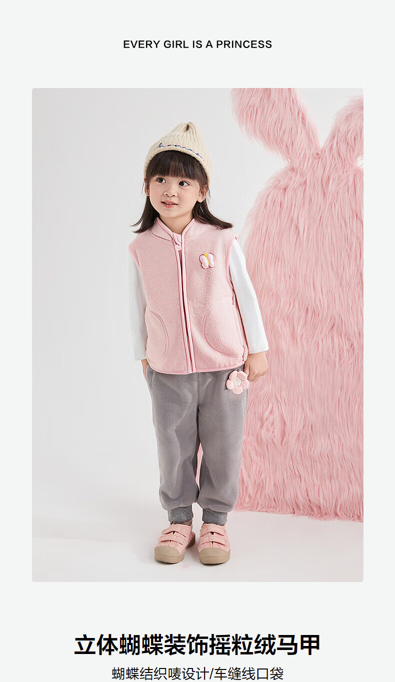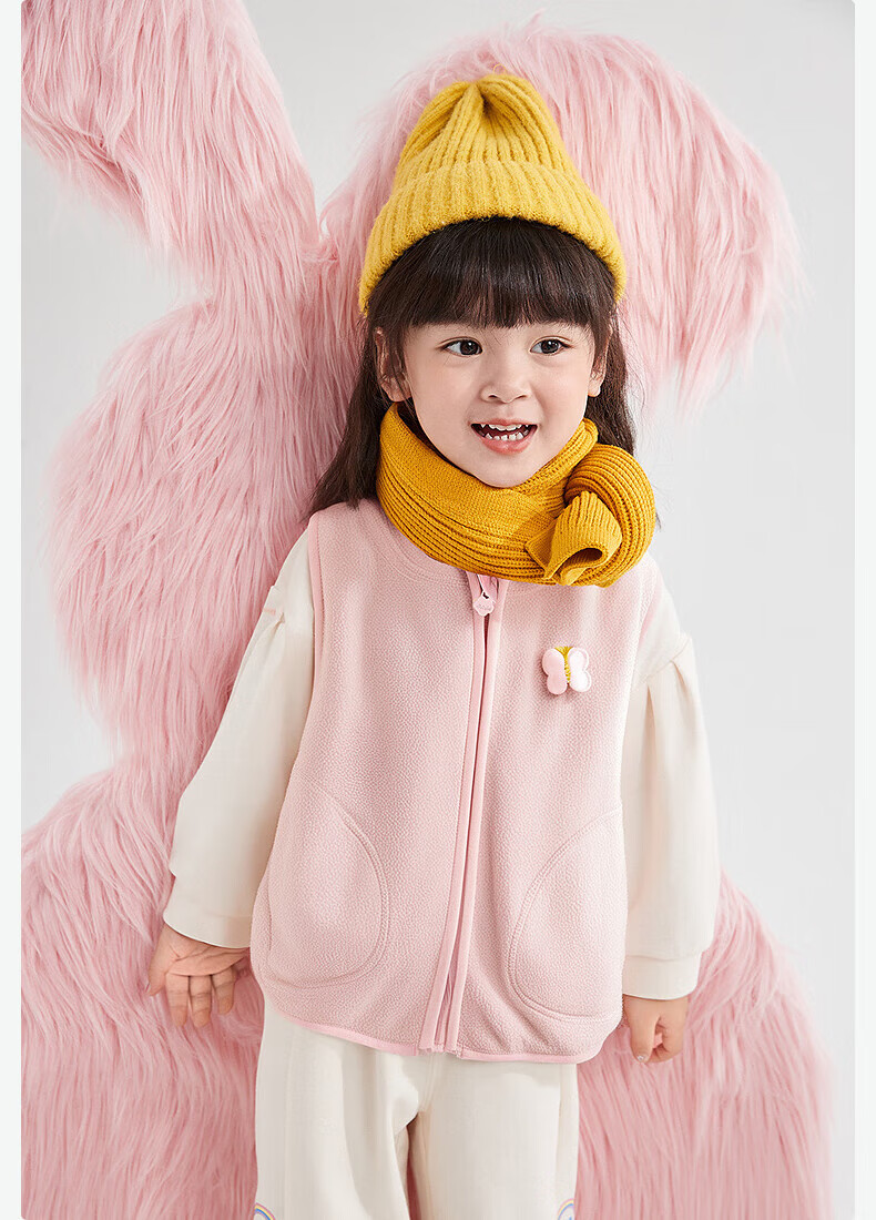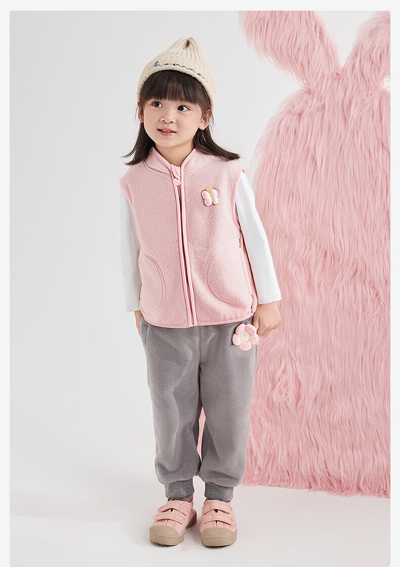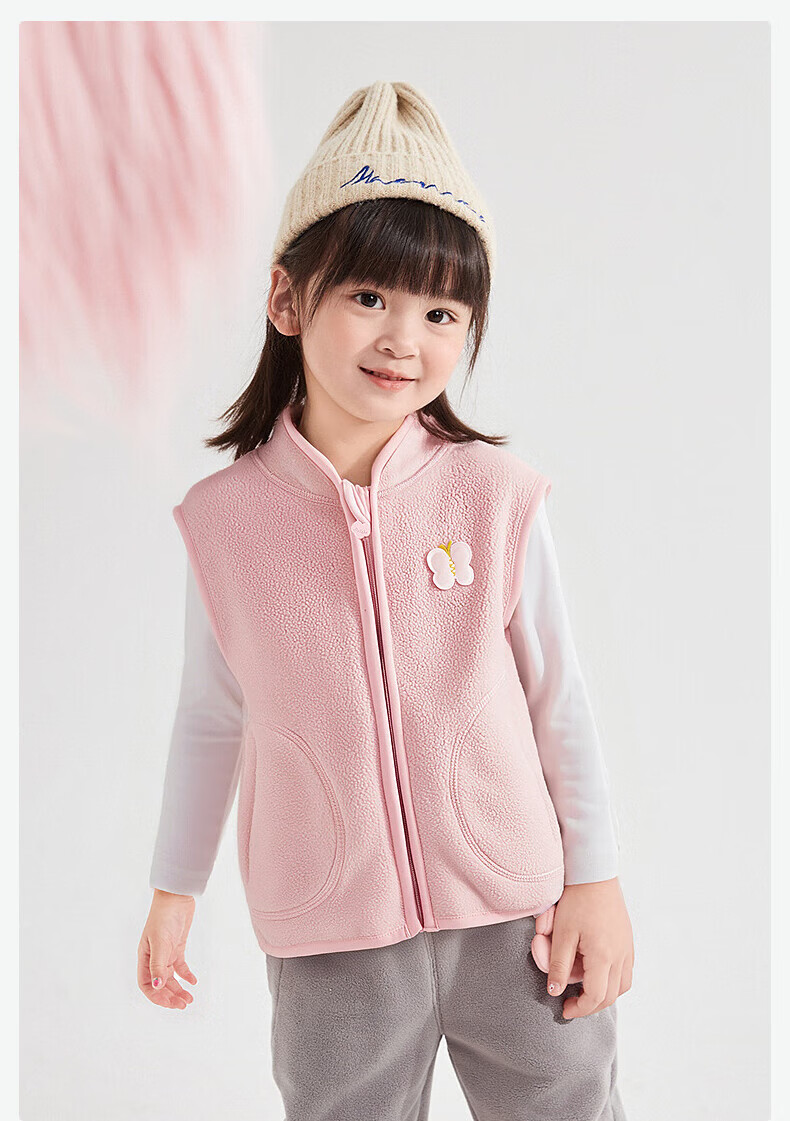 Disha Children's Clothing Girls Vest 2025 Autumn and Winter Children's Polar Fleece Jacket Baby Vest Pink 130