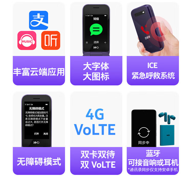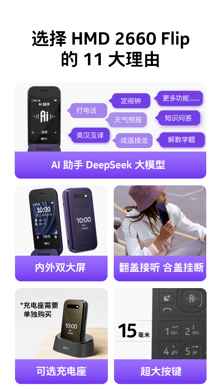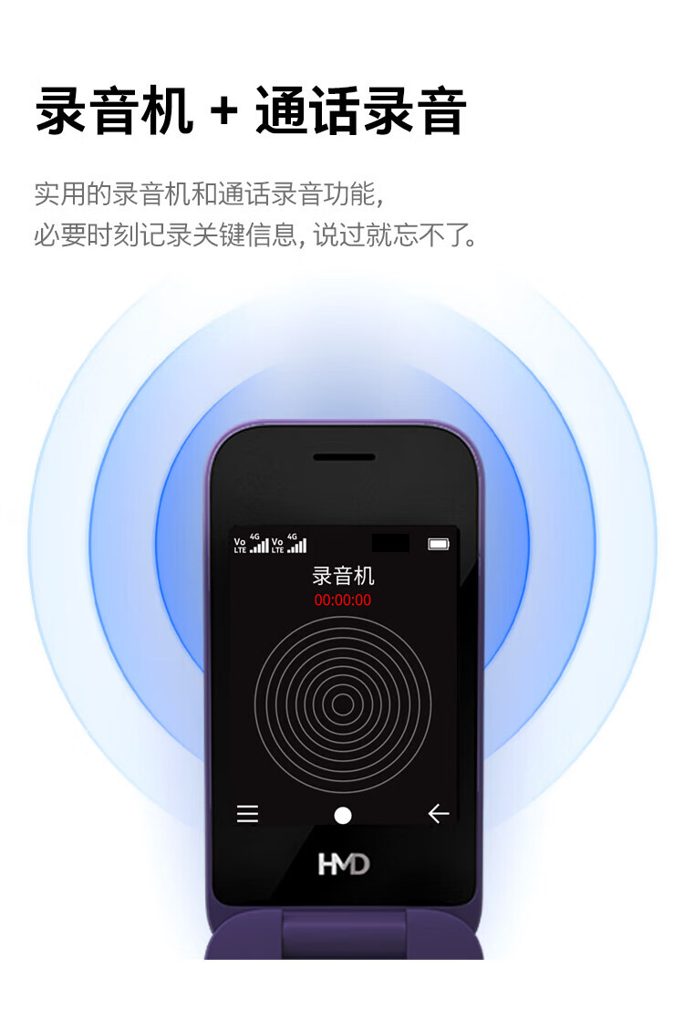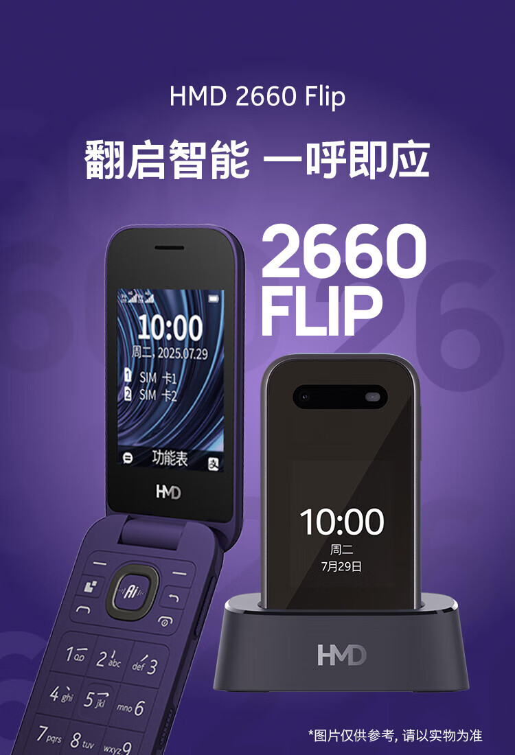 HMD2660 Flip 4G Full Netcom Promise Kia Classic Dual SIM Dual Standby Flip Big Button Big Font Spare Elderly Elderly Student AI Mobile Phone Purple