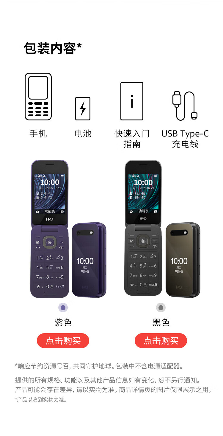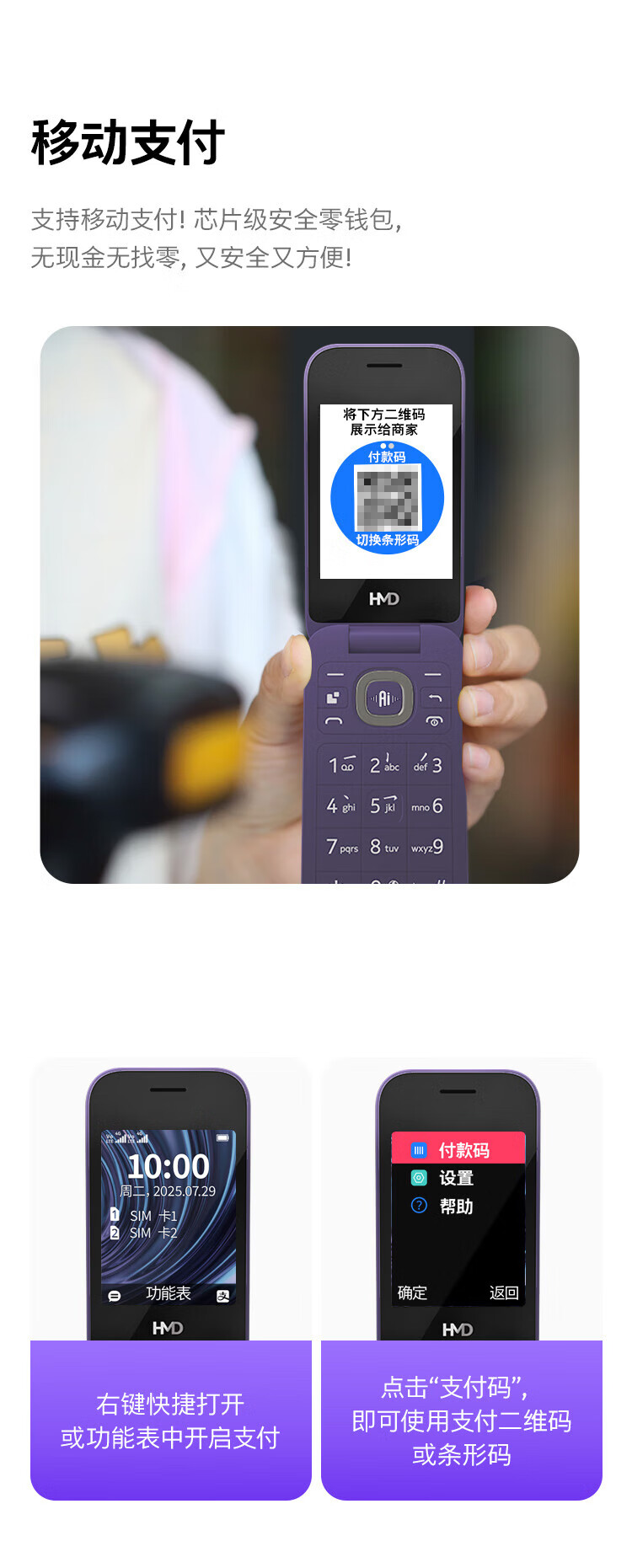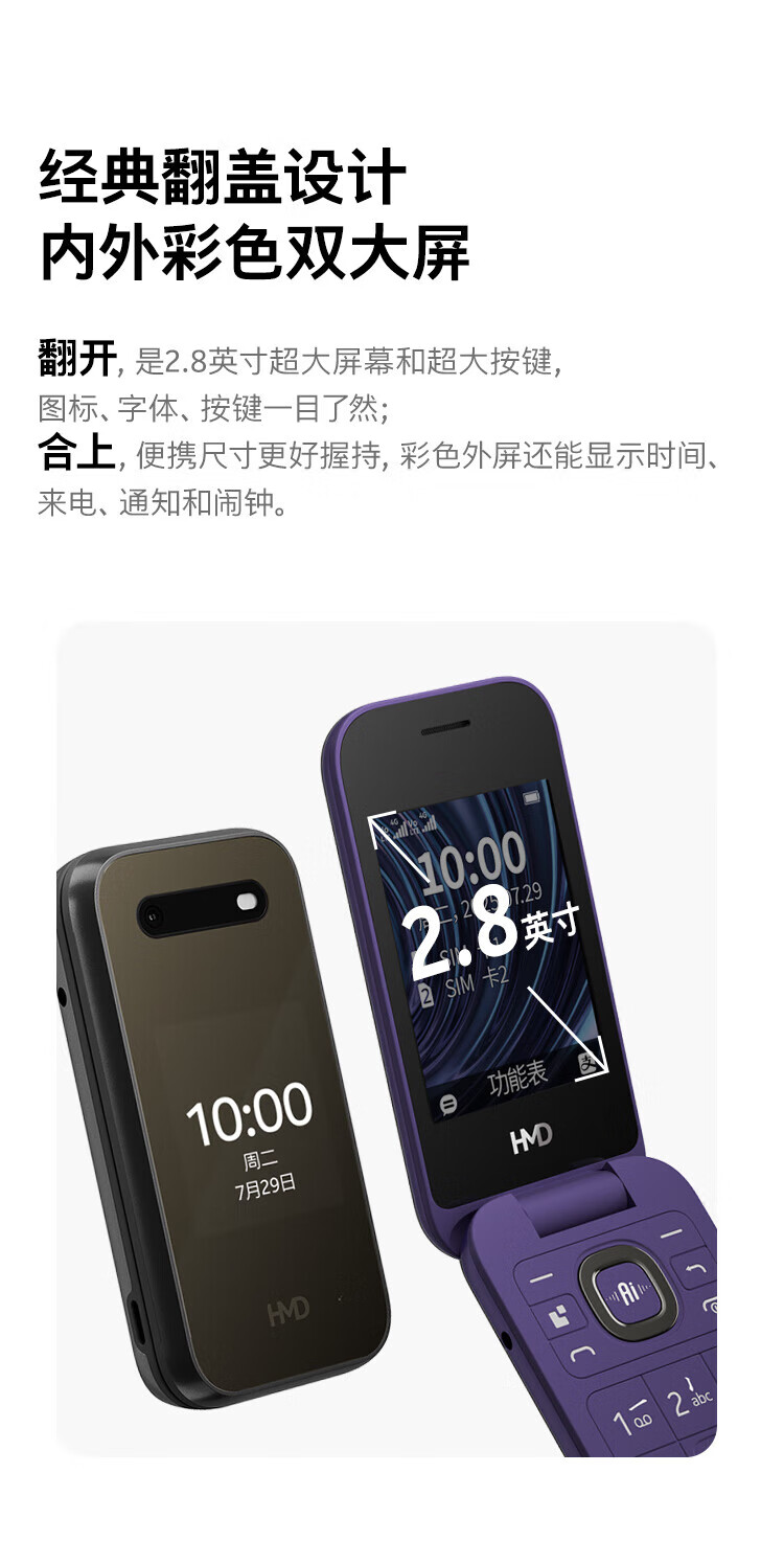 HMD2660 Flip 4G Full Netcom Promise Kia Classic Dual SIM Dual Standby Flip Big Button Big Font Spare Elderly Elderly Student AI Mobile Phone Purple