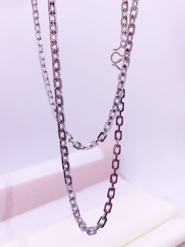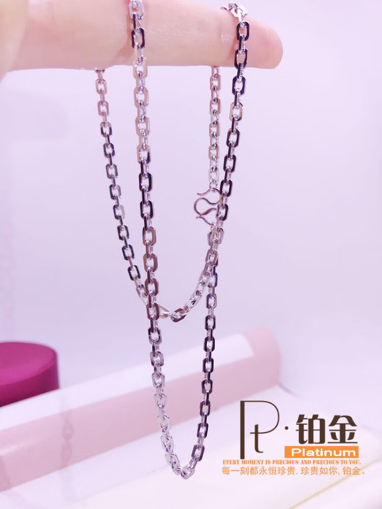 Heye Jewelry High-end Platinum PT950 Men's Necklace Men's Platinum Small Square Card Cross Necklace Couple Model Gold Weight 21.35 Grams Length 50cm Approximately 2.9mm Width