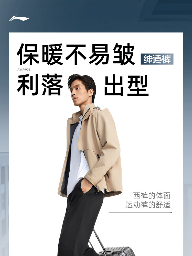 Li Ning plus velvet warm tapered pants commuter pants men's 25 autumn and winter straight fashion versatile sports pants AYKV901