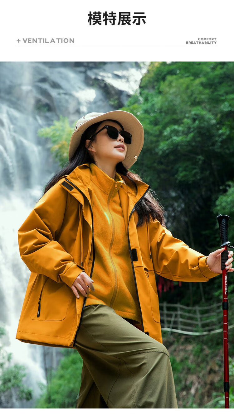 JEEP SPIRIT Jeep Jacket Men's and Women's Jacket Rose's Story Liu Yifei's Same Style Three-in-One Jacket Sunflower M