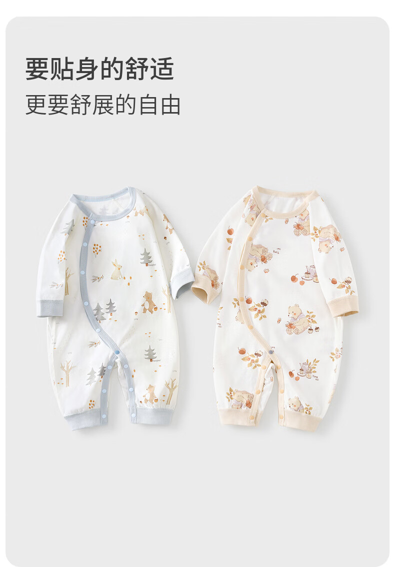 Tongtai (TONGTAI) baby jumpsuit spring and autumn pure cotton baby clothes newborn side-opening romper pajamas blue 73cm