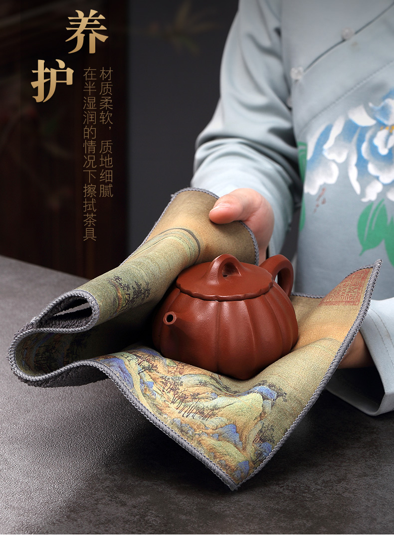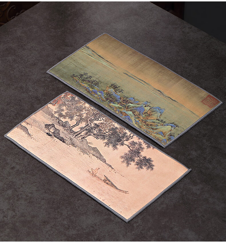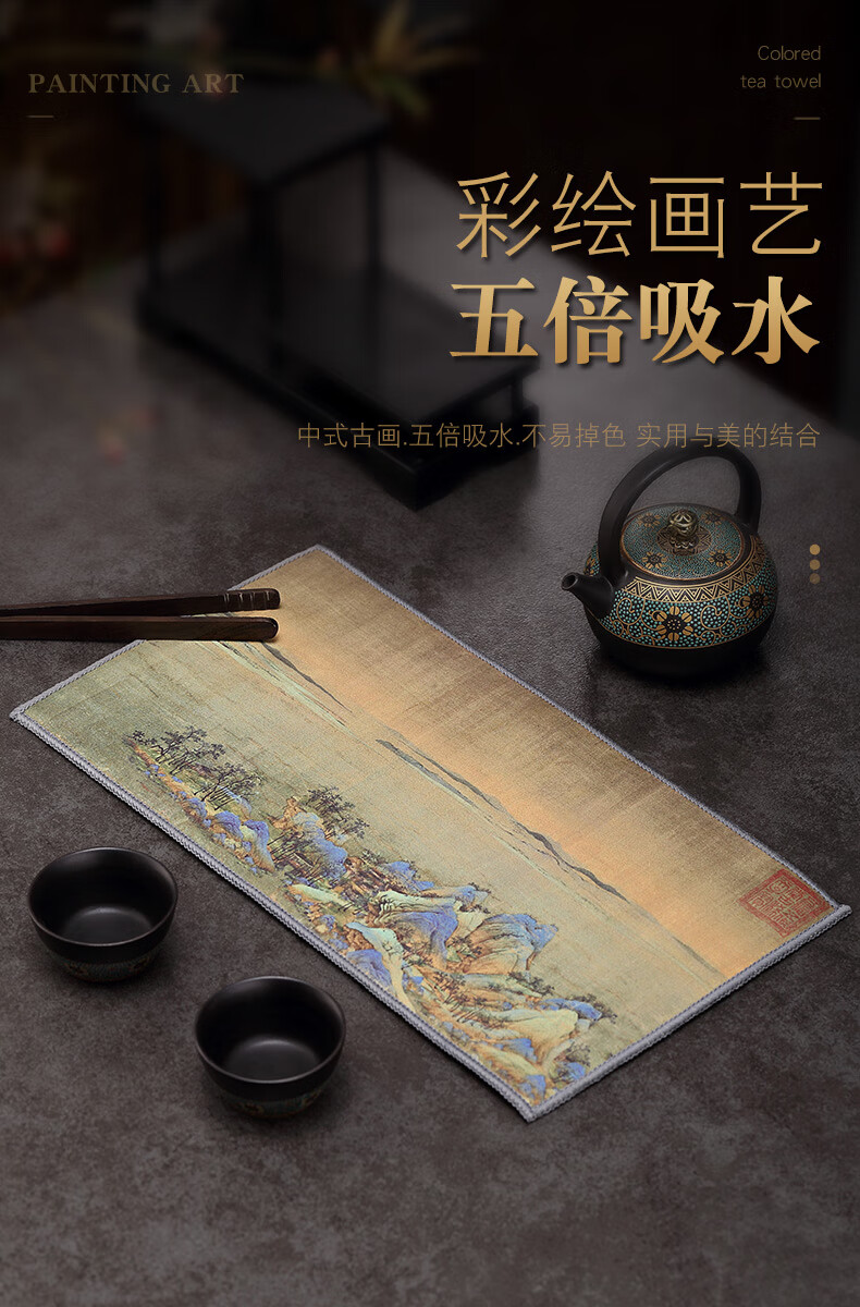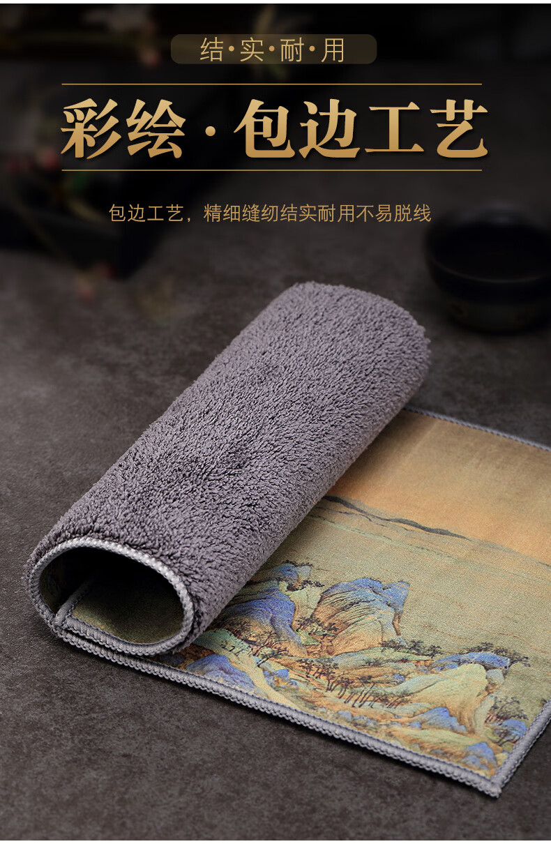 Jiutang painted tea towel cloth absorbent high-end cotton and linen tea table mat tea tray rag towel tea set accessories raising pot towel Zen (Qianli Jiangshan) painted art tea towel