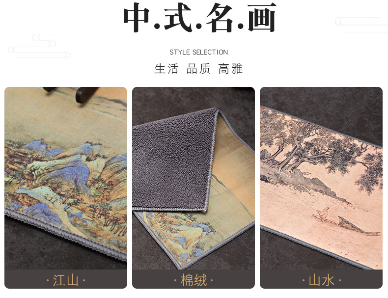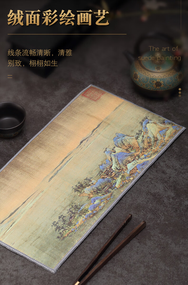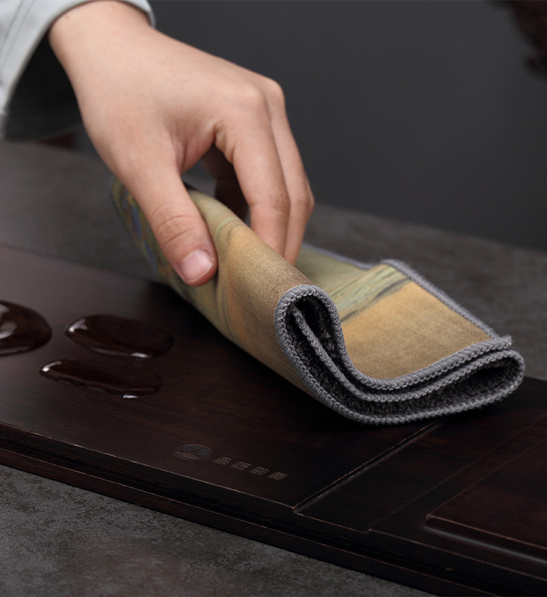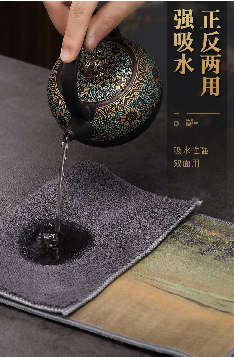 Jiutang painted tea towel cloth absorbent high-end cotton and linen tea table mat tea tray rag towel tea set accessories raising pot towel Zen (Qianli Jiangshan) painted art tea towel