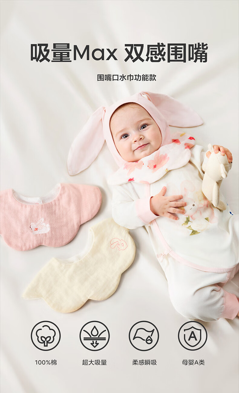 Babycare baby pure cotton saliva towel petal bib newborn baby saliva bib cloud puppy 3 pack 28*28cm