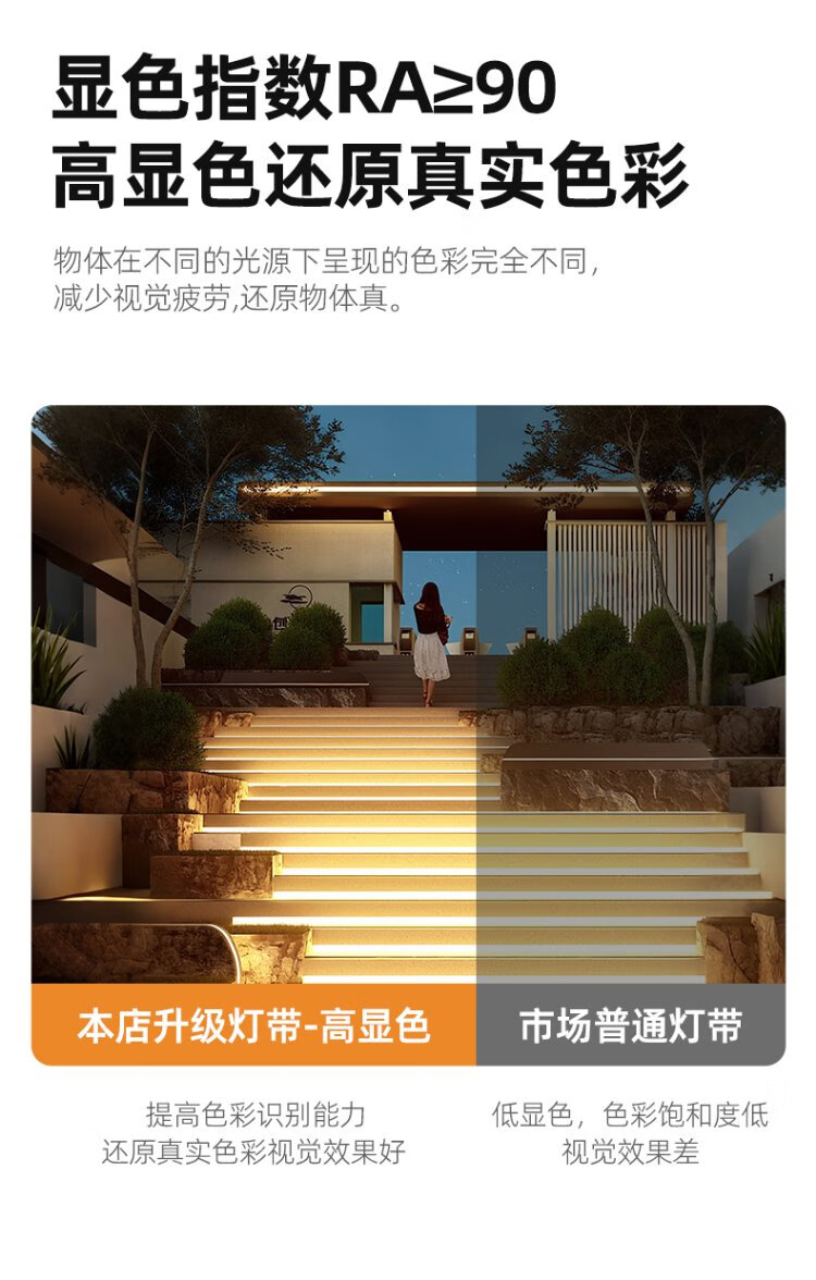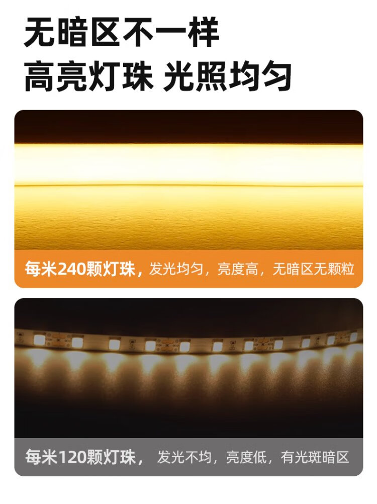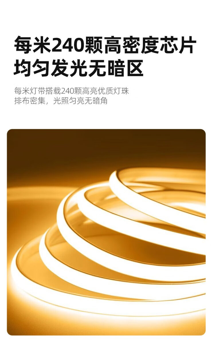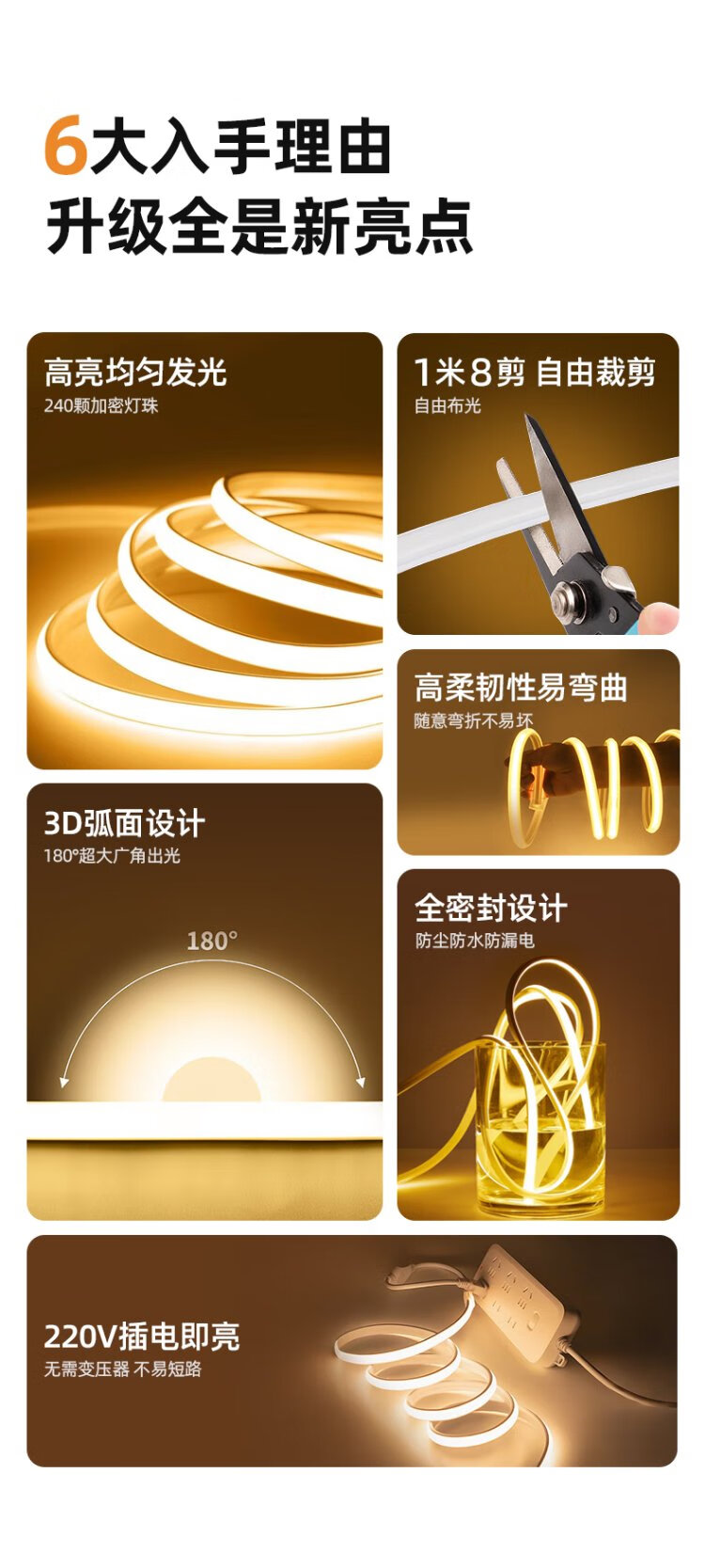 Deyan Super Bright 220V High Voltage COB Silicone Waterproof Light Strip with Adhesive Self-adhesive Indoor and Outdoor Lighting Engineering LED Linear Light Strip 10 Meters-White Light