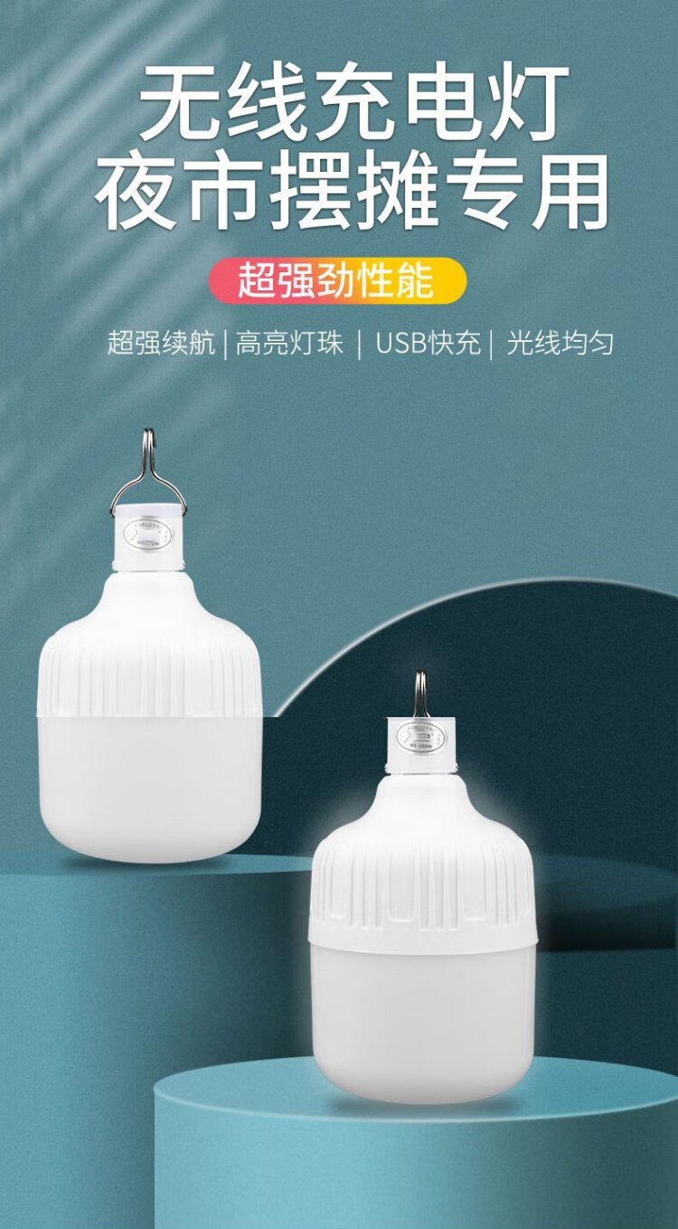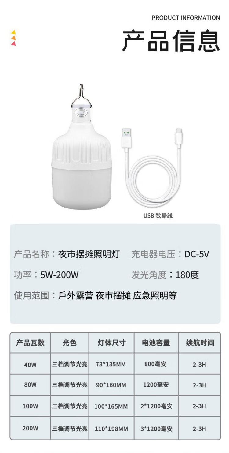 JINGGONG Rechargeable Emergency Lighting LED Bulb Wiring-Free Ultra-Long Life Mobile Outdoor Night Market Power Outage Camping Light 200W White Light