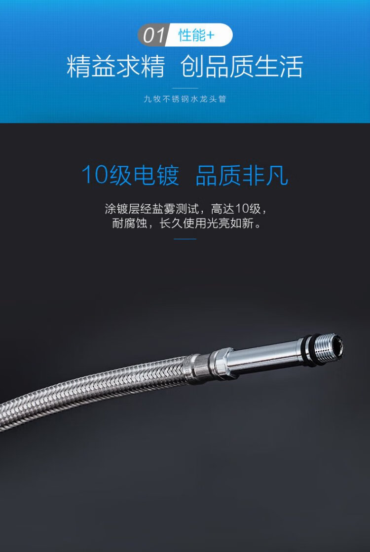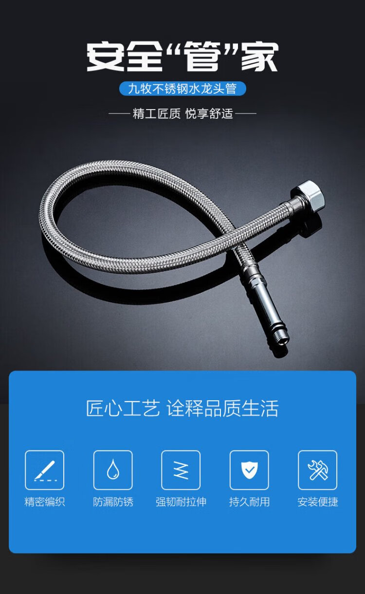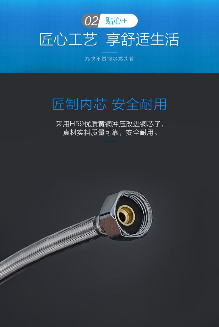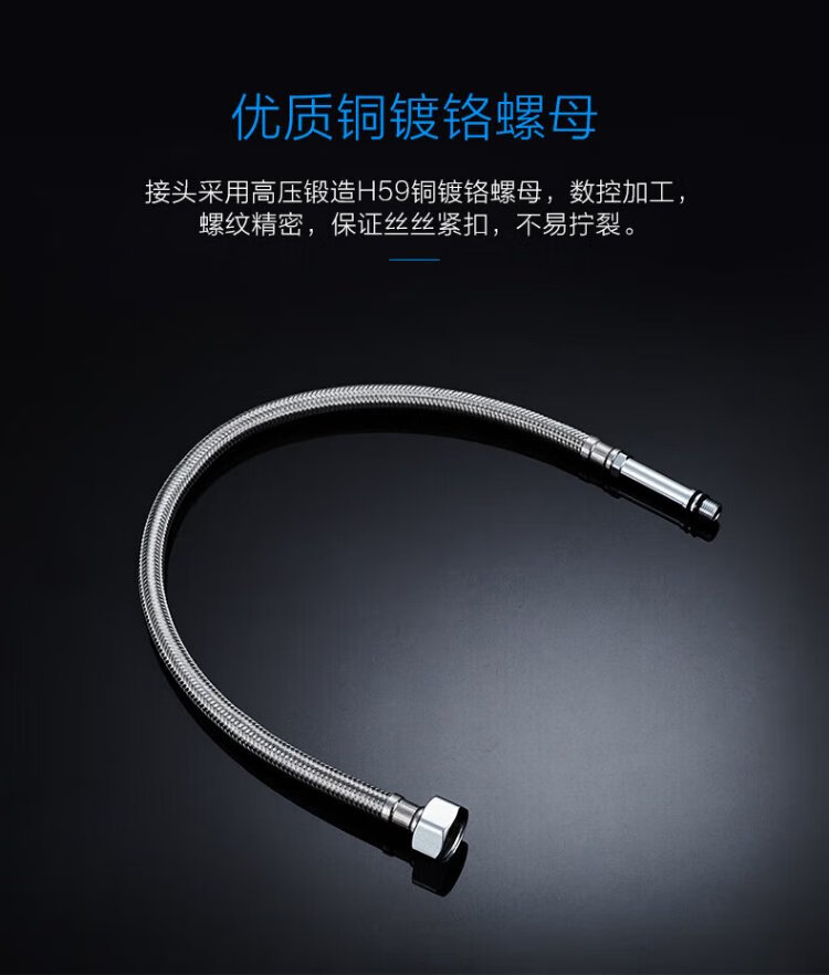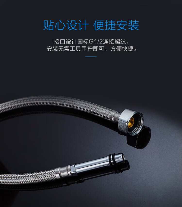 JOMOO stainless steel hose 4-point interface heat-resistant, explosion-proof, leak-proof, rust-proof, strong, stretch-resistant H52AG (80CM) H52AG-080101C-2