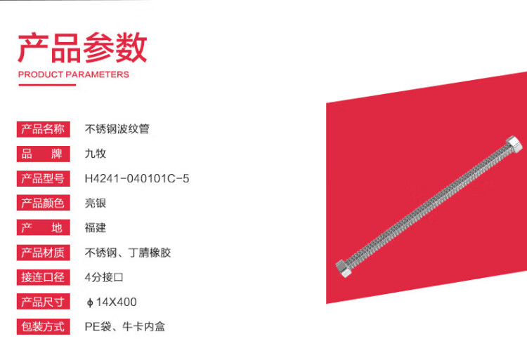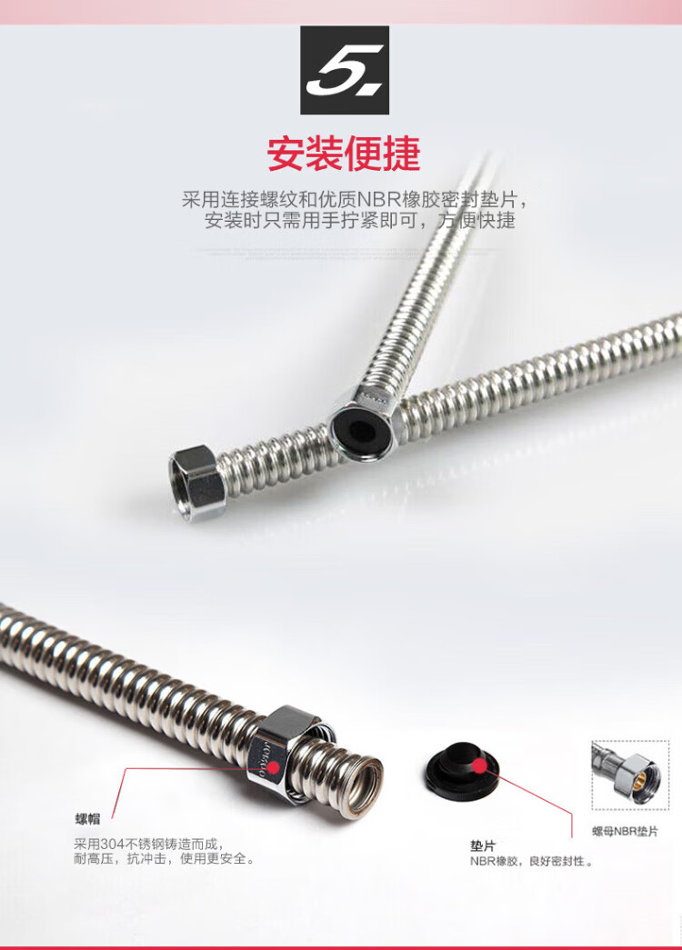 JOMOO stainless steel hose 4-point interface heat-resistant, explosion-proof, tensile and bending 40CM H4241-040101C-5