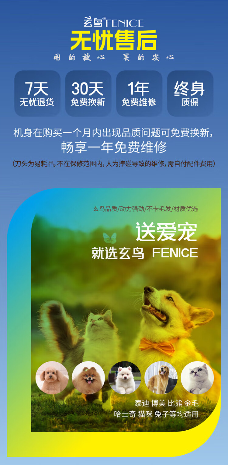Xuanniao pet shaver, special electric hair clipper, hair-retaining shaver, professional dog and cat grooming and barbering, high-power bass