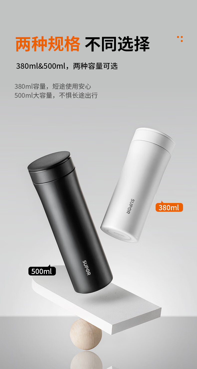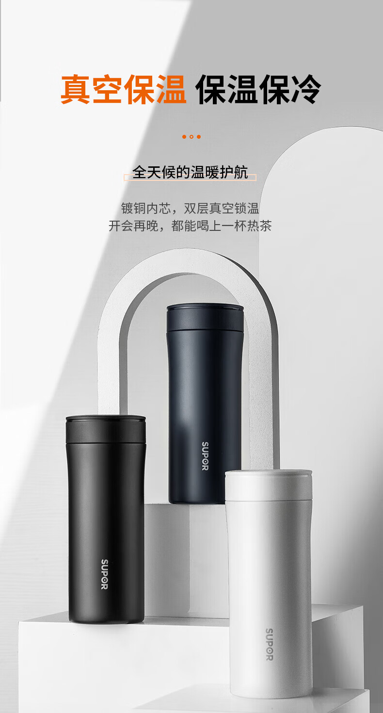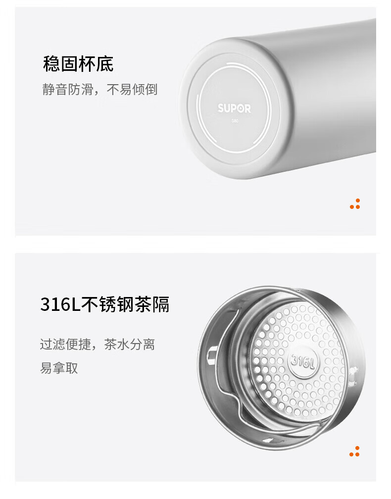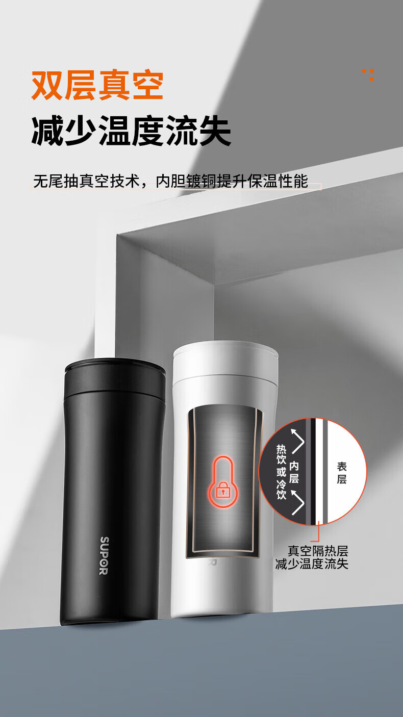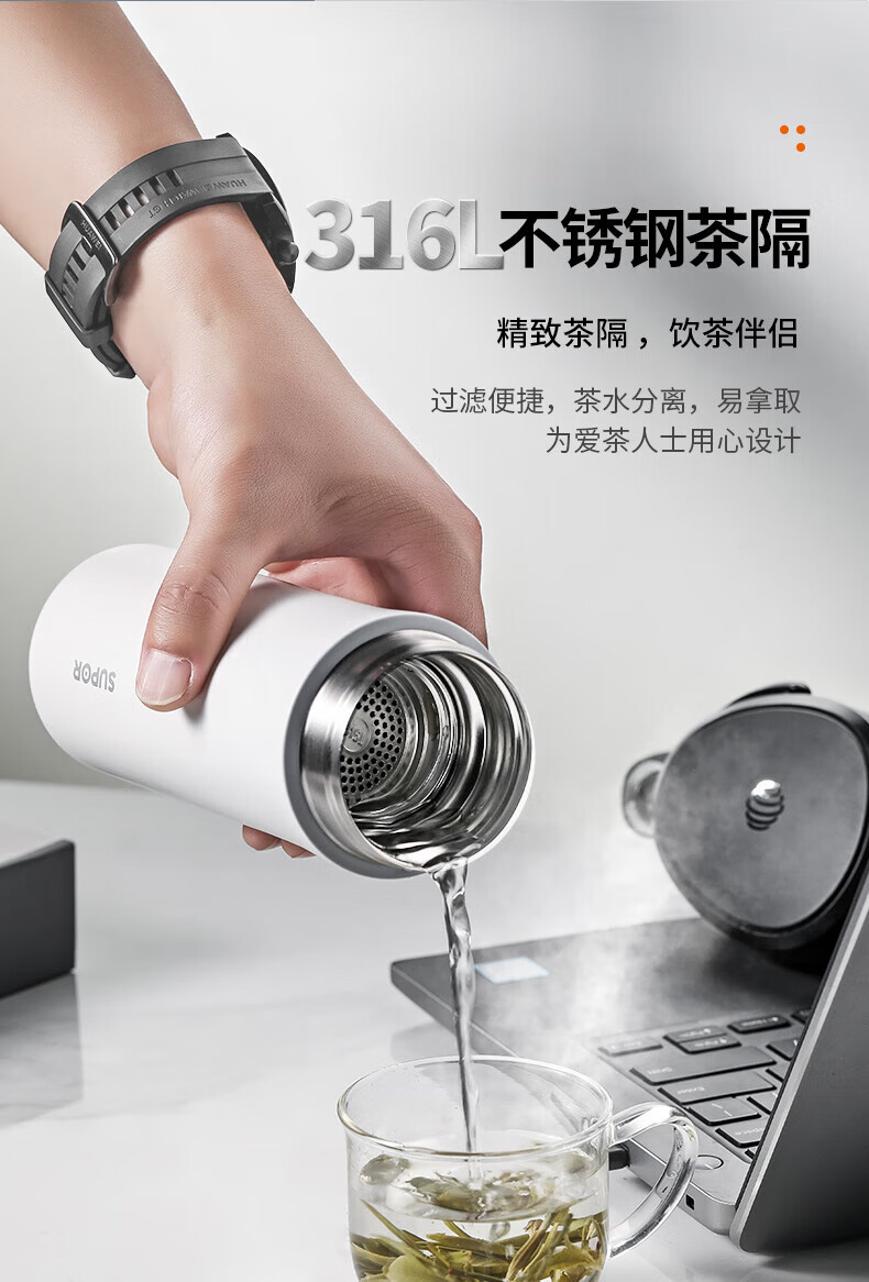 SUPOR thermos cup 316L stainless steel men's and women's vacuum water cup tea water separation business car tea cup