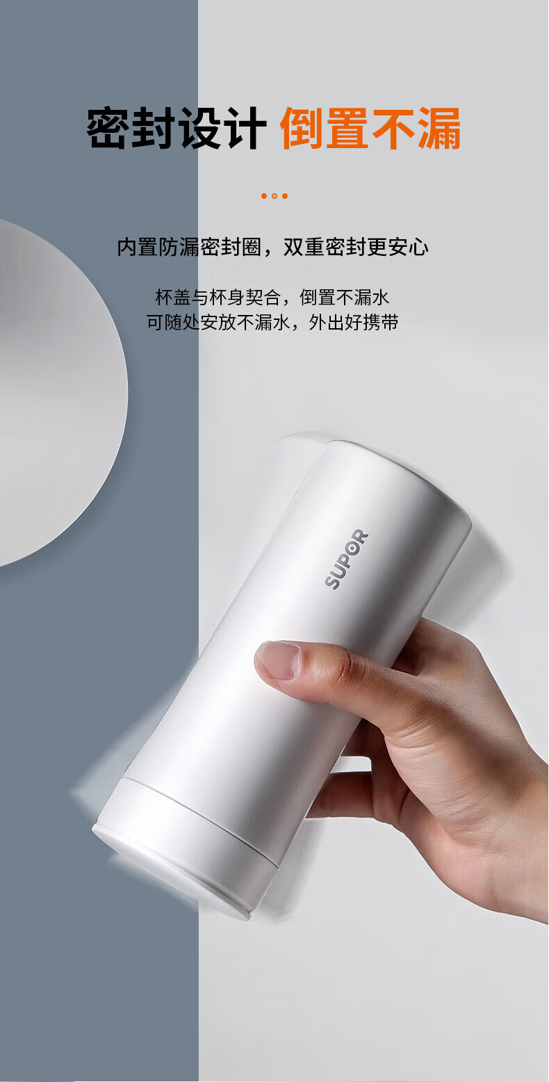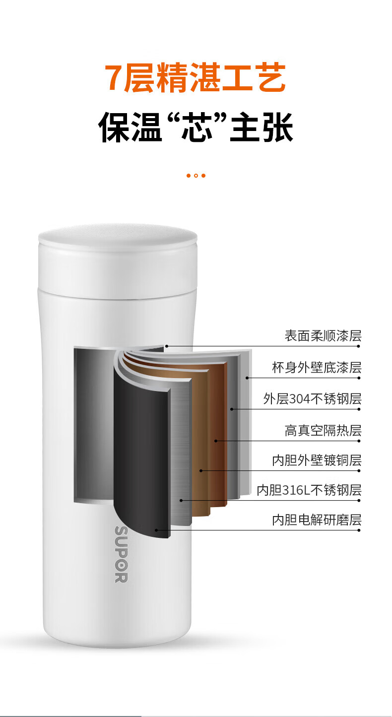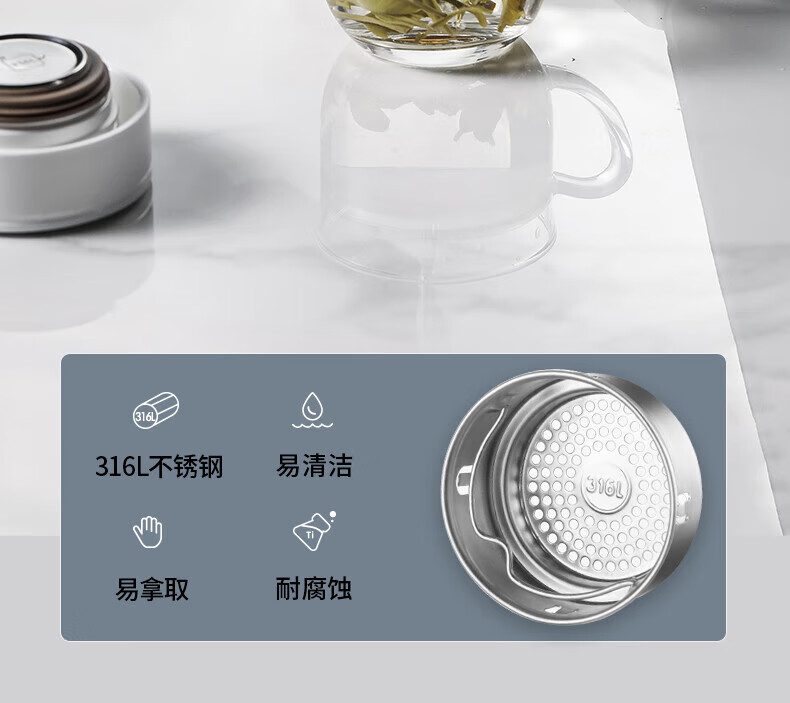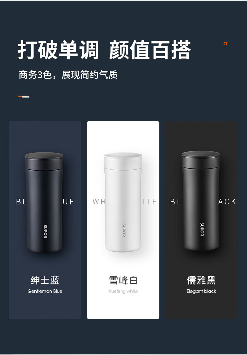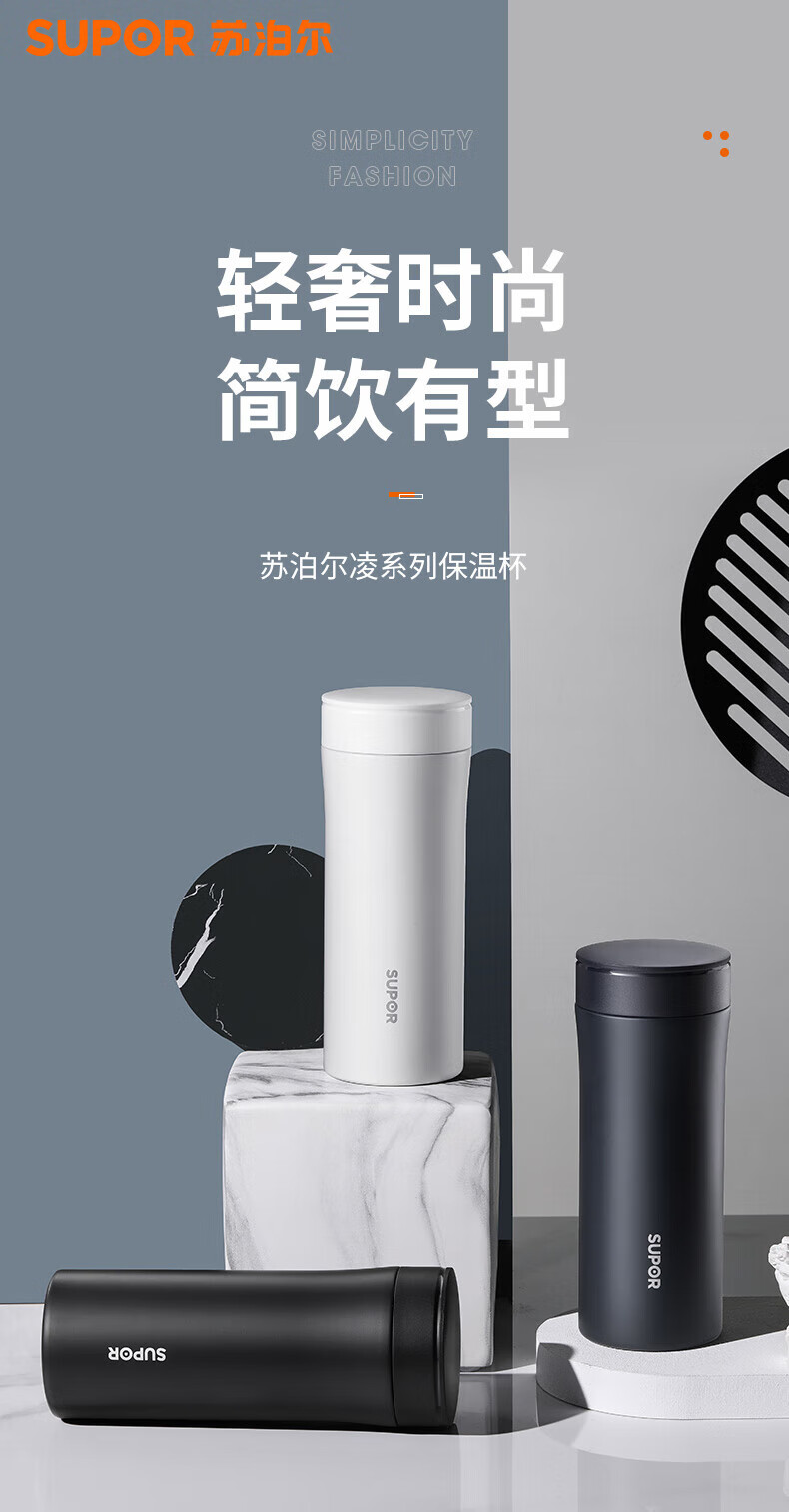 SUPOR thermos cup 316L stainless steel men's and women's vacuum water cup tea water separation business car tea cup