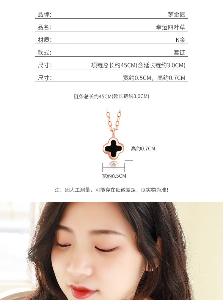 Mengjinyuan 18K gold necklace, gold 750 four-leaf clover clavicle chain for women, birthday gift for girlfriend, 45cm, about 0.58g