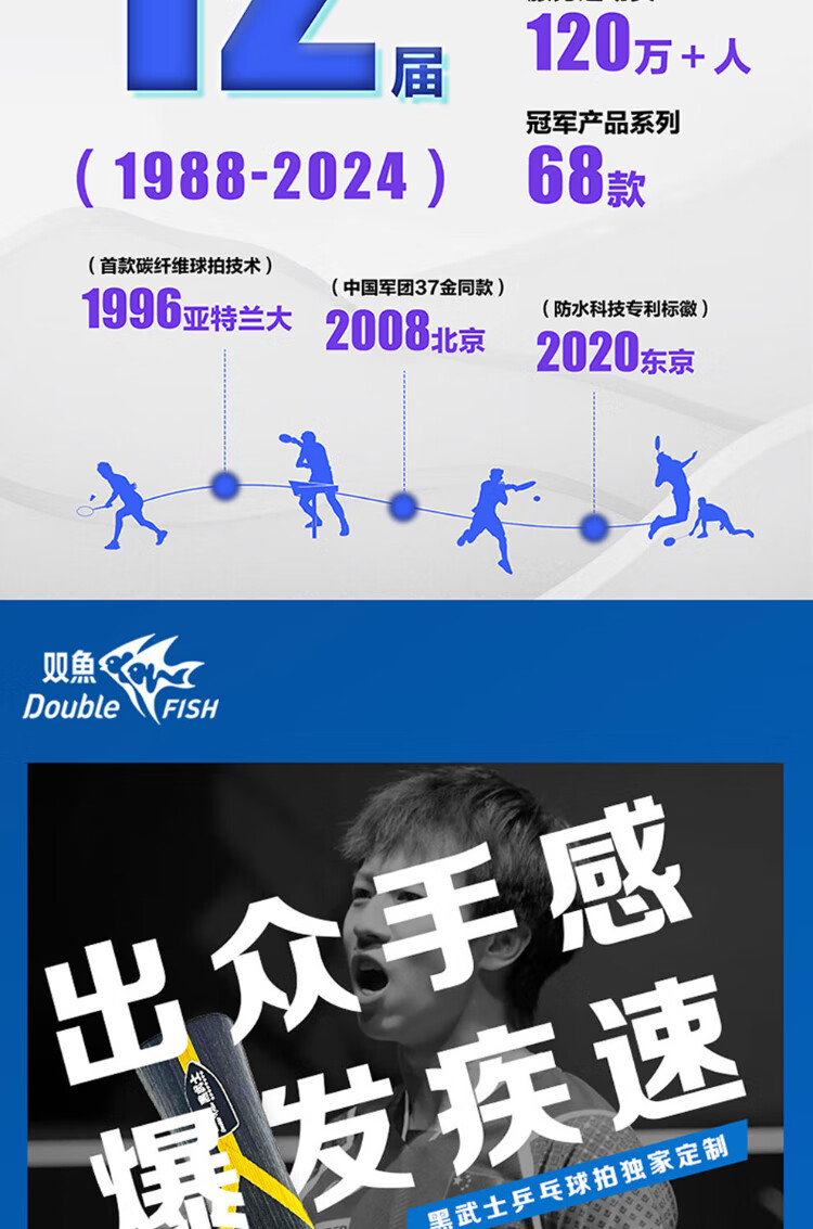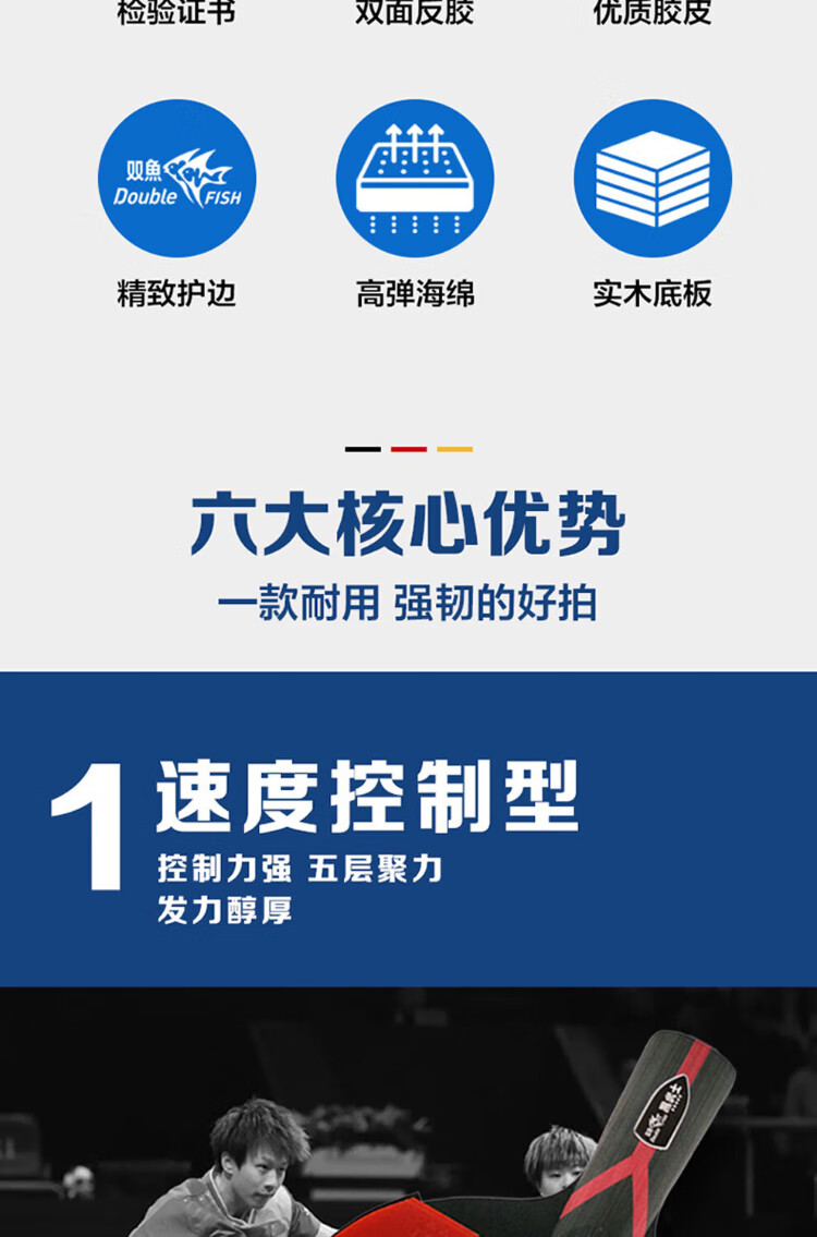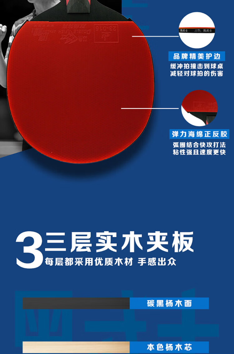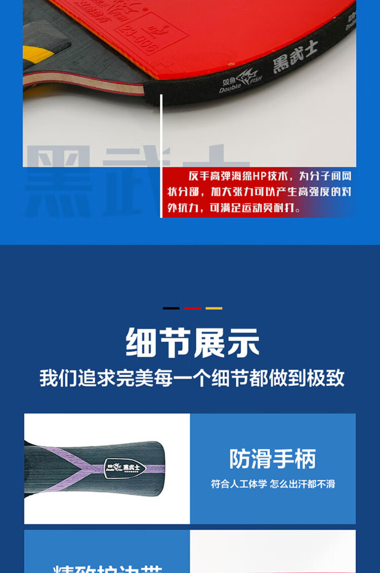 Pisces (DOUBLE FISH) table tennis racket Black Warrior 5-star competition-level single racket professional-level horizontal pen-hold racket beginner racket 5-star horizontal racket