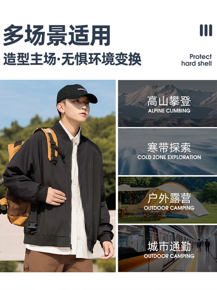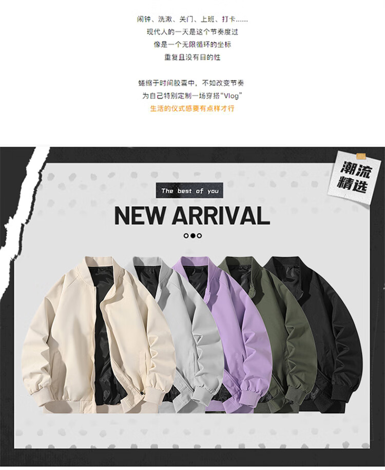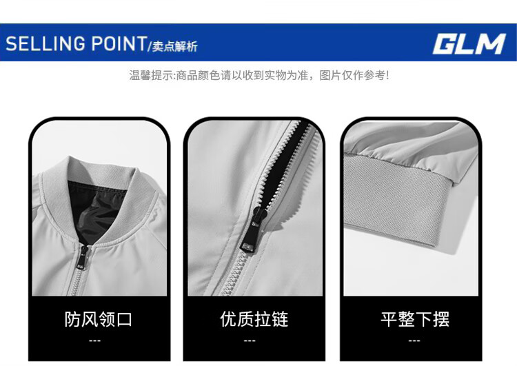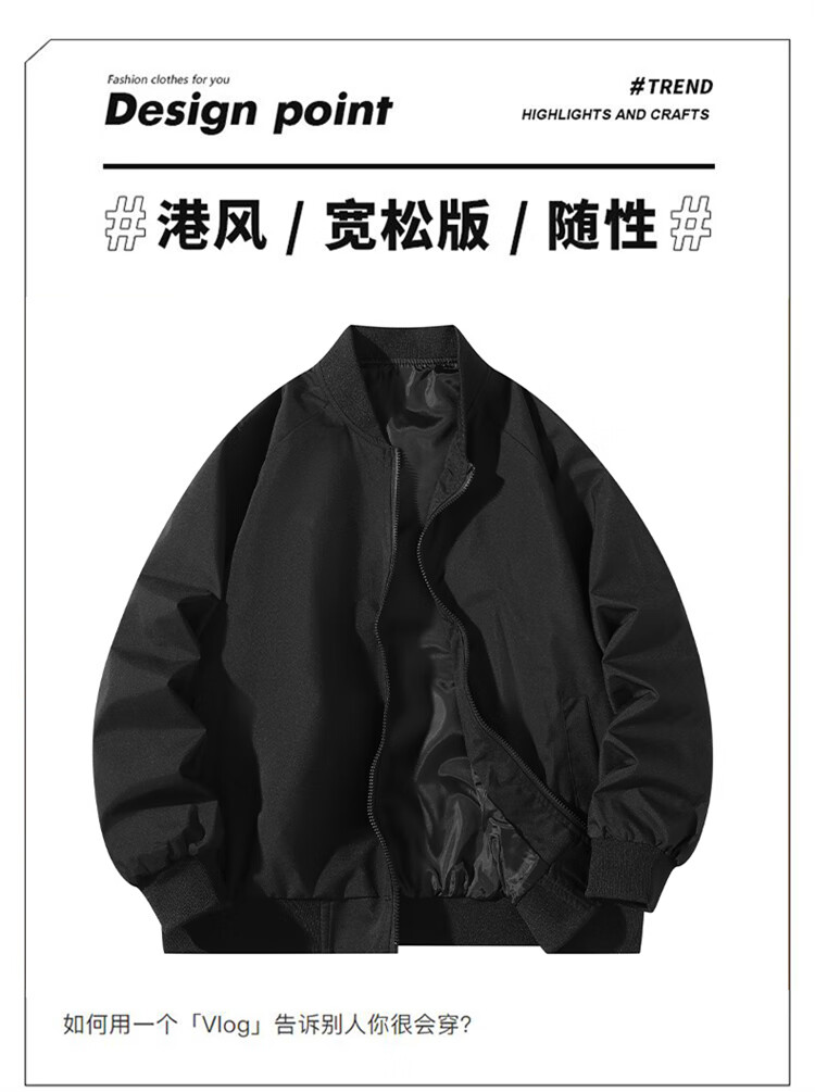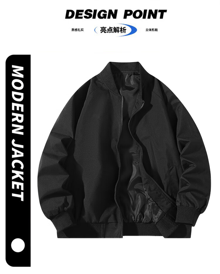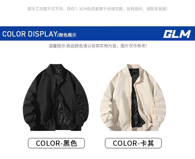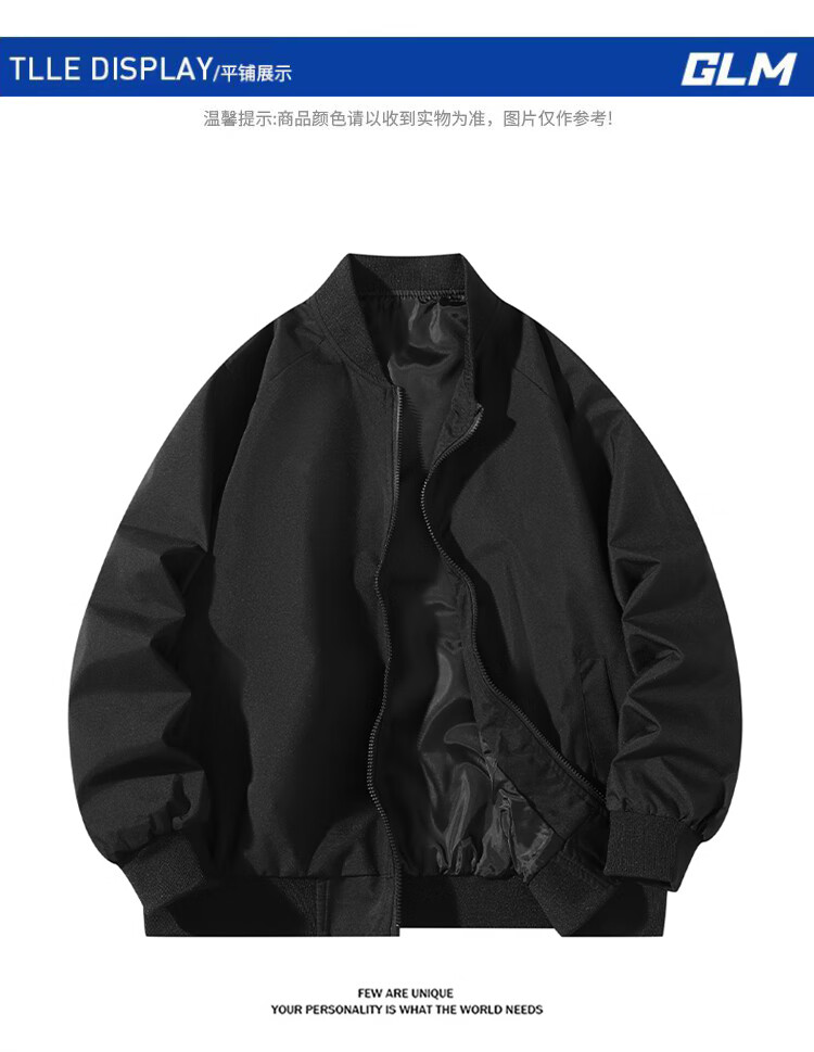 GLM jacket men's spring and autumn loose jacket men's casual simple baseball uniform men's comfortable versatile top black 3XL