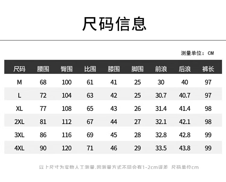Outseam (cm) 99 cm 101.5 cm 104 cm 106.5 cm 109 cm