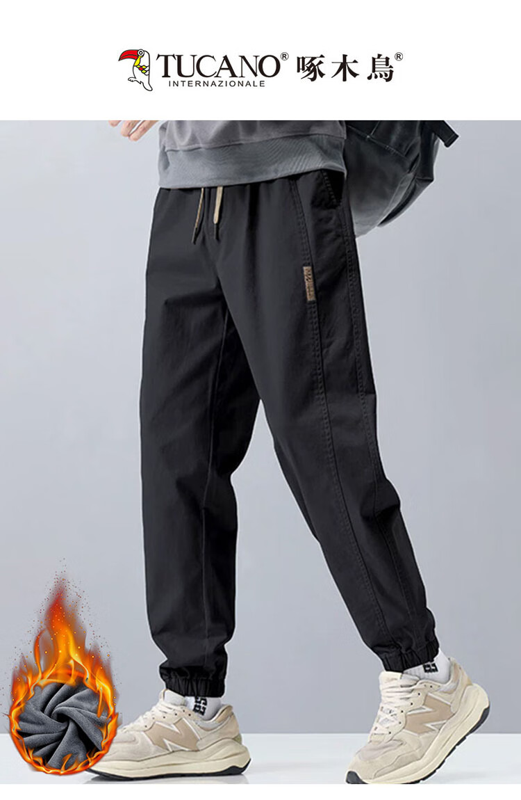 Woodpecker (TUCANO) Pants Men's Autumn and Winter Leggings Casual Pants Men's Loose Sports Pants Trendy Versatile Workwear Men's Pants Black XL