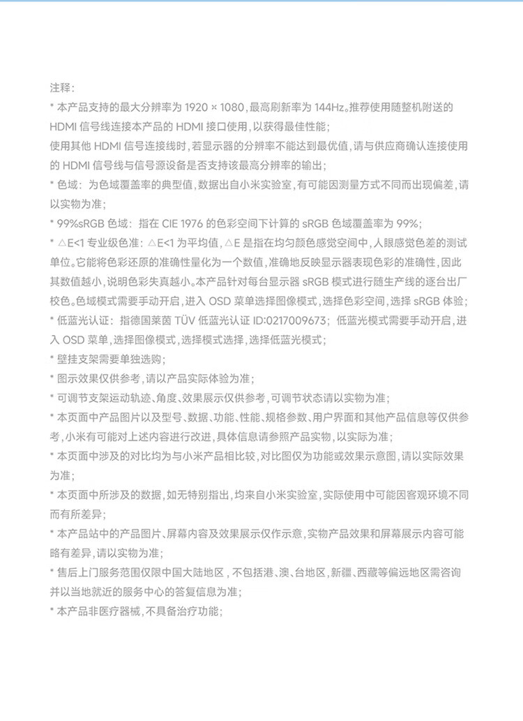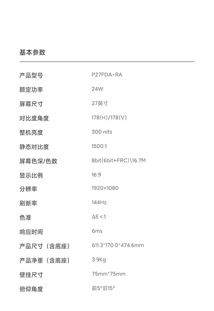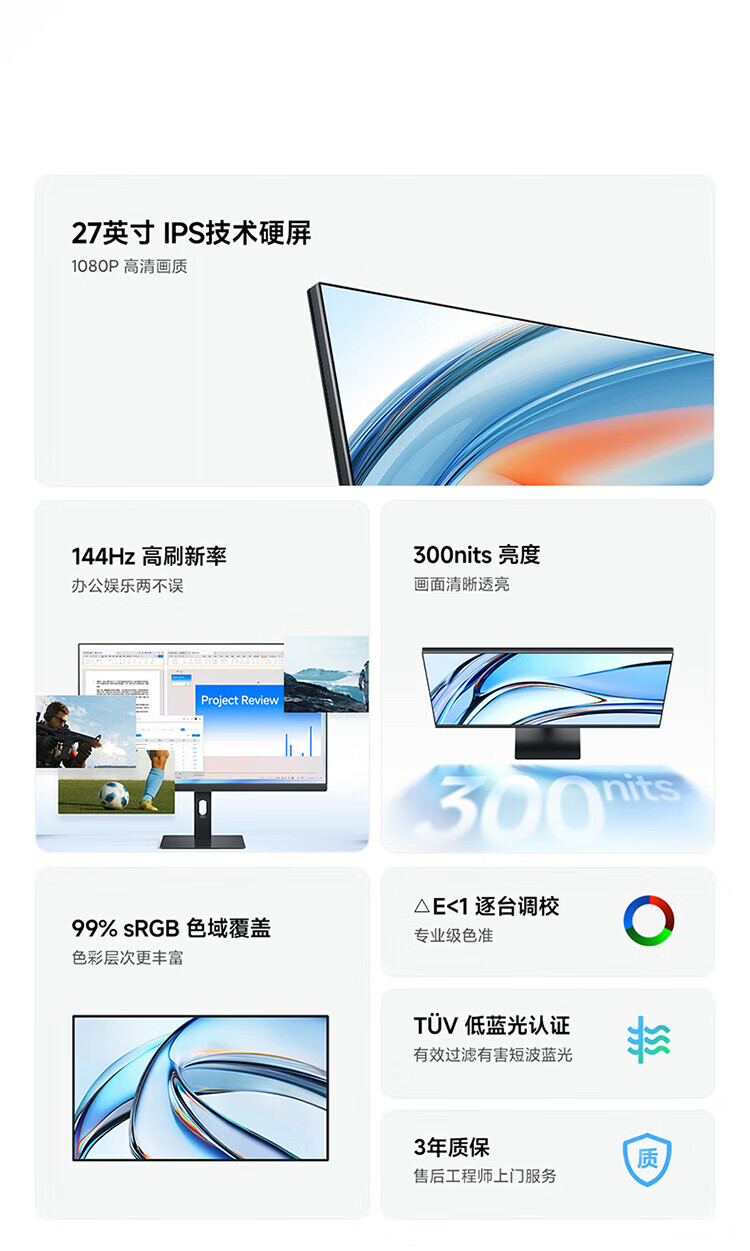 Xiaomi (MI) REDMI 27-inch monitor 144Hz 300nits brightness professional-grade color accuracy low blue light eye-friendly gaming computer office monitor screen A27 2026 model