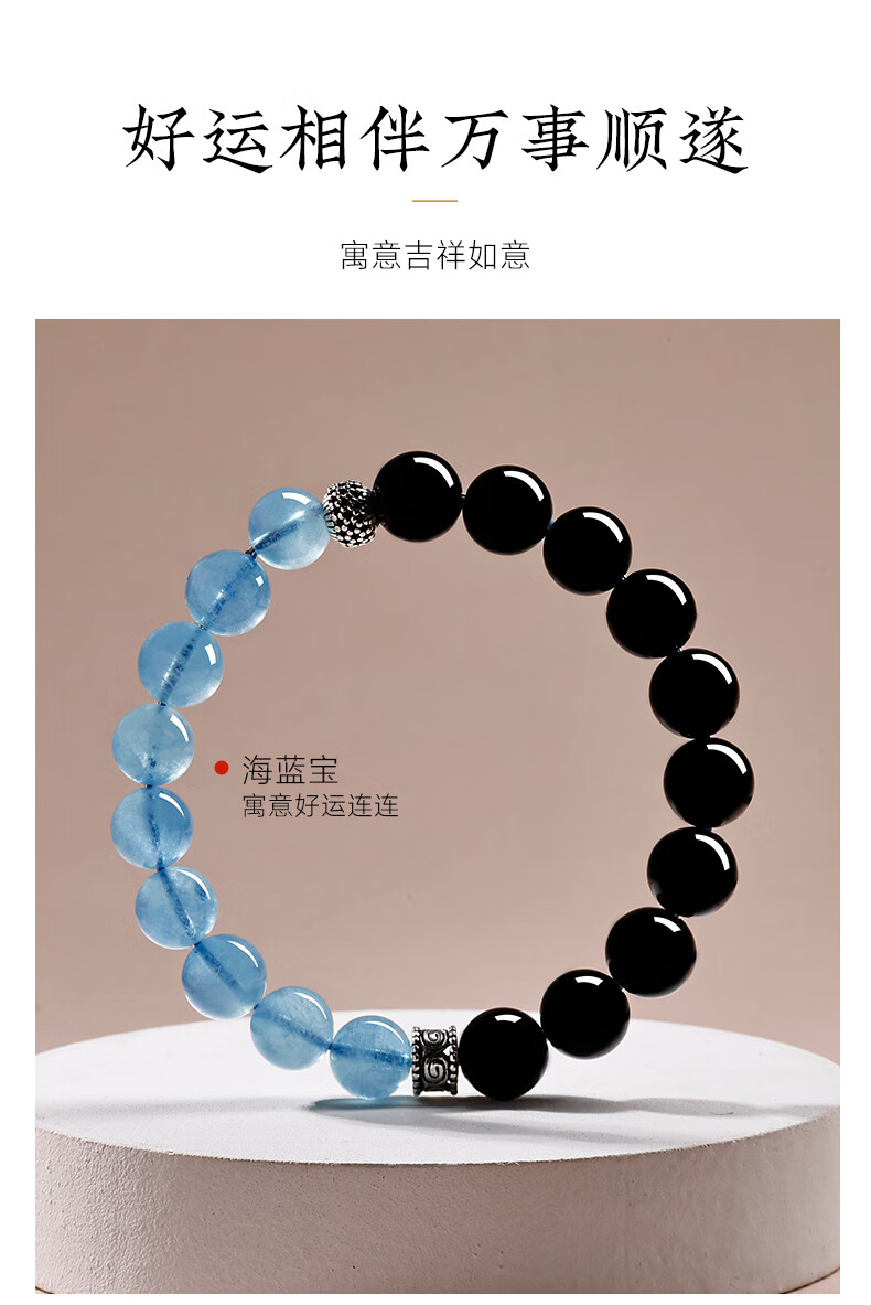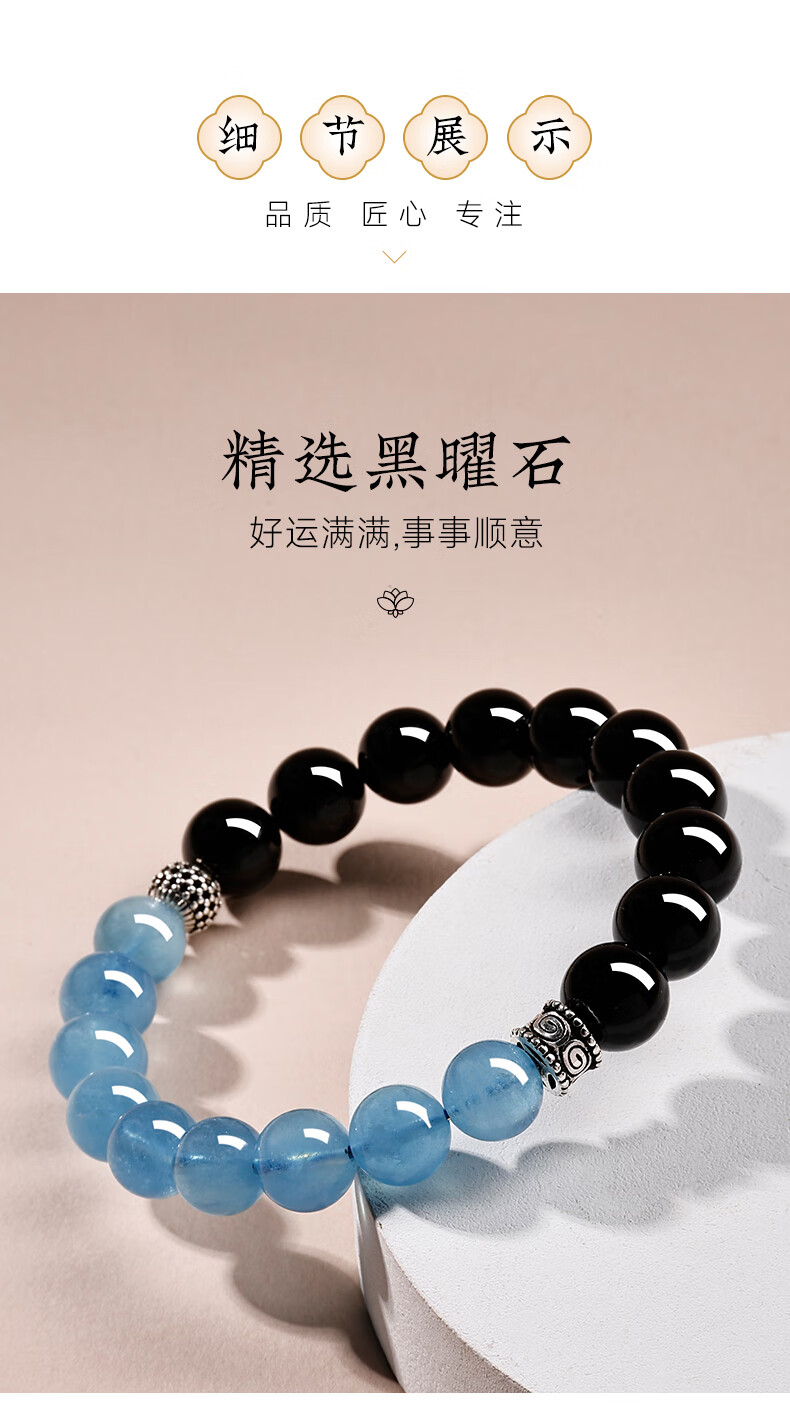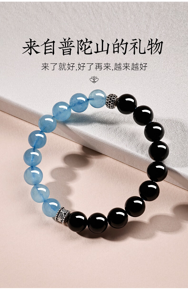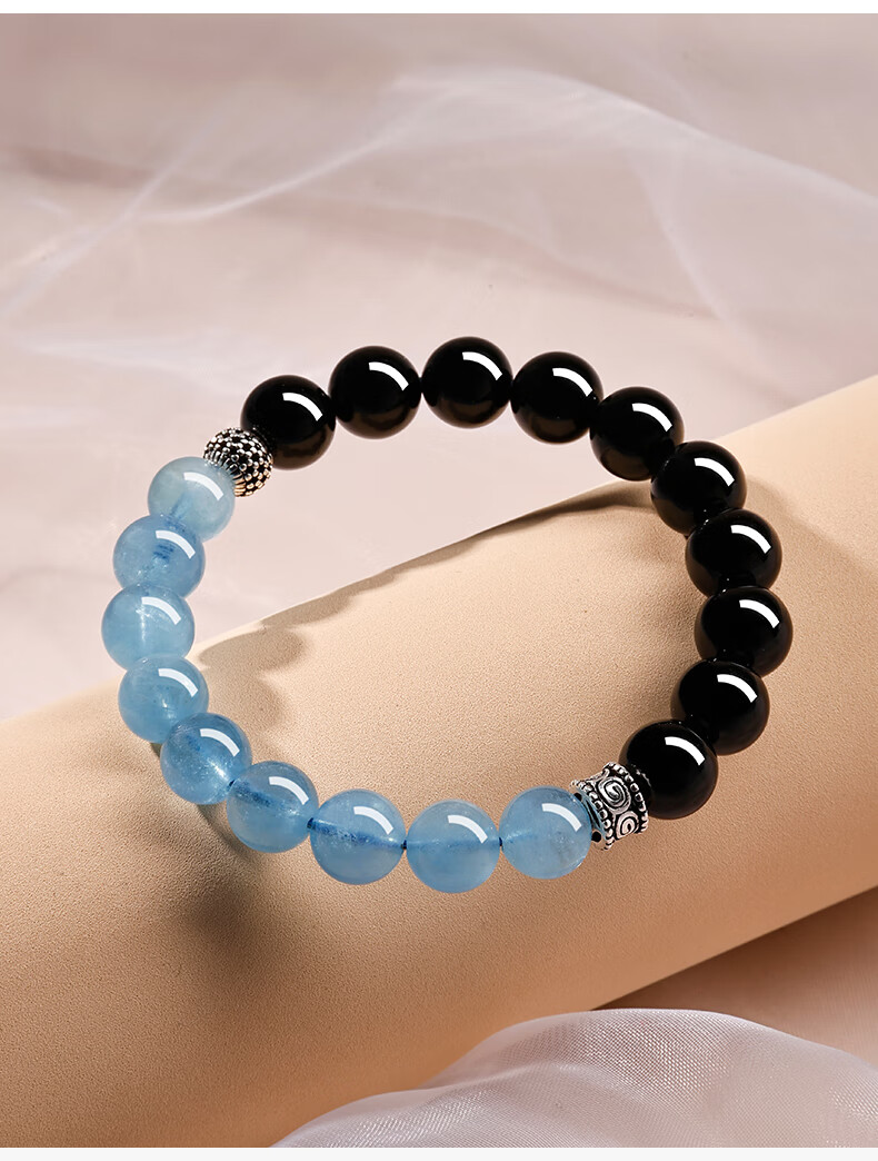 Putuo Mountain Obsidian Aquamarine Bracelet Crystal Bracelet Transfer Beads as Birthday Gifts for Friends and Couples