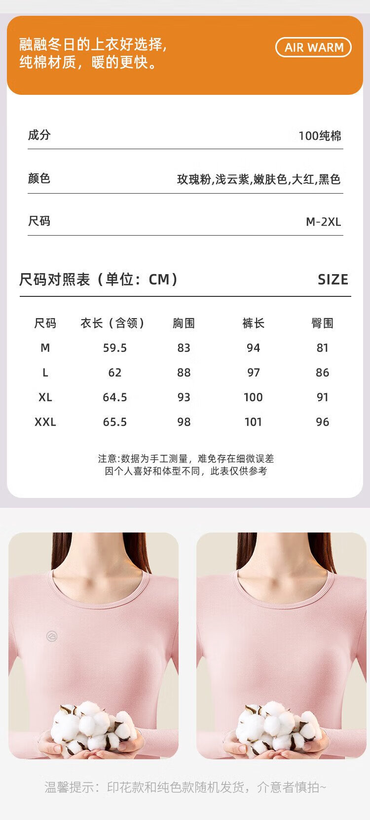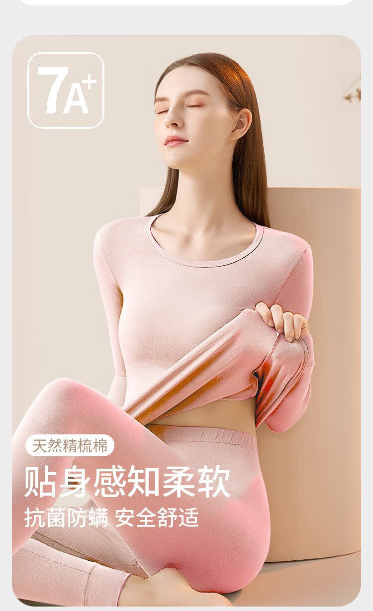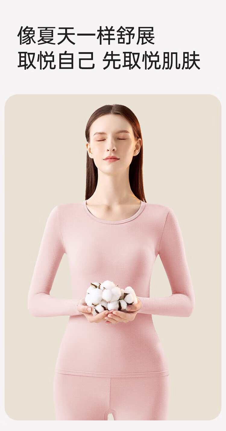 Urban Beauty 100% Cotton Thermal Underwear Women's Pure Cotton Autumn Clothes Autumn Pants Women's Antibacterial Round Neck Thin Bottoming Warm Suit
