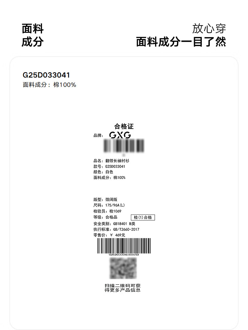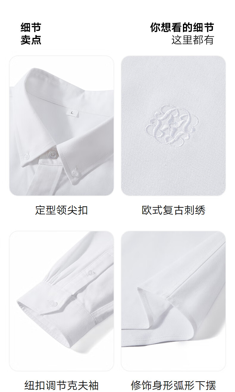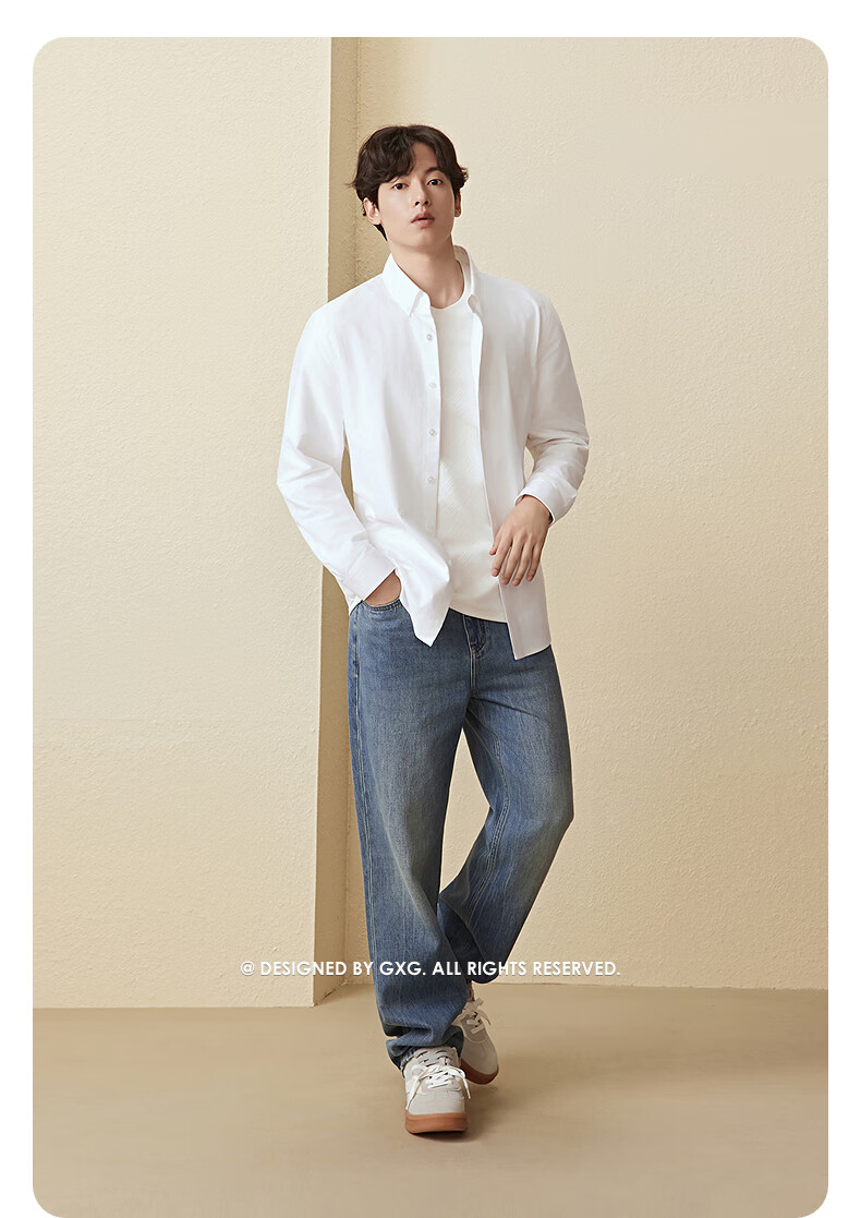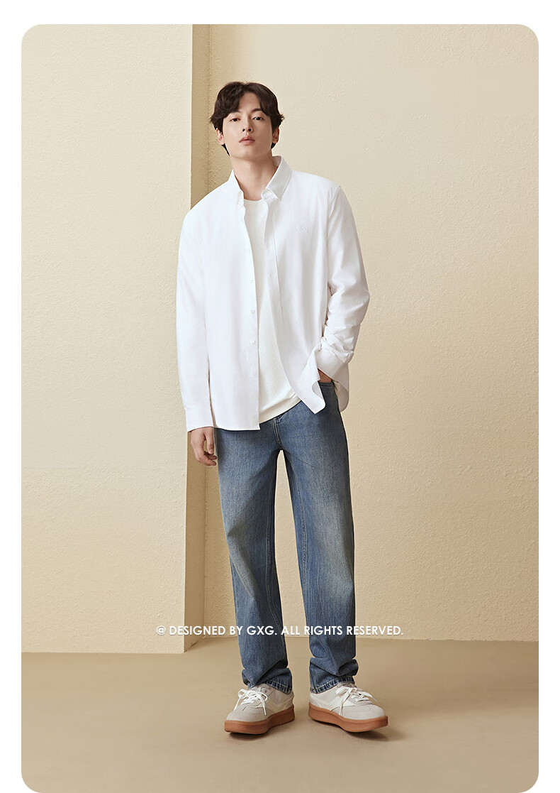 GXG men's Oxford textured shirt commuter business shirt skin-friendly white 170/M