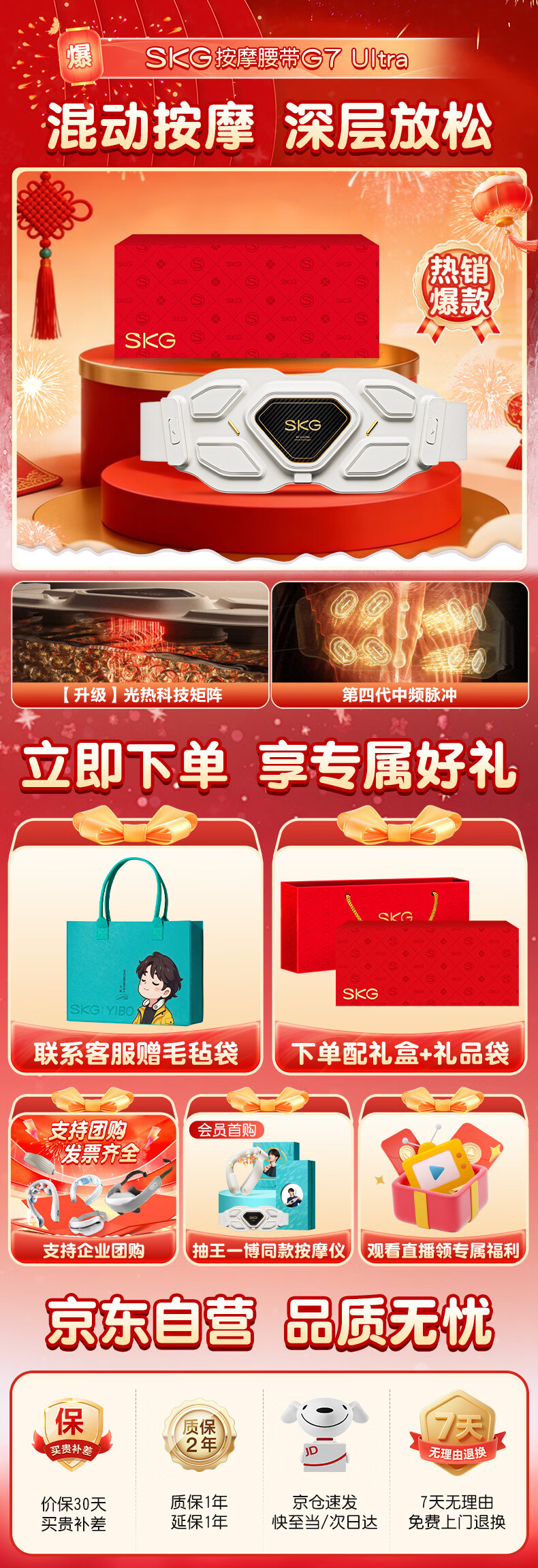 Skg massager waist massager G7 Ultra, the same model as Wang Yibo's, warm palace waist protection hot compress, pulse vibration titanium belt, birthday and Christmas gifts for male and female friends