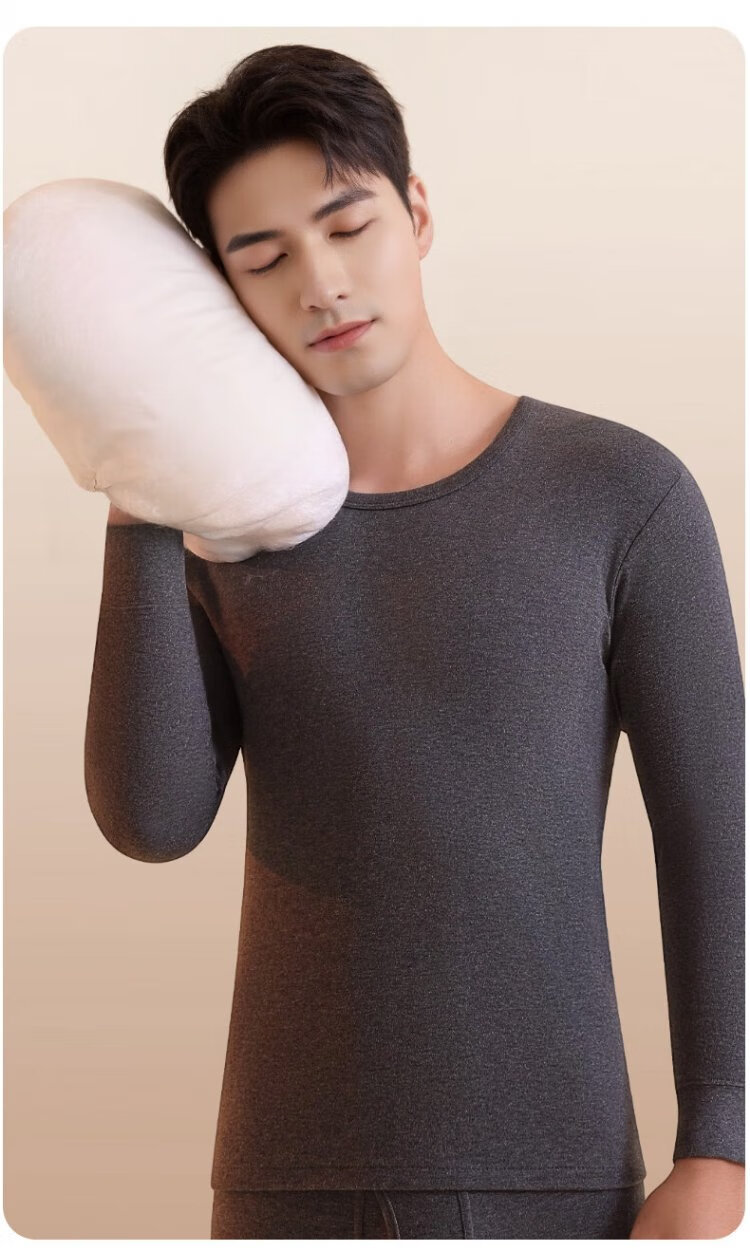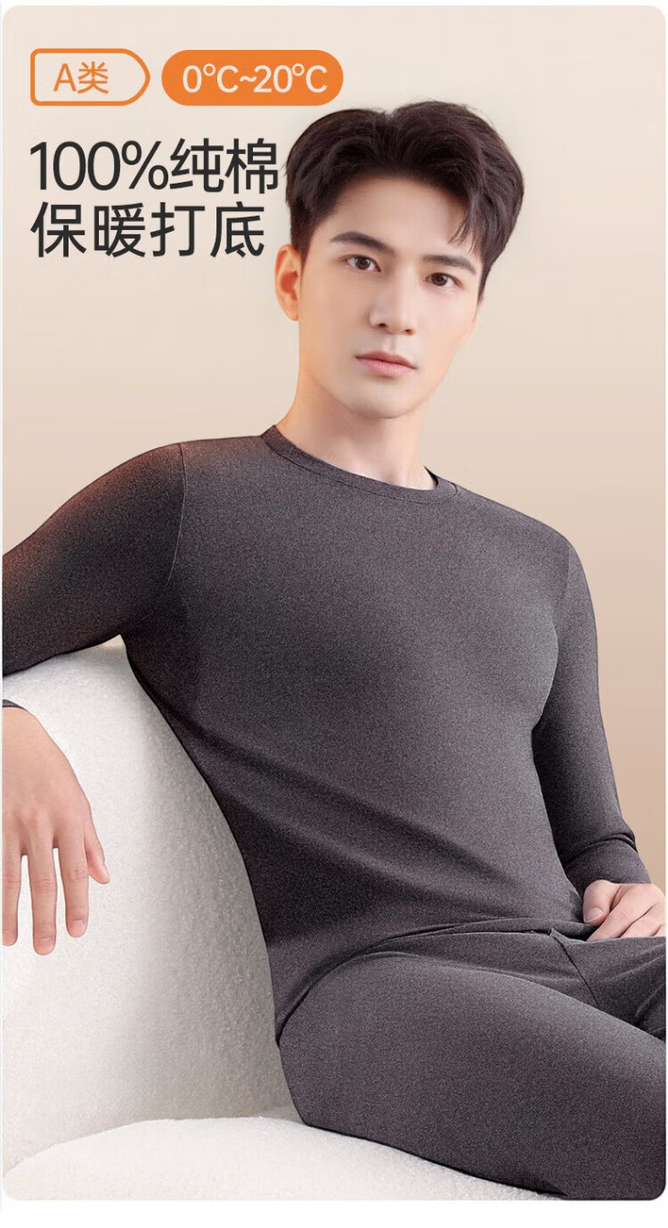 Arctic Velvet Autumn Clothes and Autumn Pants Men's Suit 100% Cotton Thermal Underwear Thin Round Neck Cotton Sweater Autumn and Winter Basement