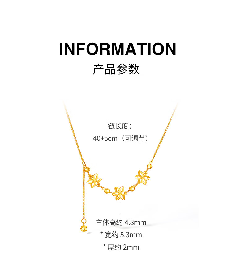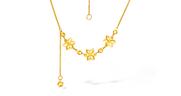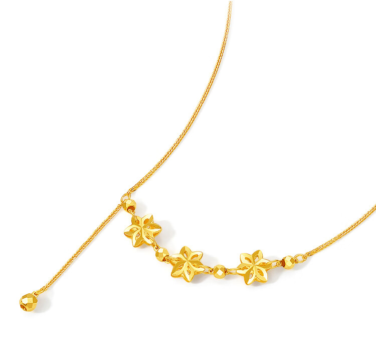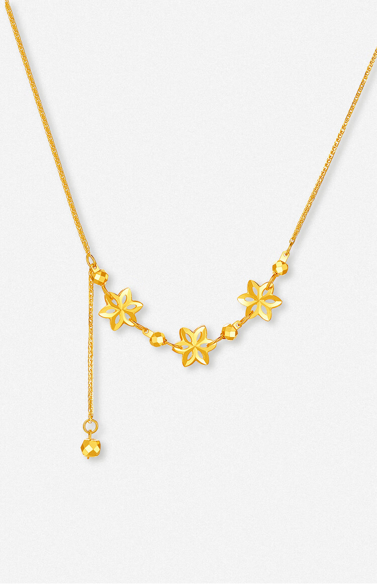 Saturday Blessing Yellow 18K Gold Necklace Star Flower Tassel Necklace Birthday Gift C0621043 40+5cm