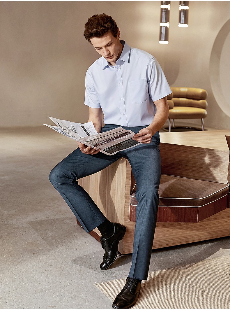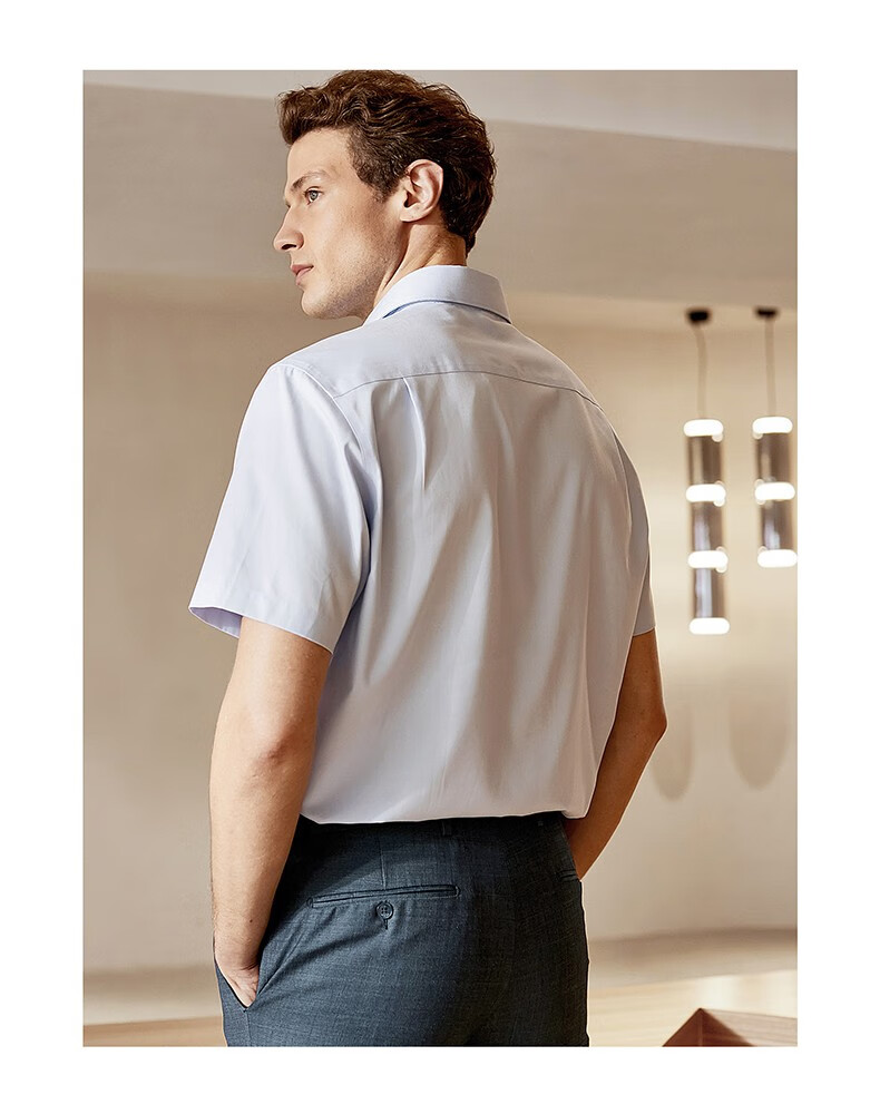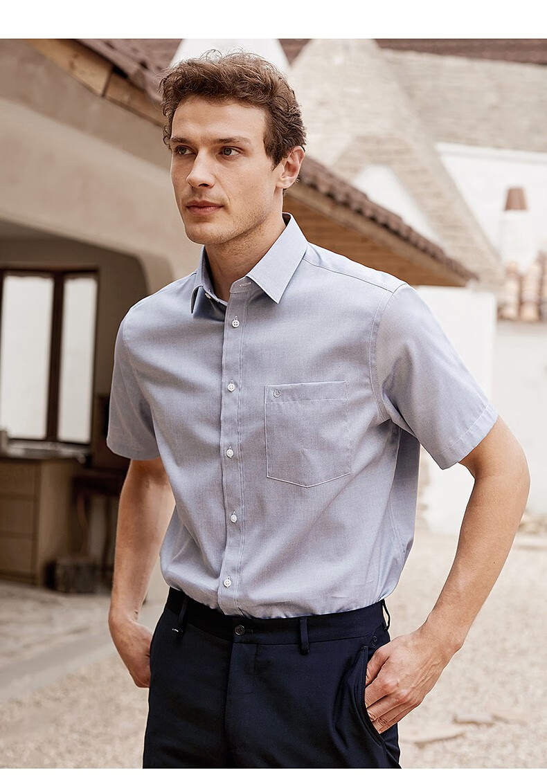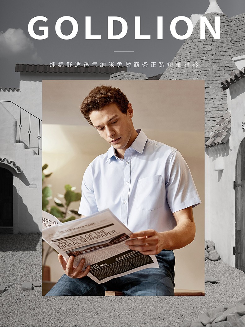 Camisa de manga corta Goldlion de verano para hombre de algodón puro, cómoda, transpirable, nano, sin hierro, camisa formal de manga corta para negocios, azul claro-15 ESSEE993001 3XL